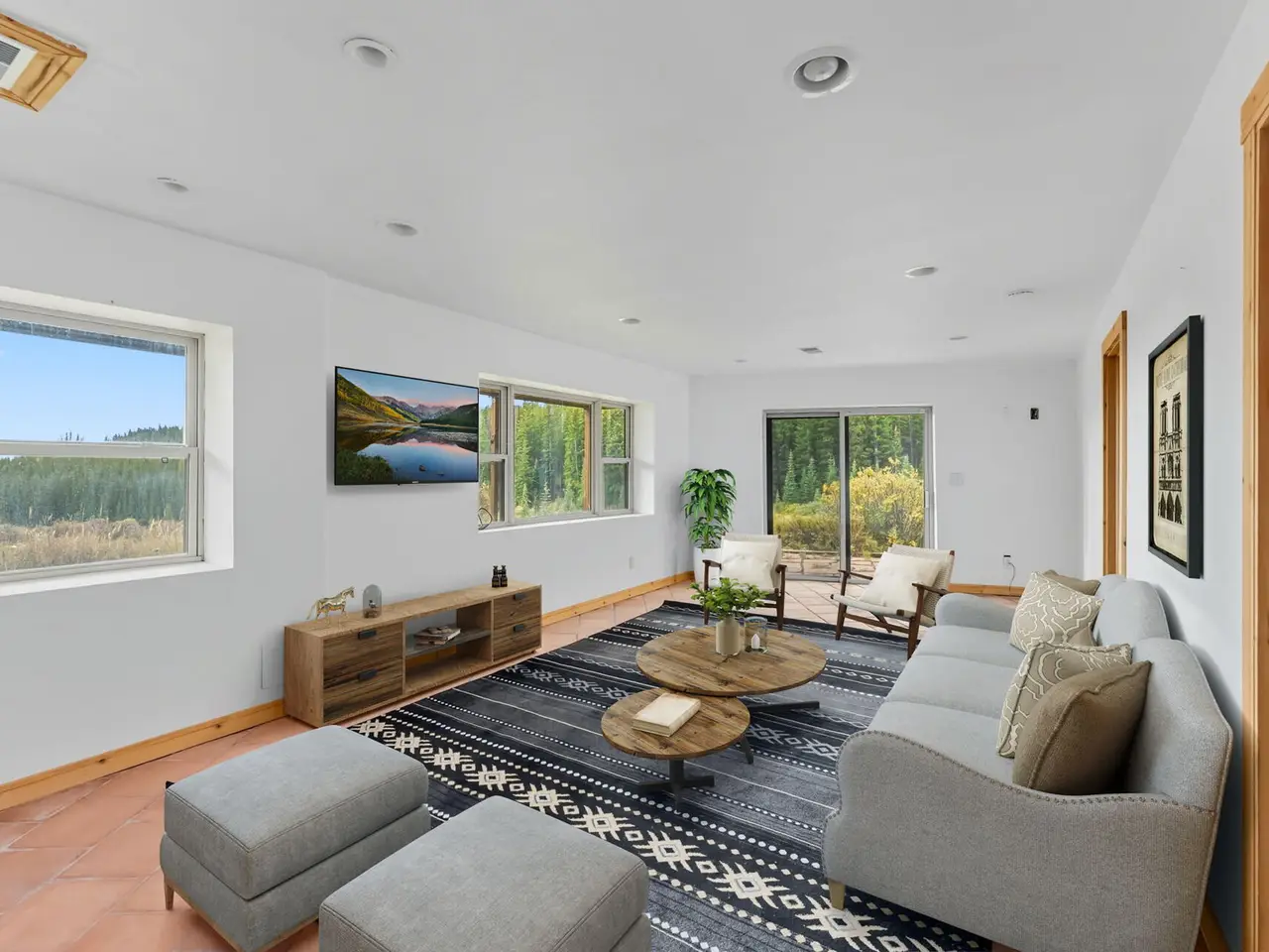 MILLION DOLLAR VIEWS! Perched high above the South Park Basin in the sought-after Valley of the Sun, and just forty minutes from Breckenridge, this mountain retreat offers sweeping panoramas from Pikes Peak to Pennsylvania Mountain. Set on more than 7 acres of pristine privacy, the property is a perfect blend of meadow, forest, and your very own creek-creating a true Colorado sanctuary. Inside, the home is cozy and inviting, anchored by a wood-burning stove. Floor to ceiling windows make a snowy day spectacular. With 4 bedrooms and 3 bathrooms-including two on the main level and two in the finished walk-out basement-there's space for everyone. Two spacious living areas open to outdoor spaces, perfect for entertaining or simply soaking in the peaceful setting. Step outside to a giant wraparound deck and watch for moose, elk or deer in the valley. The property offers endless opportunities to relax, spread out, and soak in the scenery. With no HOA, furnished option, and unbeatable views, this is the mountain getaway you've been dreaming of. Whether for weekend escapes or year-round living, privacy, peace, and spectacular scenery await.
