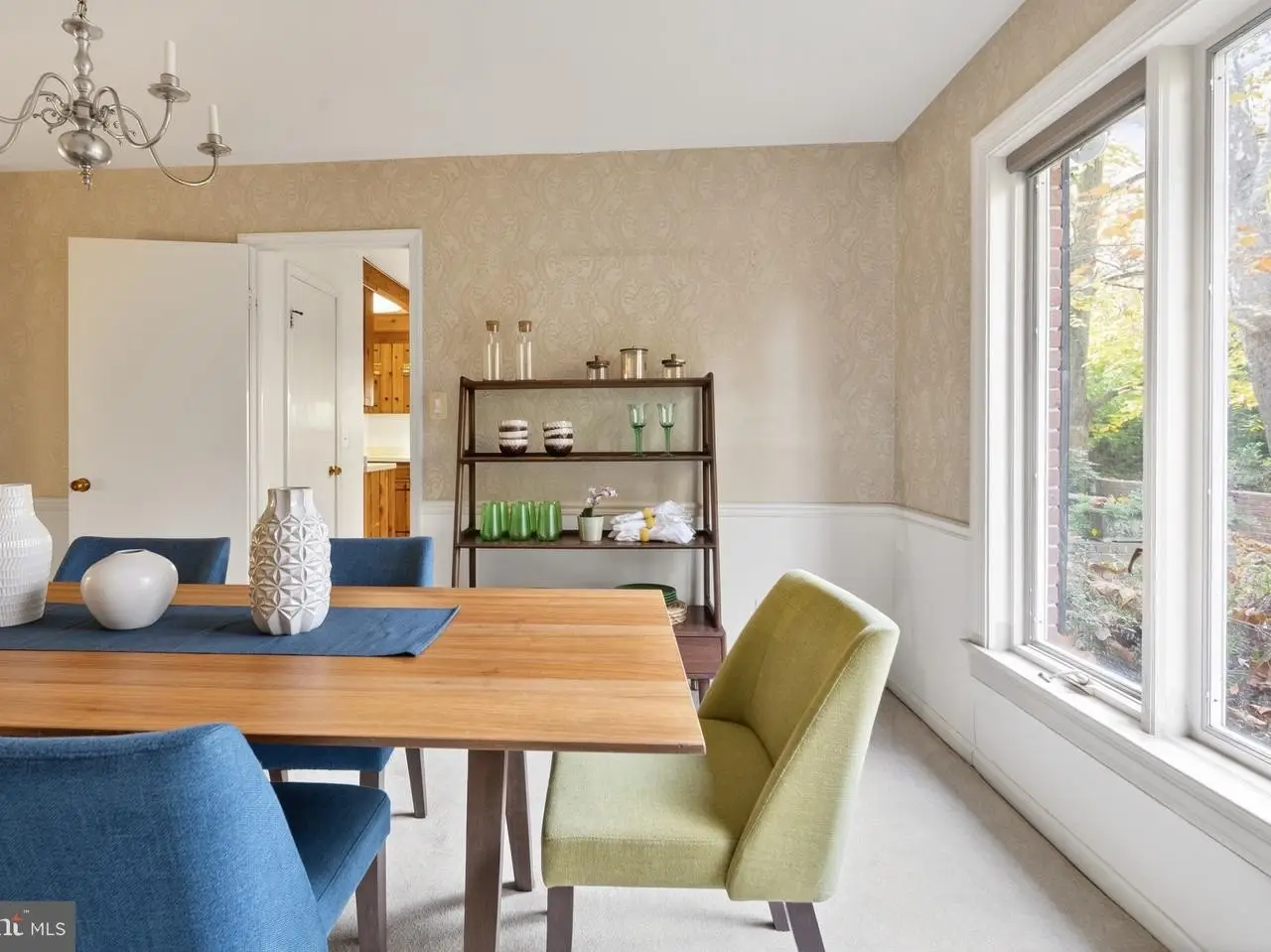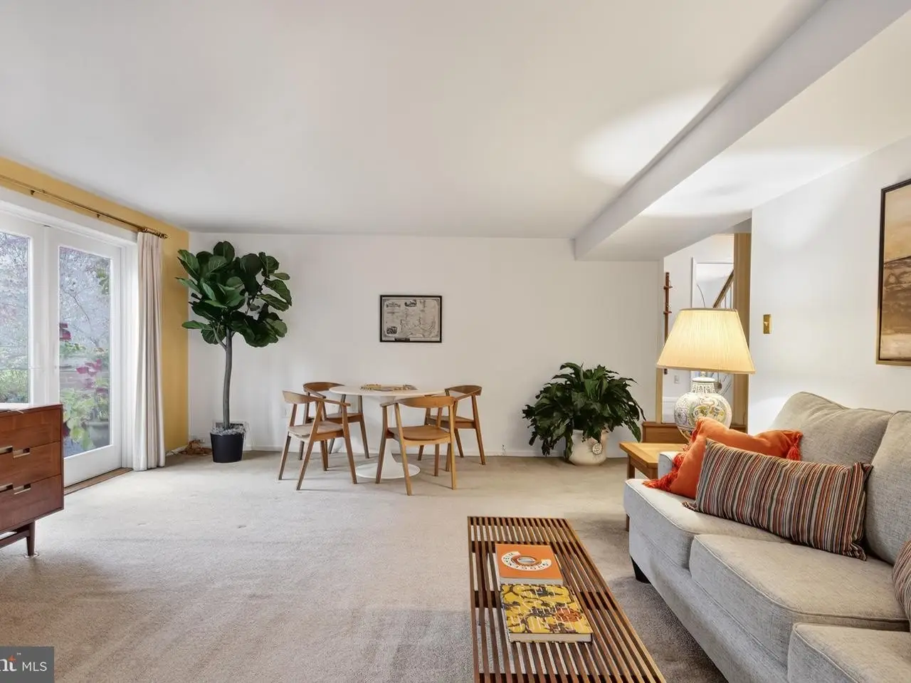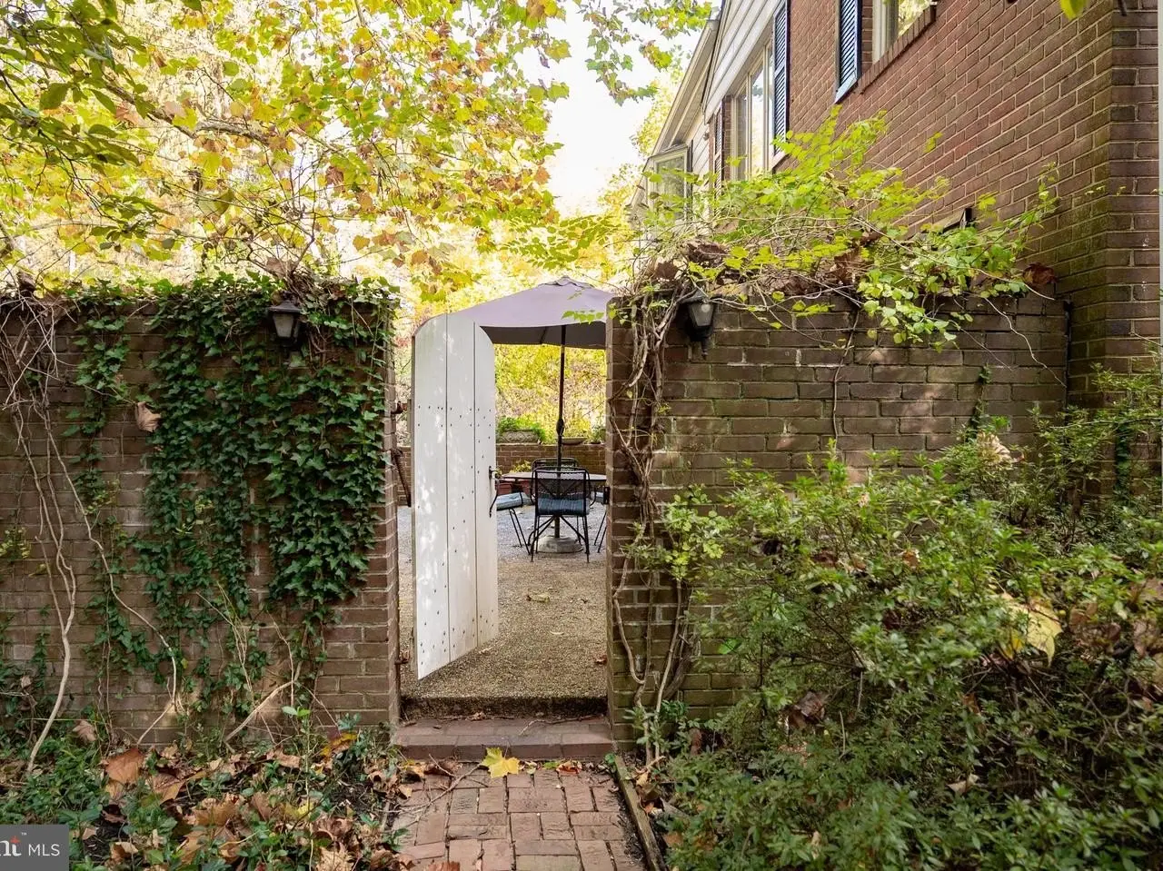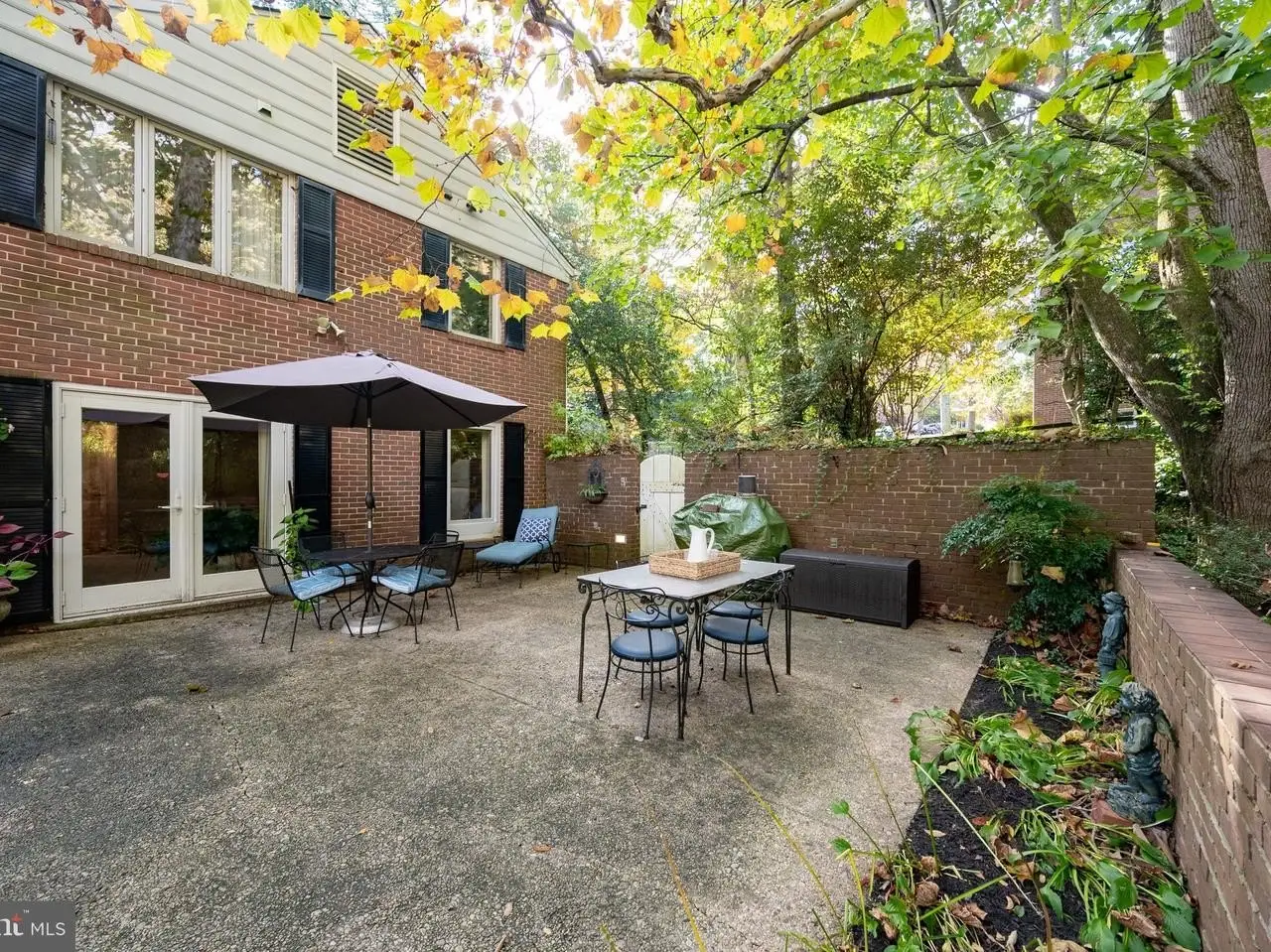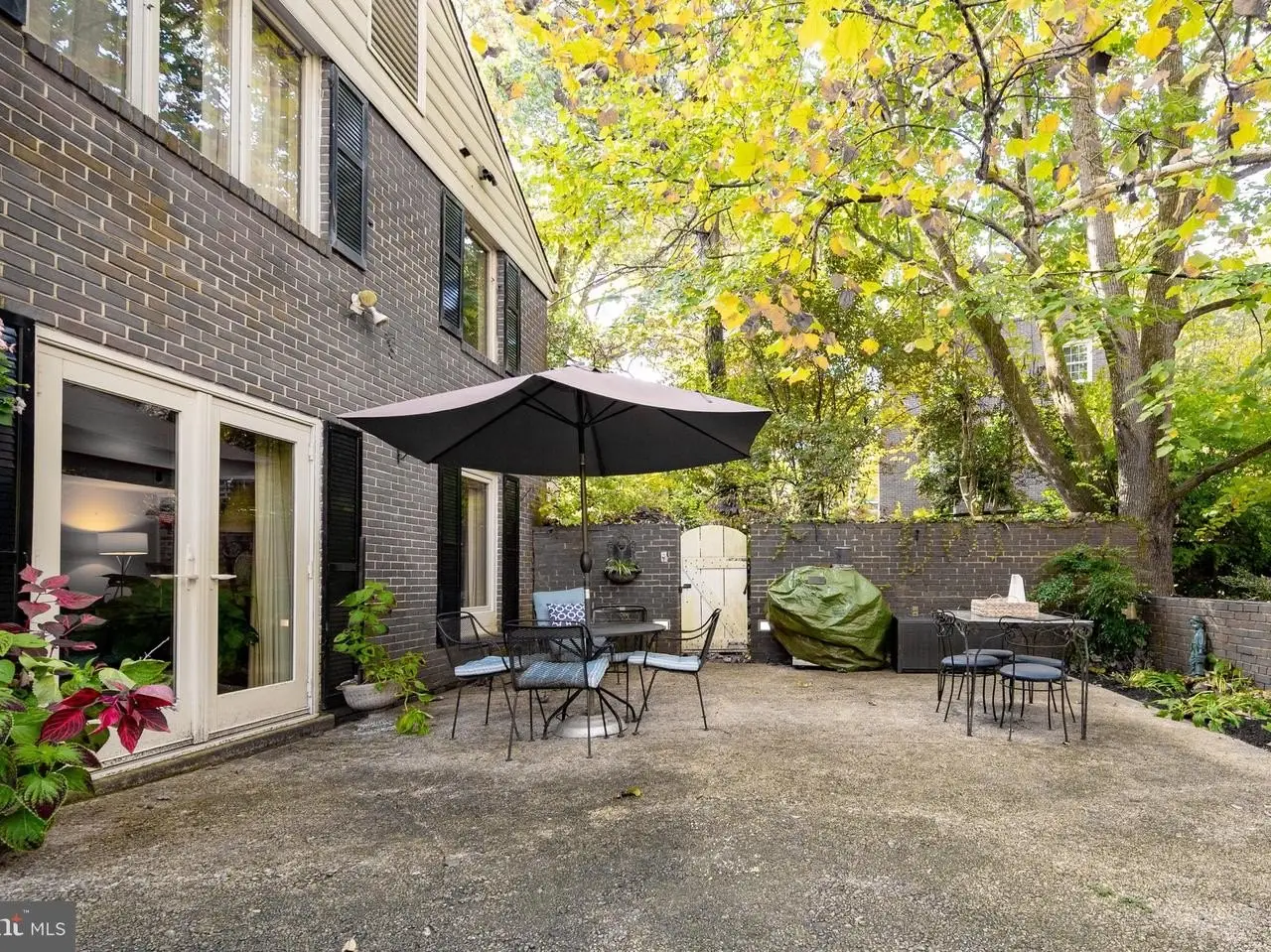 • French doors opening to charming brick-walled patio