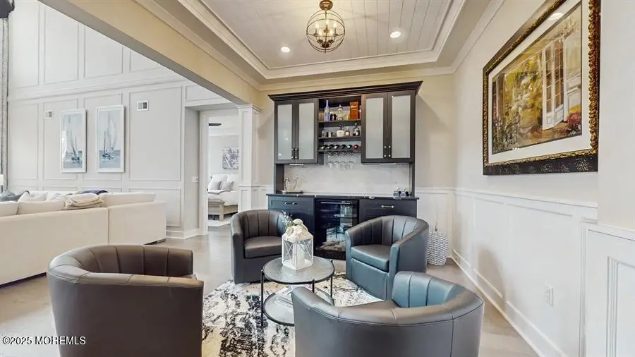 Absolutely stunning. Not one detail missed in this Bloomingdale Modern Farmhouse model at Regency at Allaire. Toll Brothers 55+ active adult community close to the Jersey Shore and all of the activities Monmouth County has to offer. This home features 4 Bedrooms and 3 full Baths. A huge eat in kitchen with enormous center island, custom cabinets extend to the 10 foot ceilings, SS appliances, Quartz counters and sliders to the outdoor kitchen and covered patio. The great room is enhanced with custom moldings, gas fireplace, coffered ceiling and is open to the kitchen and dining area. Gorgeous custom built-ins and detail moldings throughout this home. The outdoor oasis is spectacular. Oversized custom outdoor kitchen plus sitting area with fireplace. The covered patio comes equipped with retractable screens on all 3 sides. Professionally landscaped front and back. This home truly shows like a Model Home. Not to be missed. Professional photos to follow