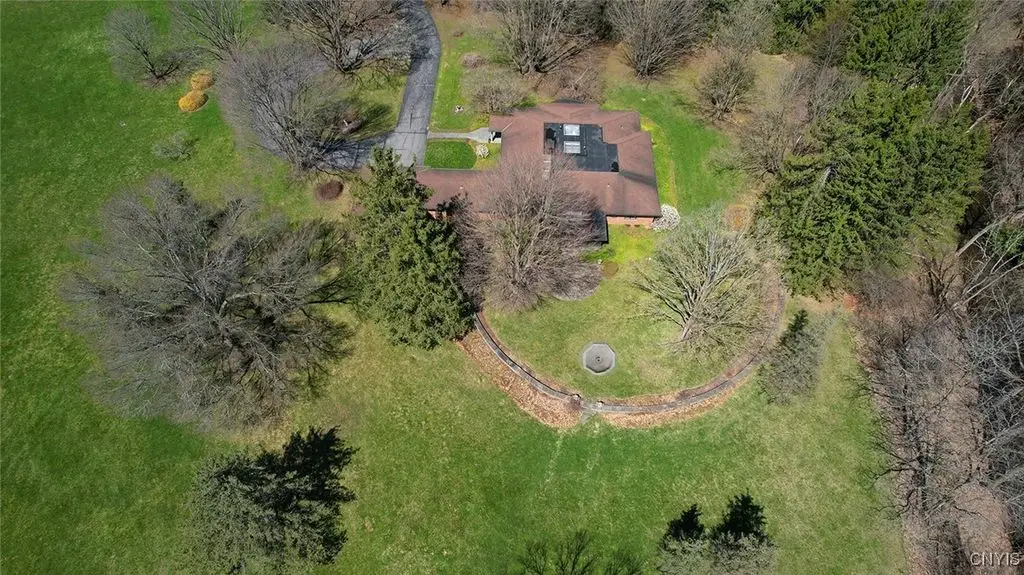 Privately set back from the road on over 7 acres of beautifully landscaped grounds, this stately brick ranch offers space, seclusion and timeless style. A tree-lined approach leads to a pillared front entry and portico, where double doors open to a grand marble foyer with stained glass sidelights and a striking inlaid medallion. Designed for gracious living and entertaining, the open floor plan blends European style with refined details - tray ceilings, bespoke millwork, crown molding and rich marble flooring throughout. Columns frame the sunken formal living room - ideal for relaxing or entertaining guests. While adjacent, the elegant chandelier-lit formal dining room is perfect for gatherings. The well-appointed kitchen boasts granite counters, abundant cabinetry, pantry, breakfast bar and a sun-filled morning room for casual dining. A pass-through wet bar connects the kitchen to the inviting family room, where wood beam ceilings, built-in shelving and a floor-to-ceiling brick fireplace create warmth and charm. Relax in the sun-drenched all-season sunroom with walls of windows and a skylight offering peaceful backyard views. At the heart of the home, a luminous atrium provides a tranquil retreat, featuring a marble fountain and a decorative skylight filtering natural light through a geometric grid, while sliding glass doors connect seamlessly to the surrounding rooms. The spacious primary suite serves as a serene sanctuary, complete with chandelier lighting, multiple closets, dressing area and a spa-like ensuite with floor-to-ceiling tile, a sunken tub and walk-in shower. Three additional bedrooms, two full baths, two powder rooms and a convenient laundry area complete the main level. The lower level adds 2,031 sq ft of versatile living space, including a recreation room, wet bar, family room with fireplace, kitchen area with island and a half bath - ideal for entertaining or extended stays. Outdoors, enjoy the serenity of the expansive, flat yard from the patio - perfect for outdoor gatherings and recreation. A two-car garage provides added convenience, all within minutes of village amenities, major highways and schools. Award-winning FM Schools!