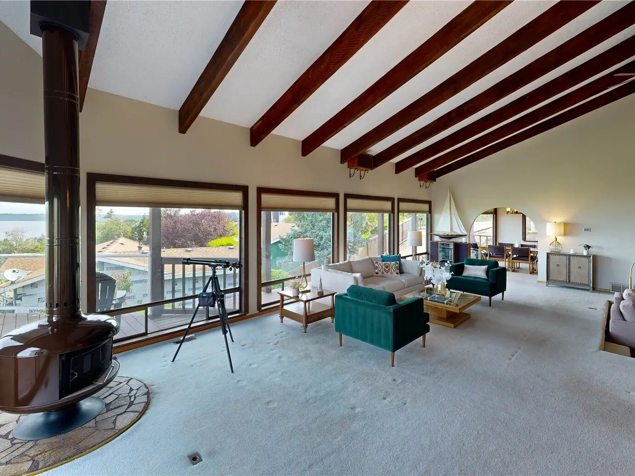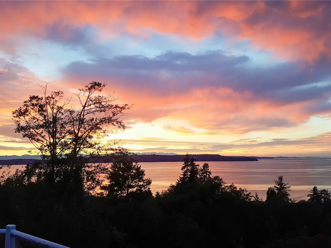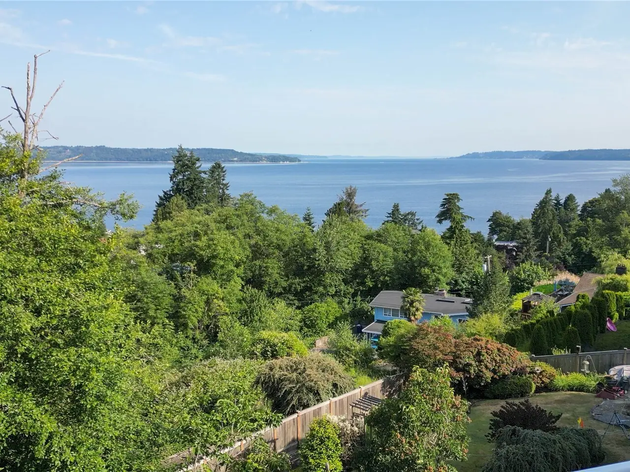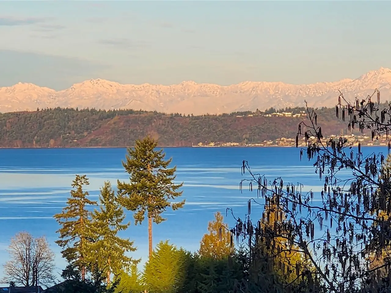 Rare find--offering panoramic Puget Sound views from nearly every room. Kitchen features solid oak upper cabinets, granite tile counters, tile floors, eating nook & a built-in pantry. Formal dining & an expansive family room w/fireplace & freestanding wood stove create a space ideal for entertaining. Primary suite boasts 3 closets & a en-suite bath w/heated floors, dual vanities, & a soaking tub. Second bedroom suite offers its own private entrance, a large open balcony, & direct access to a full bath w/heated floors & tiled tub/shower. Step onto the elegant deck to relax, dine, or simply soak in the view. Outdoor storage, deep 2-car garage, & a terraced yard complete this thoughtfully designed home--offering a lifestyle few others can match.