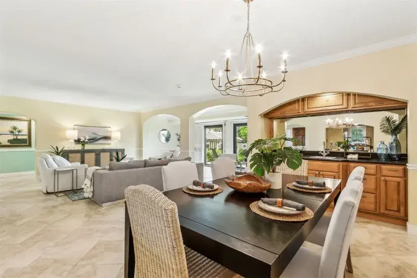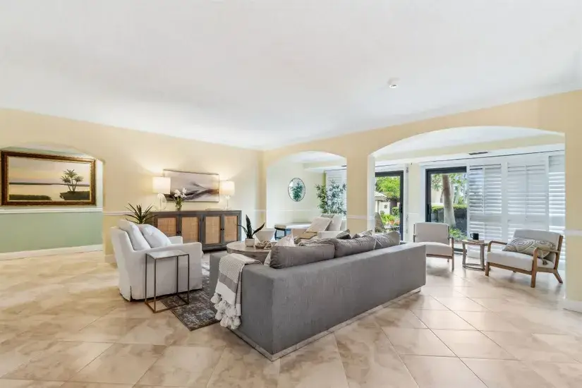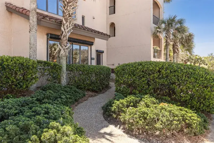 Rare opportunity in Windsong Villas, a premier oceanfront community located on the southeastern side of Amelia Island Plantation. This spacious 2-bedroom, 2.5-bath, 1960 sq. ft. ground-floor villa is ideally situated near the heated community pool and only steps to pristine beach and sparkling Atlantic Ocean. This beautiful end unit with ample windows and abundant natural light, features a peek-a-boo ocean view from the expansive patio. The interior blends Mediterranean Charm and Coastal Elegance with graceful archways ways, crown molding, and an open-concept layout. The custom kitchen with stainless appliances and tiled backsplash flows into the open dining area with a large wet bar, making it ideal for entertaining. The large inviting living area extends seamlessly to the patio, creating a serene indoor-outdoor retreat. The large primary suite with direct patio access has a bonus sitting area that can be used as an office or reconfigured for a third bedroom. The one-car open garage with a private storage closet for your convenience. Weekly rentals allowed. Schedule your showing today!