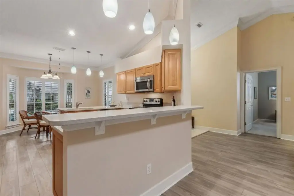 POPULAR & UNIQUE OCEAN VILLAGE....GATED Amelia Island OCEANSIDE COMMUNITY - EVERY HOME IS WALKABLE TO THE OCEAN....Single story home WITH LONG LIST OF OWNER UPDATES....AMELIA ISLAND'S MOST SUBSTANTIAL HOA AMENITIES: 2 swimming pools - one oceanfront - one heated, 3 CONVENIENT EASY ACCESS BEACH WALKWAYS, Tennis & pickleball courts, ENHANCED YARD CARE including irrigation...HOME IMPROVEMENTS INCLUDE: New ROOF and solar skylighting (2018), wood grain luxury vinyl plank flooring, carpeting, PAVERS for driveway, walkway & wraparound patio, sliding doors, Florida Room windows, exterior painting...KITCHEN REMODELING included: CABINETRY, Silestone countertops, stainless appliances, lighting, plantation shutters in breakfast nook...OWNERS BATHROOM REMODEL(2022) included: LARGE DUAL ENTRANCE WALK-IN SHOWER with bench seating, dual vanities with granite counters, cabinets, tile flooring....22x11 VERSATILE ENCLOSED FLORIDA ROOM with WOODED BACKYARD VIEW....South Amelia Island location near Ritz Carlton, bike/walk pathways, golf, restaurants and Harris Teeter grocery/pharmacy/gas.