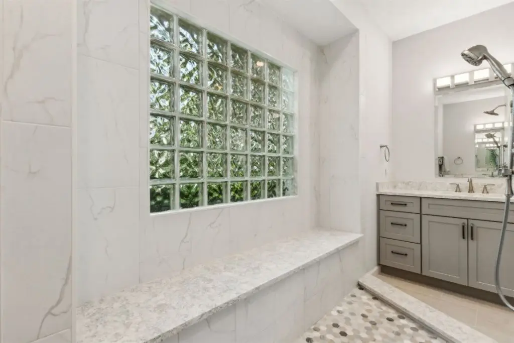 Dual entrance walk-in shower Pavers for driveway, walkway & wraparound patio