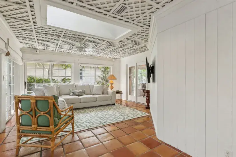 SPACE, STYLE & FAIRWAY VIEWS-THIS AMELIA ISLAND GEM HAS IT ALL! Just steps from the Ritz-Carlton and under a mile from the ocean, this fully remodeled 3BR/3.5BA home in Golfside South offers flexible living with 2 bonus rooms perfect for offices or guests. Enjoy soaring ceilings, skylights, and a stunning custom kitchen with quartz counters and island seating. The 4,000+ sq. ft. layout includes a split-bedroom plan, sunroom, and a screened lanai overlooking The Golf Club of Amelia Island. Lush landscaping, a private courtyard off the primary suite, and ample parking enhance outdoor living. Optional membership to the nearby Ritz-Carlton Spa & Amelia Island Club offers tennis, fitness, dining & more. Over $300K in updates-new roof (2017), plumbing, electrical, luxury flooring, and finishes. Fully furnished and move-in ready, this home is ideal as a full-time residence or second home. Don't miss this opportunity to live the best of island life!