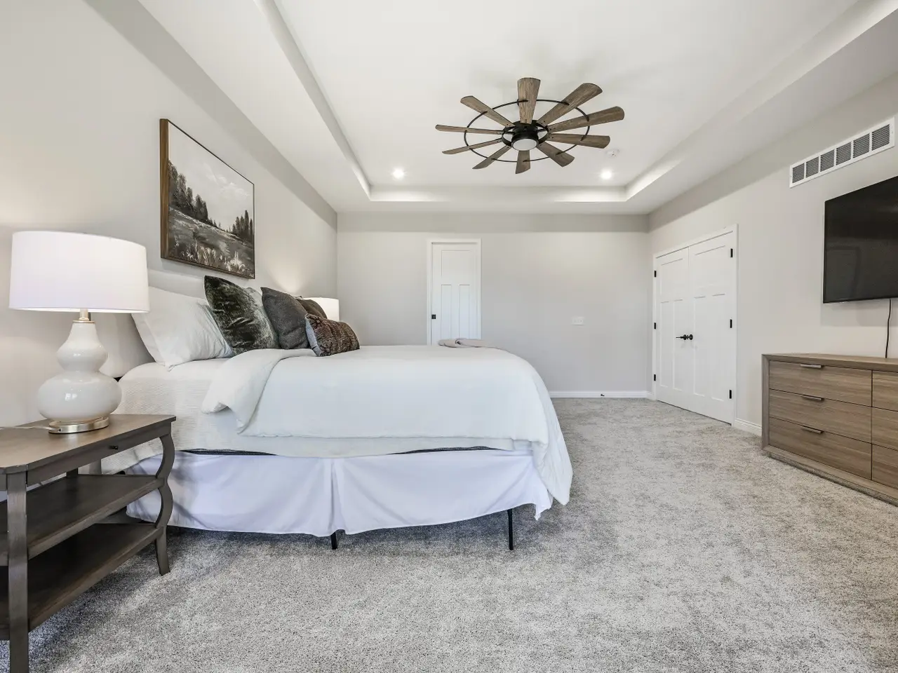 The next chapter in your life starts in this light-filled haven! This stunning 5-bedroom, 4.5-bathroom residence could be the one you have been waiting for as it has so much to offer! The gourmet chef's kitchen is a showstopper, w/ a high-end kitchen hood, sleek backsplash, & a spacious center island. The home features multiple levels for entertaining, including a grand two-story great room, a large rec room, and a basement w/ a full bathroom & bedroom. Host memorable parties in the open-plan living area! Do you work from home? If so, this home has you covered as its got a fantastic office space at the front of the home. The luxurious primary bedroom is a true retreat, offering a cozy sitting area, two closets, and an amazing en-suite bathroom. The three additional bedrooms upstairs offer plenty of space to unwind after a busy day. The fenced-in backyard features beautiful stamped concrete, creating the perfect outdoor oasis. See yourself enjoying morning coffee on the back patio! This home is better than new, with added perks like custom blinds, a water softener, and a fenced-in backyard! Don't miss out; schedule your showing today.