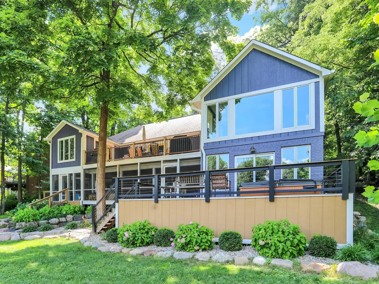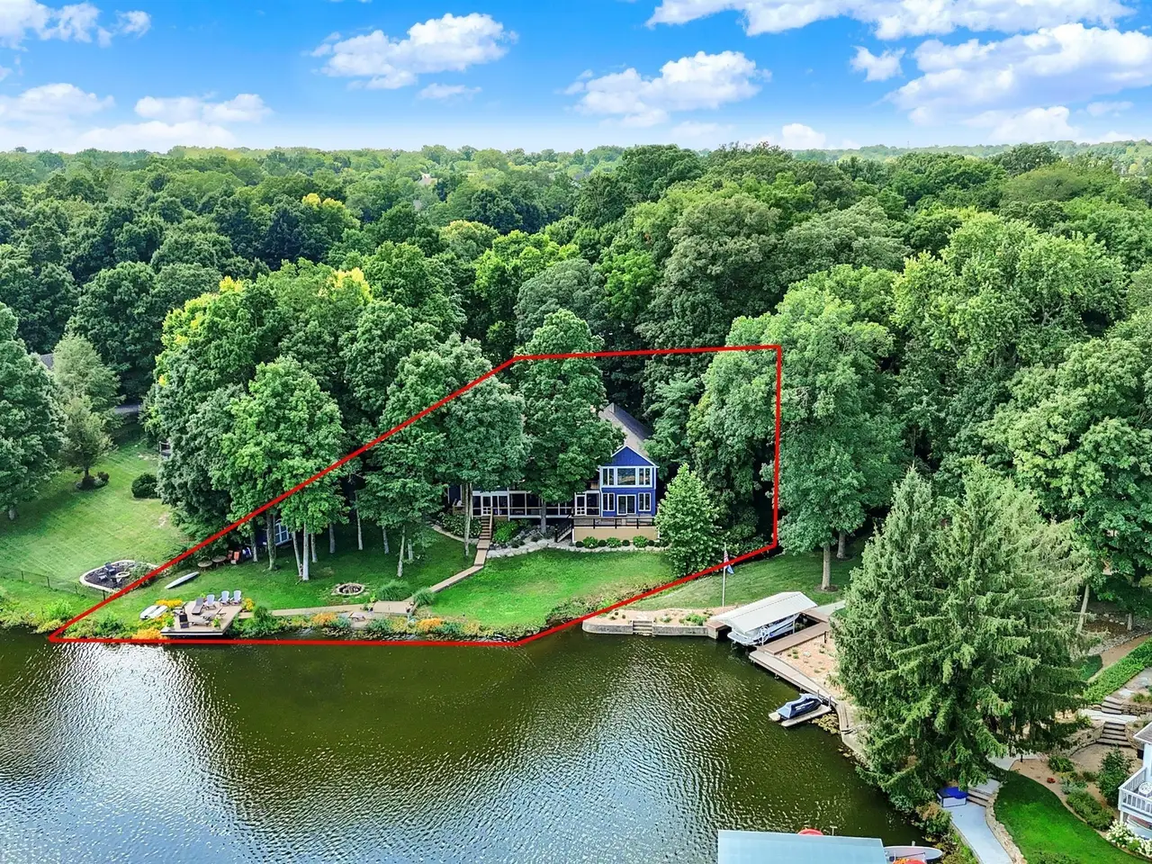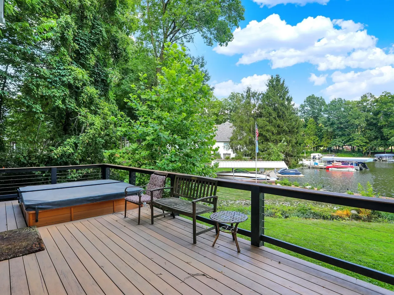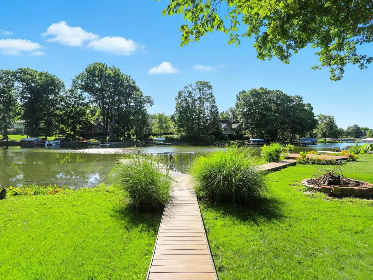 Masthead Waterfront Paradise - Where Every Day Feels Like a Getaway. Wake up to the shimmer of the reservoir right outside your window, coffee in hand, as the gentle call of waterfowl drifts through the morning air. Hard to find 139' of shoreline! This 4-bedroom, 3-bath treasure in the sought-after Masthead community turns that vision into your daily reality, with a main-floor primary suite, private home office, and an airy, light-filled floorplan that frames the water from the moment you step inside. The kitchen flows seamlessly into the breakfast room and living spaces, where walls of windows turn nature into your ever-changing backdrop. Step outside and the lifestyle expands-a Trex upper deck perfect for soaking in the morning sun, a shaded lower deck for lazy afternoons, and a screened-in porch spacious enough to gather friends and family for cozy, rainy-day conversations. From the walk-out basement, follow the path to your backyard retreat, where a bubbling hot tub invites starlit soaks and a large deck at the water's edge sets the stage for dockside dinners, laughter-filled evenings, and sunset watching that never gets old. Life in this quiet cove offers the best of all four seasons-summer boating, sunrise paddleboarding, and kayaking right from your backyard; crisp autumn mornings with golden reflections on the water; and in winter, a sparkling wonderland perfect for skating. Whether you're entertaining a crowd or savoring peaceful moments alone, every day feels like a vacation here. Recent updates ensure comfort and peace of mind, including refinished wood floors (2024), a new shed and exterior paint (2019), HVAC system (2021), tankless water heater (2020), hot tub addition, sprinkler system (2022), engineered hardwood flooring in the lower level (2020), and more. An encapsulated crawl space with dehumidifier, epoxied garage floors, and lush landscaping complete this exceptional lakefront offering.
