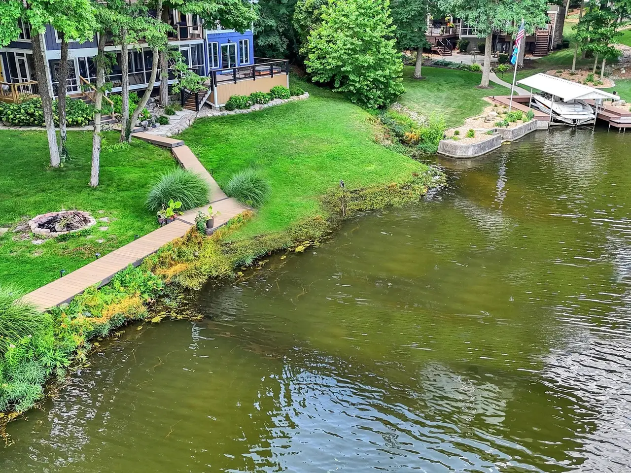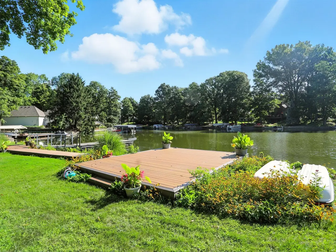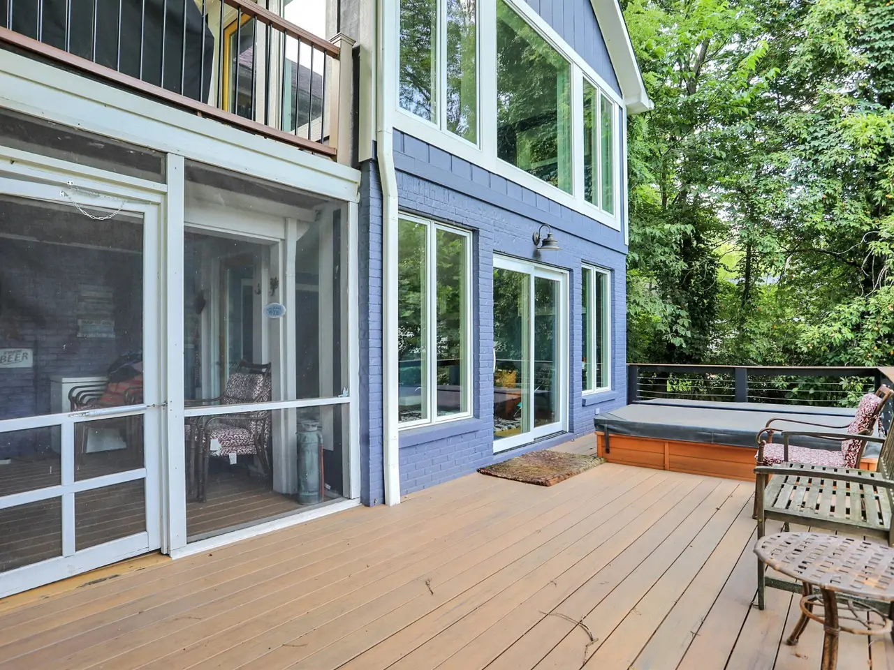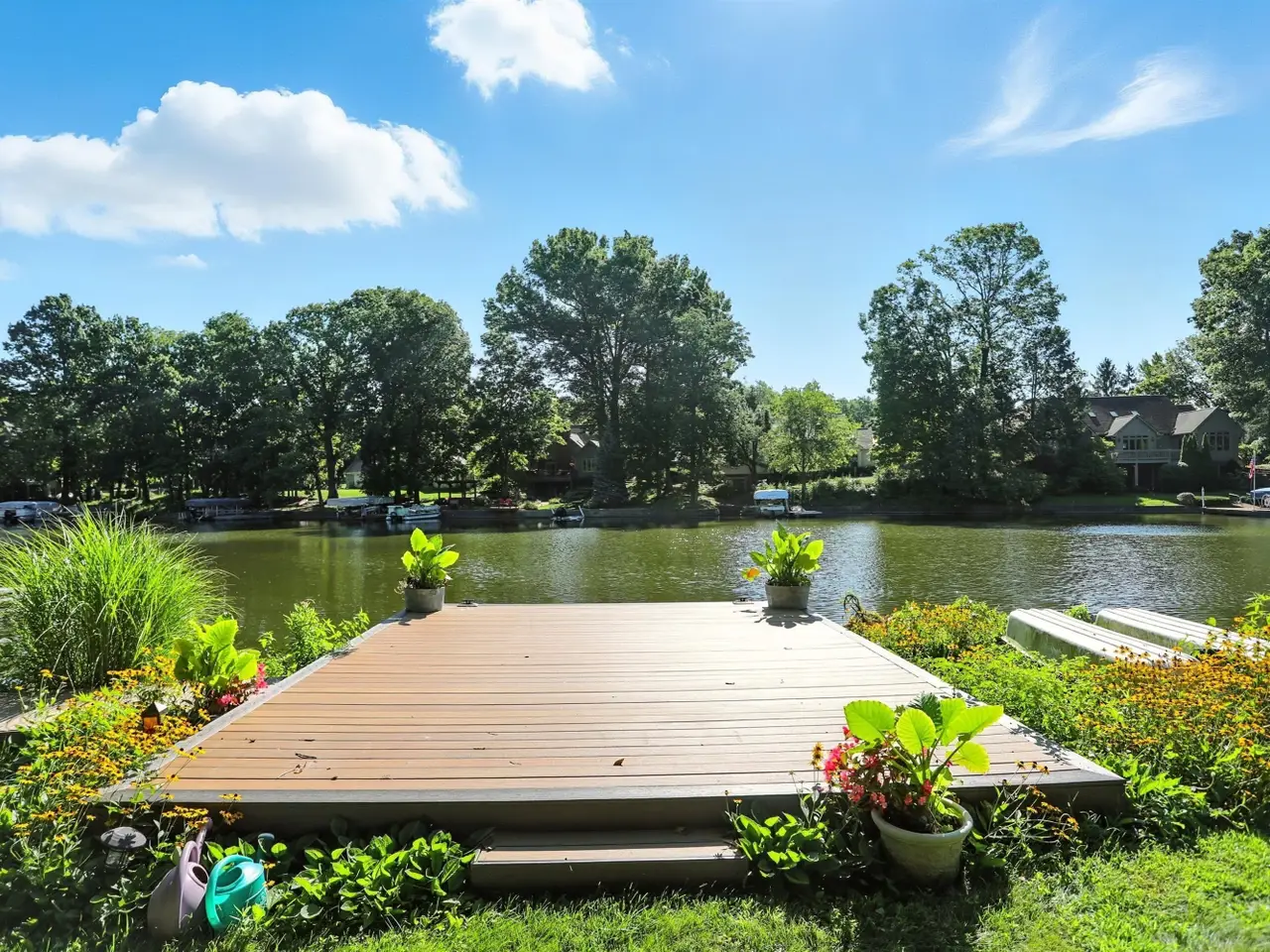 Masthead Waterfront Paradise - Where Every Day Feels Like a Getaway. Wake up to the shimmer of the reservoir right outside your window, coffee in hand, as the gentle call of waterfowl drifts through the morning air. Hard to find 139' of shoreline! This 4-bedroom, 3-bath treasure in the sought-after Masthead community turns that vision into your daily reality, with a main-floor primary suite, private home office, and an airy, light-filled floorplan that frames the water from the moment you step inside. The kitchen flows seamlessly into the breakfast room and living spaces, where walls of windows turn nature into your ever-changing backdrop. Step outside and the lifestyle expands-a Trex upper deck perfect for soaking in the morning sun, a shaded lower deck for lazy afternoons, and a screened-in porch spacious enough to gather friends and family for cozy, rainy-day conversations. From the walk-out basement, follow the path to your backyard retreat, where a bubbling hot tub invites starlit soaks and a large deck at the water's edge sets the stage for dockside dinners, laughter-filled evenings, and sunset watching that never gets old. Life in this quiet cove offers the best of all four seasons-summer boating, sunrise paddleboarding, and kayaking right from your backyard; crisp autumn mornings with golden reflections on the water; and in winter, a sparkling wonderland perfect for skating. Whether you're entertaining a crowd or savoring peaceful moments alone, every day feels like a vacation here. Recent updates ensure comfort and peace of mind, including refinished wood floors (2024), a new shed and exterior paint (2019), HVAC system (2021), tankless water heater (2020), hot tub addition, sprinkler system (2022), engineered hardwood flooring in the lower level (2020), and more. An encapsulated crawl space with dehumidifier, epoxied garage floors, and lush landscaping complete this exceptional lakefront offering.