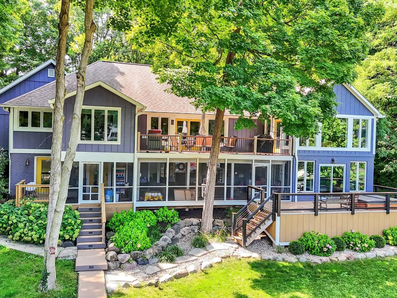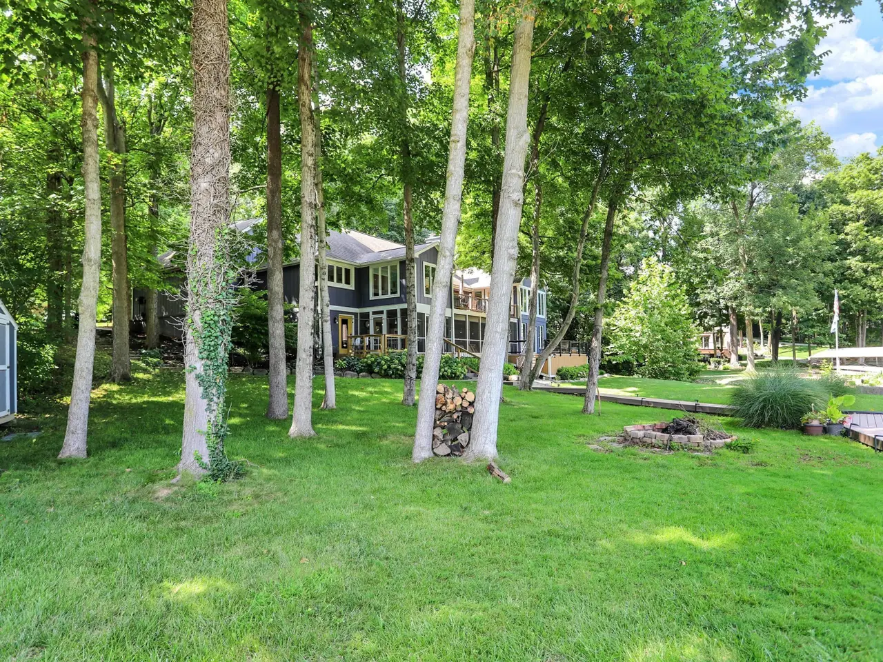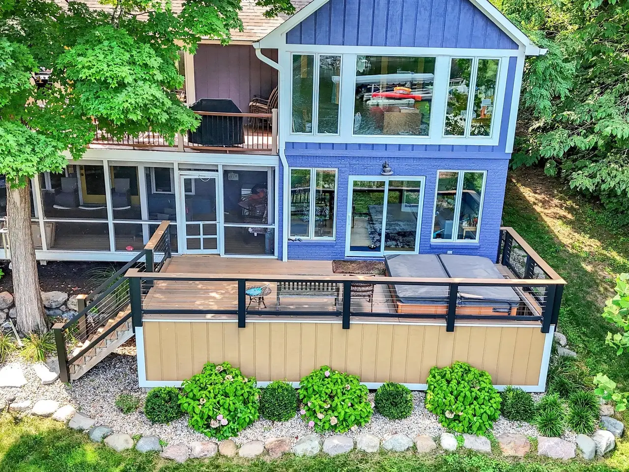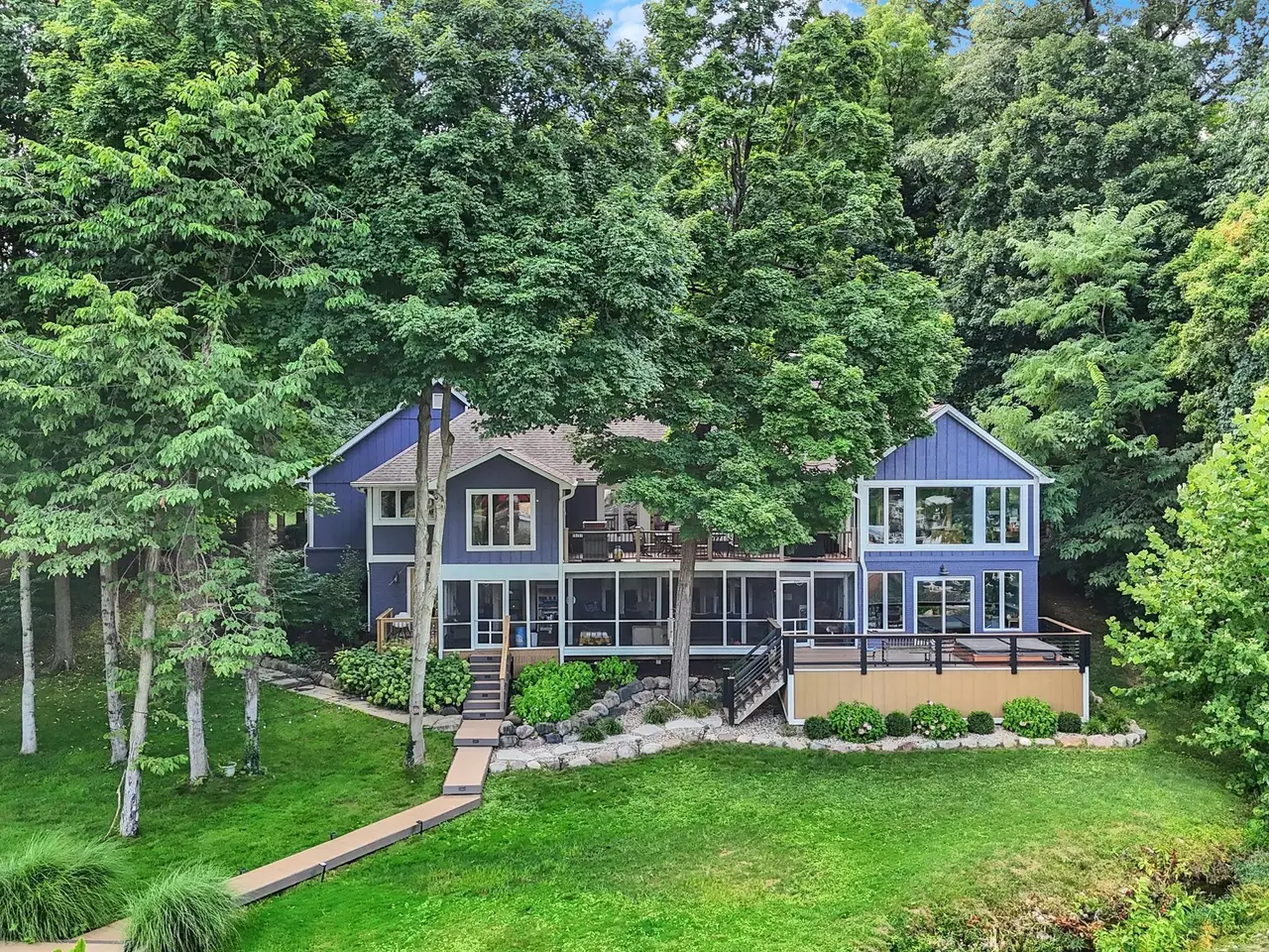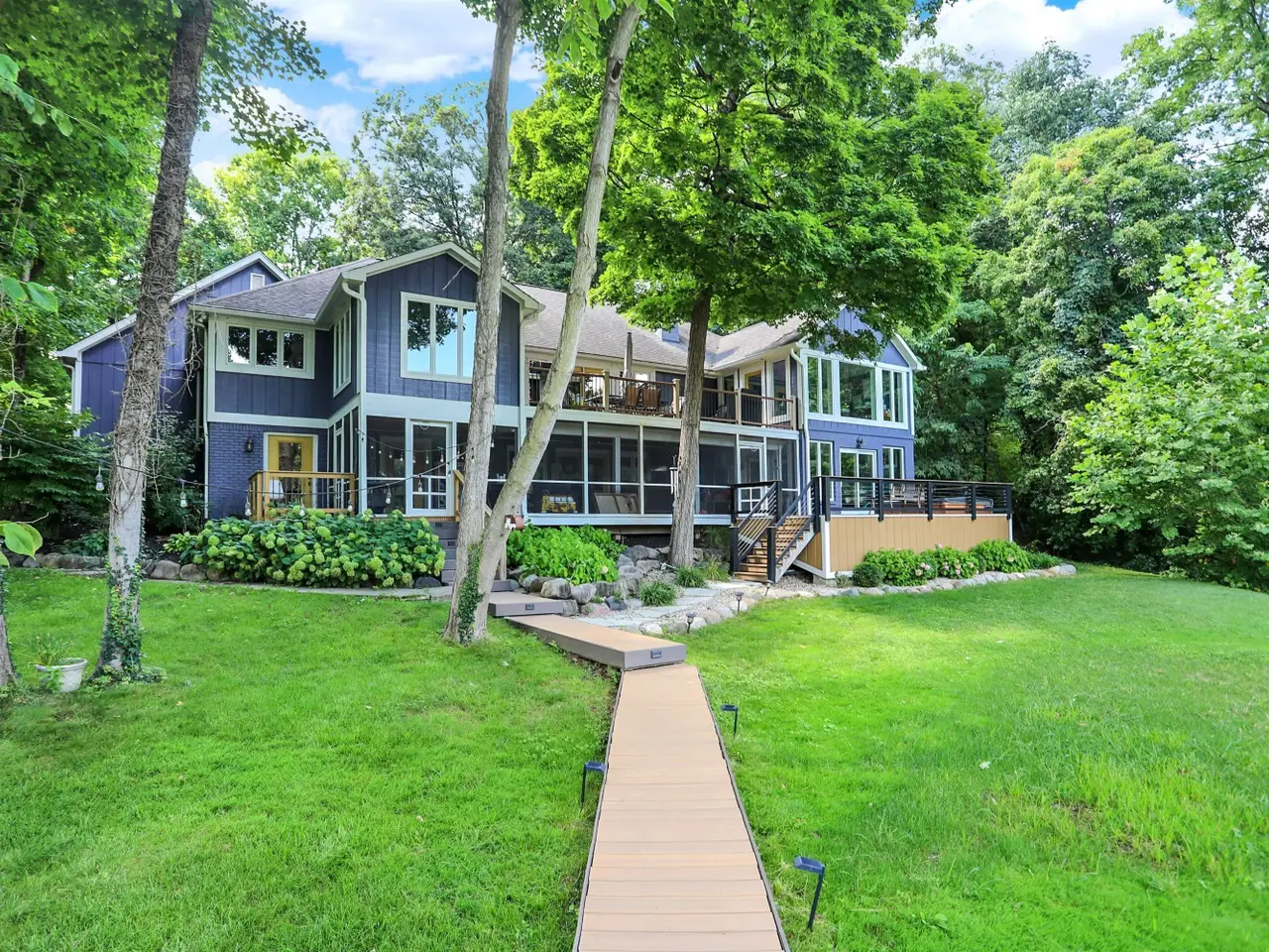 Masthead Waterfront Paradise - Where Every Day Feels Like a Getaway. Wake up to the shimmer of the reservoir right outside your window, coffee in hand, as the gentle call of waterfowl drifts through the morning air. Hard to find 139' of shoreline! This 4-bedroom, 3-bath treasure in the sought-after Masthead community turns that vision into your daily reality, with a main-floor primary suite, private home office, and an airy, light-filled floorplan that frames the water from the moment you step inside. The kitchen flows seamlessly into the breakfast room and living spaces, where walls of windows turn nature into your ever-changing backdrop. Step outside and the lifestyle expands-a Trex upper deck perfect for soaking in the morning sun, a shaded lower deck for lazy afternoons, and a screened-in porch spacious enough to gather friends and family for cozy, rainy-day conversations. From the walk-out basement, follow the path to your backyard retreat, where a bubbling hot tub invites starlit soaks and a large deck at the water's edge sets the stage for dockside dinners, laughter-filled evenings, and sunset watching that never gets old. Life in this quiet cove offers the best of all four seasons-summer boating, sunrise paddleboarding, and kayaking right from your backyard; crisp autumn mornings with golden reflections on the water; and in winter, a sparkling wonderland perfect for skating. Whether you're entertaining a crowd or savoring peaceful moments alone, every day feels like a vacation here. Recent updates ensure comfort and peace of mind, including refinished wood floors (2024), a new shed and exterior paint (2019), HVAC system (2021), tankless water heater (2020), hot tub addition, sprinkler system (2022), engineered hardwood flooring in the lower level (2020), and more. An encapsulated crawl space with dehumidifier, epoxied garage floors, and lush landscaping complete this exceptional lakefront offering.