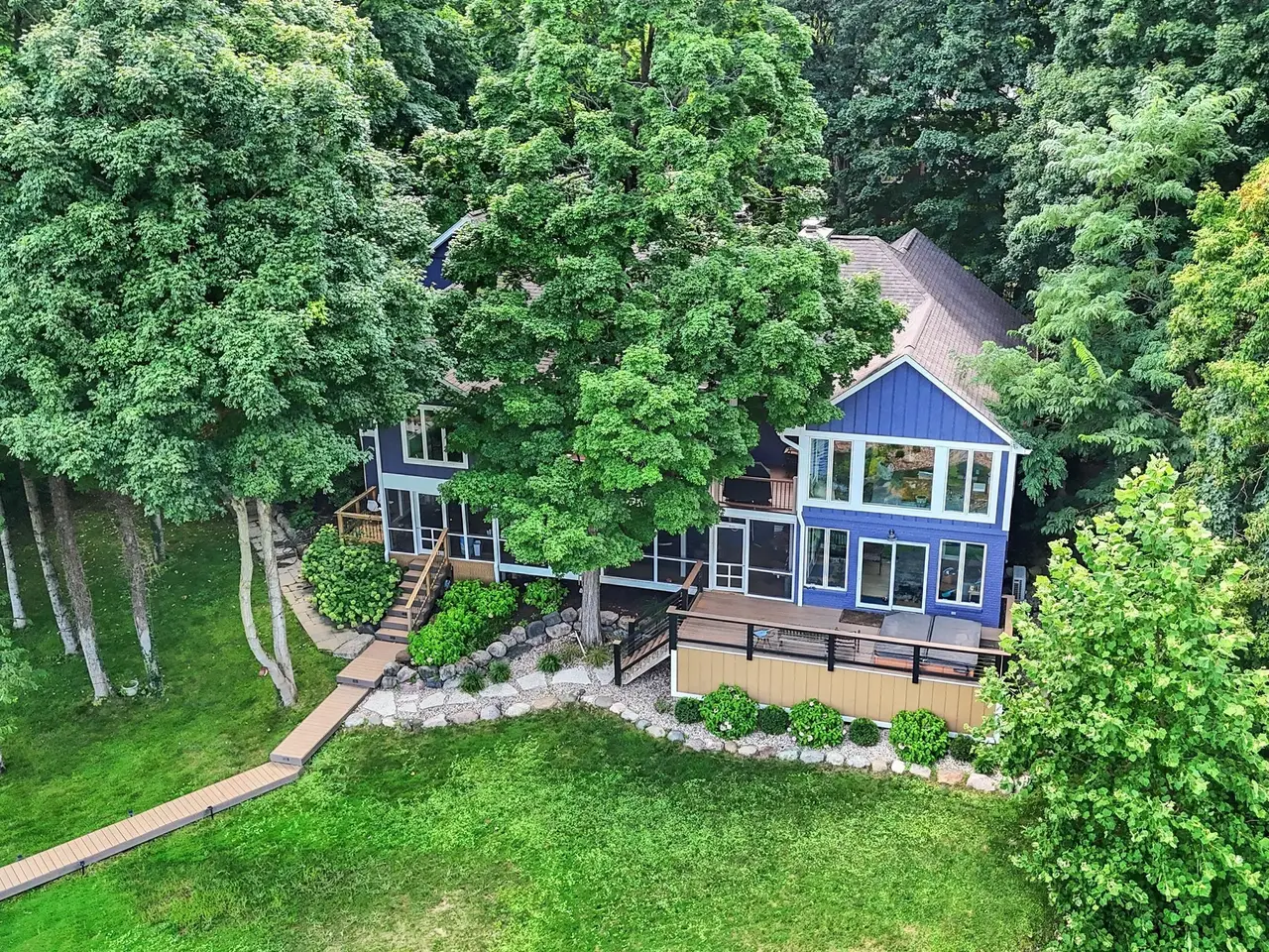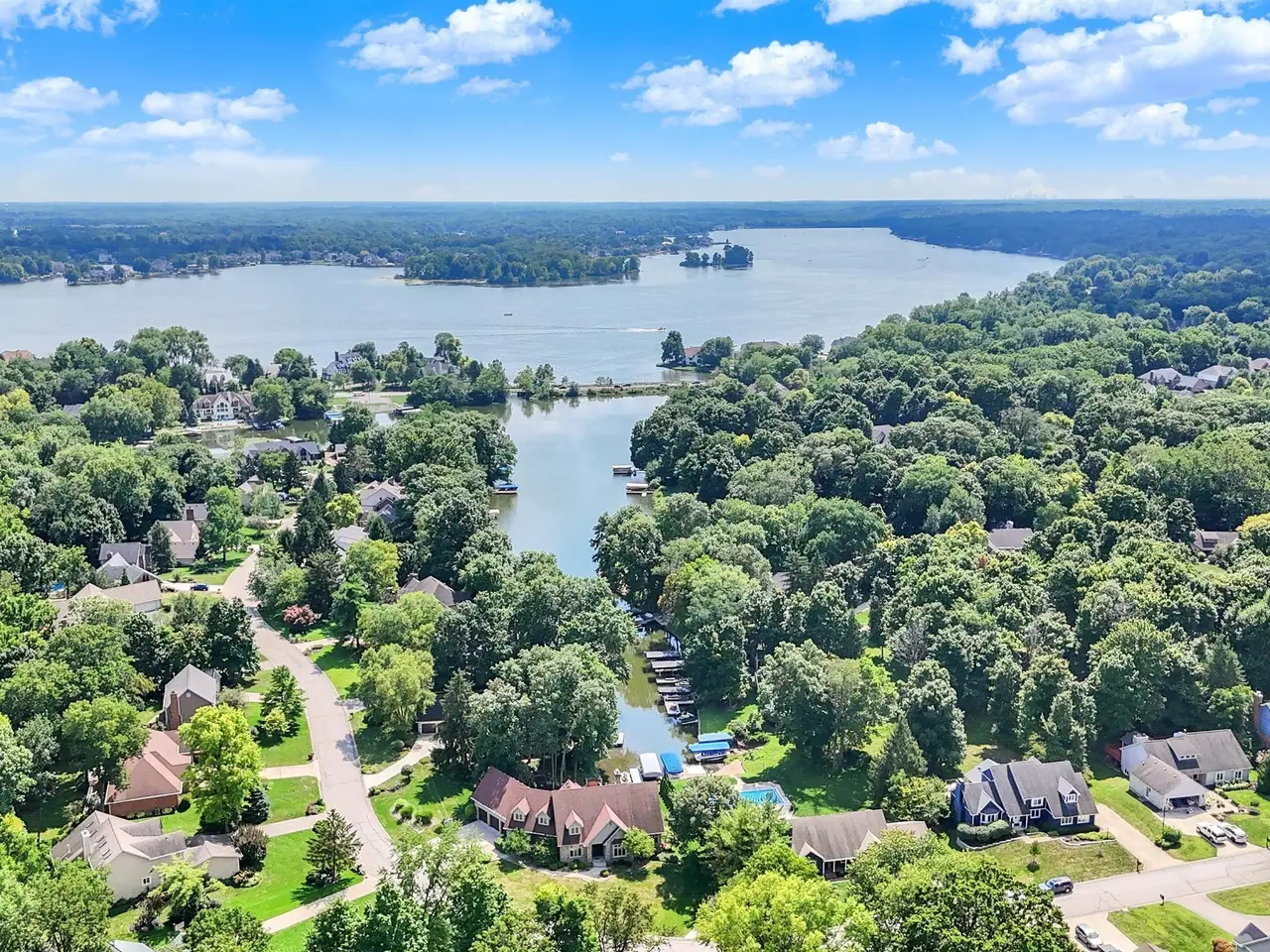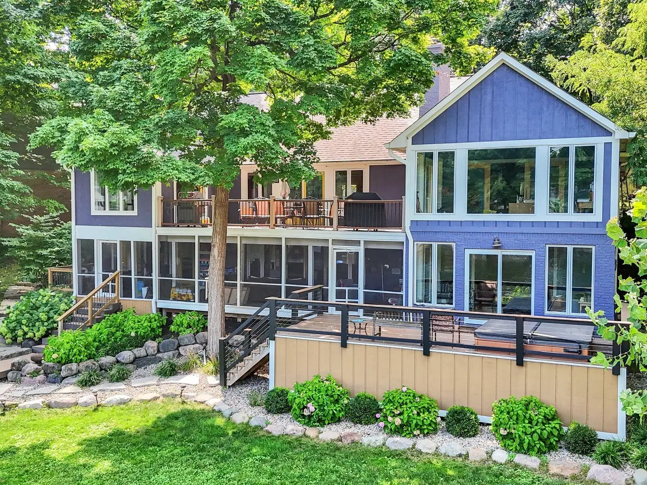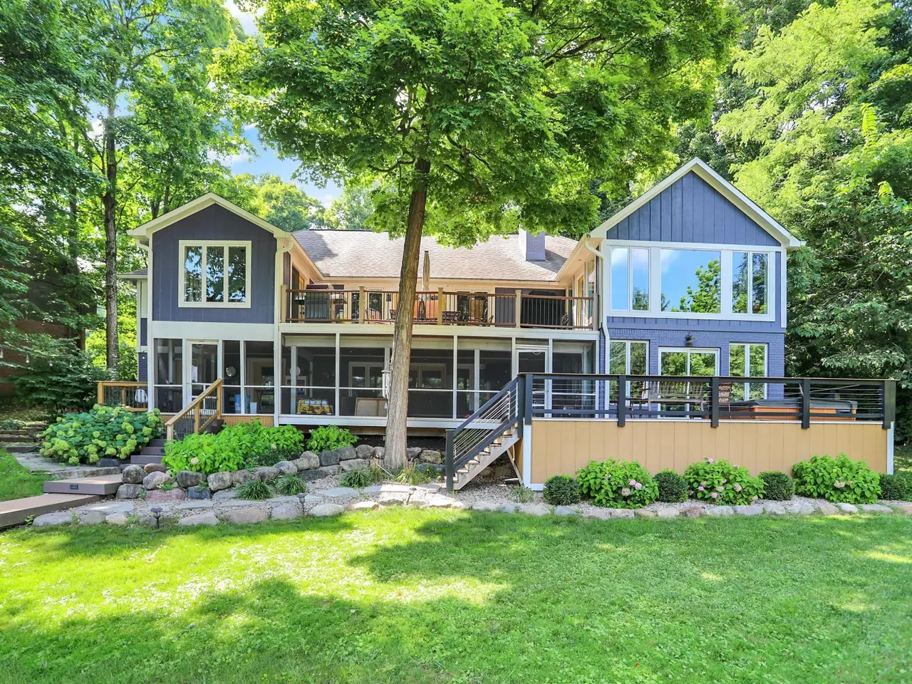 Masthead Waterfront Paradise - Where Every Day Feels Like a Getaway. Wake up to the shimmer of the reservoir right outside your window, coffee in hand, as the gentle call of waterfowl drifts through the morning air. Hard to find 139' of shoreline! This 4-bedroom, 3-bath treasure in the sought-after Masthead community turns that vision into your daily reality, with a main-floor primary suite, private home office, and an airy, light-filled floorplan that frames the water from the moment you step inside. The kitchen flows seamlessly into the breakfast room and living spaces, where walls of windows turn nature into your ever-changing backdrop. Step outside and the lifestyle expands-a Trex upper deck perfect for soaking in the morning sun, a shaded lower deck for lazy afternoons, and a screened-in porch spacious enough to gather friends and family for cozy, rainy-day conversations. From the walk-out basement, follow the path to your backyard retreat, where a bubbling hot tub invites starlit soaks and a large deck at the water's edge sets the stage for dockside dinners, laughter-filled evenings, and sunset watching that never gets old. Life in this quiet cove offers the best of all four seasons-summer boating, sunrise paddleboarding, and kayaking right from your backyard; crisp autumn mornings with golden reflections on the water; and in winter, a sparkling wonderland perfect for skating. Whether you're entertaining a crowd or savoring peaceful moments alone, every day feels like a vacation here. Recent updates ensure comfort and peace of mind, including refinished wood floors (2024), a new shed and exterior paint (2019), HVAC system (2021), tankless water heater (2020), hot tub addition, sprinkler system (2022), engineered hardwood flooring in the lower level (2020), and more. An encapsulated crawl space with dehumidifier, epoxied garage floors, and lush landscaping complete this exceptional lakefront offering.