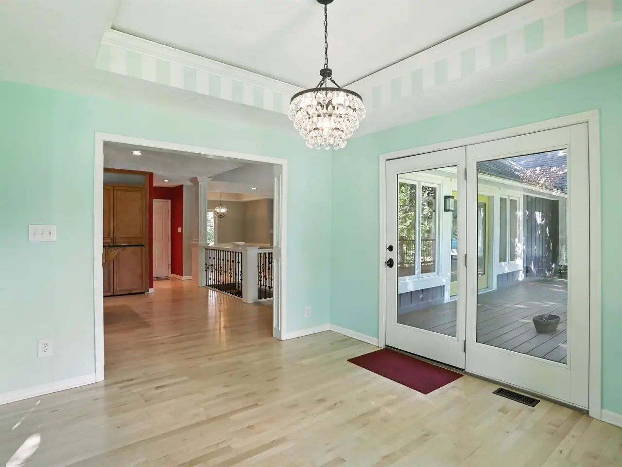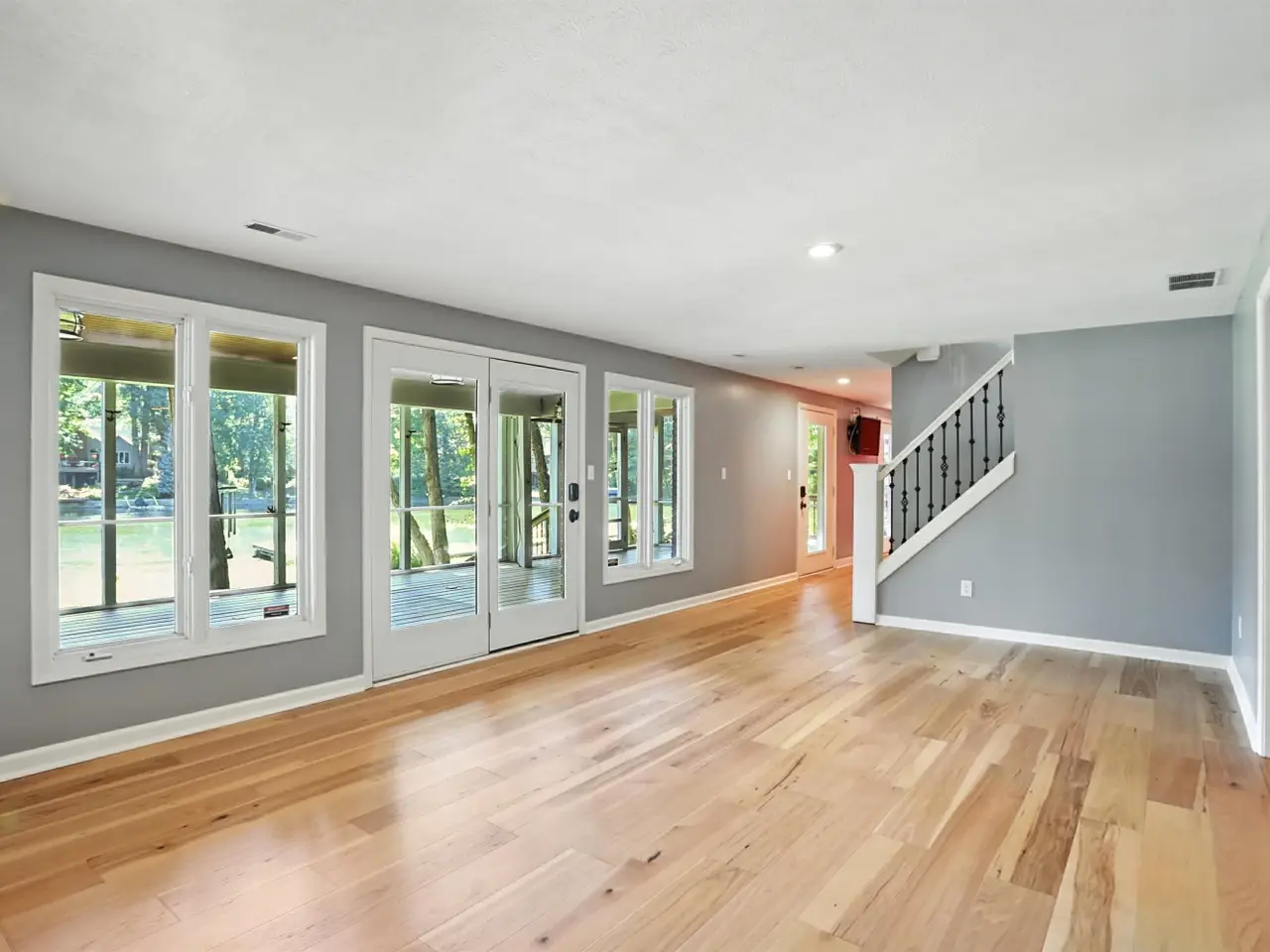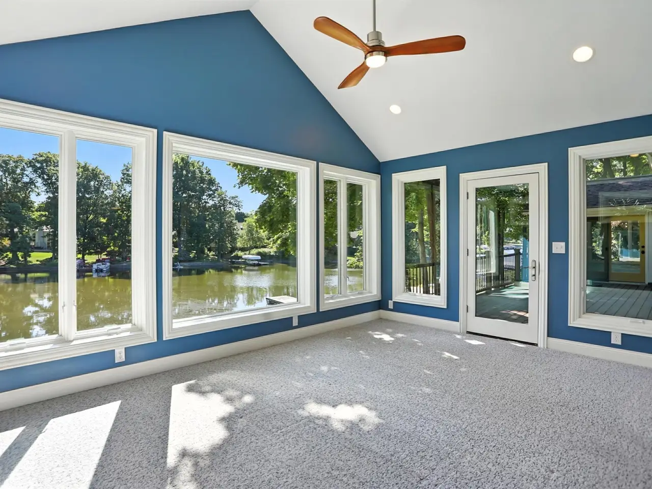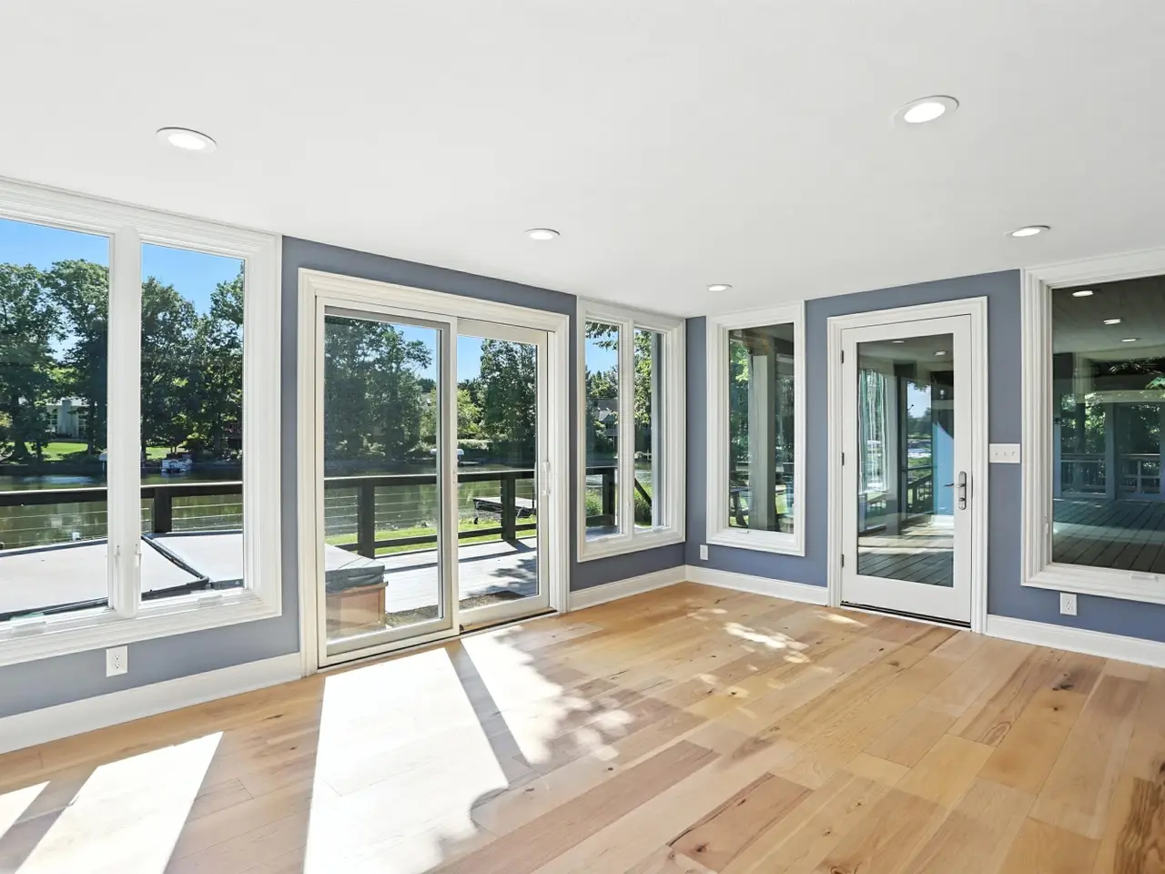 Masthead Waterfront Paradise - Where Every Day Feels Like a Getaway. Wake up to the shimmer of the reservoir right outside your window, coffee in hand, as the gentle call of waterfowl drifts through the morning air. Hard to find 139' of shoreline! This 4-bedroom, 3-bath treasure in the sought-after Masthead community turns that vision into your daily reality, with a main-floor primary suite, private home office, and an airy, light-filled floorplan that frames the water from the moment you step inside. The kitchen flows seamlessly into the breakfast room and living spaces, where walls of windows turn nature into your ever-changing backdrop. Step outside and the lifestyle expands-a Trex upper deck perfect for soaking in the morning sun, a shaded lower deck for lazy afternoons, and a screened-in porch spacious enough to gather friends and family for cozy, rainy-day conversations. From the walk-out basement, follow the path to your backyard retreat, where a bubbling hot tub invites starlit soaks and a large deck at the water's edge sets the stage for dockside dinners, laughter-filled evenings, and sunset watching that never gets old. Life in this quiet cove offers the best of all four seasons-summer boating, sunrise paddleboarding, and kayaking right from your backyard; crisp autumn mornings with golden reflections on the water; and in winter, a sparkling wonderland perfect for skating. Whether you're entertaining a crowd or savoring peaceful moments alone, every day feels like a vacation here. Recent updates ensure comfort and peace of mind, including refinished wood floors (2024), a new shed and exterior paint (2019), HVAC system (2021), tankless water heater (2020), hot tub addition, sprinkler system (2022), engineered hardwood flooring in the lower level (2020), and more. An encapsulated crawl space with dehumidifier, epoxied garage floors, and lush landscaping complete this exceptional lakefront offering.