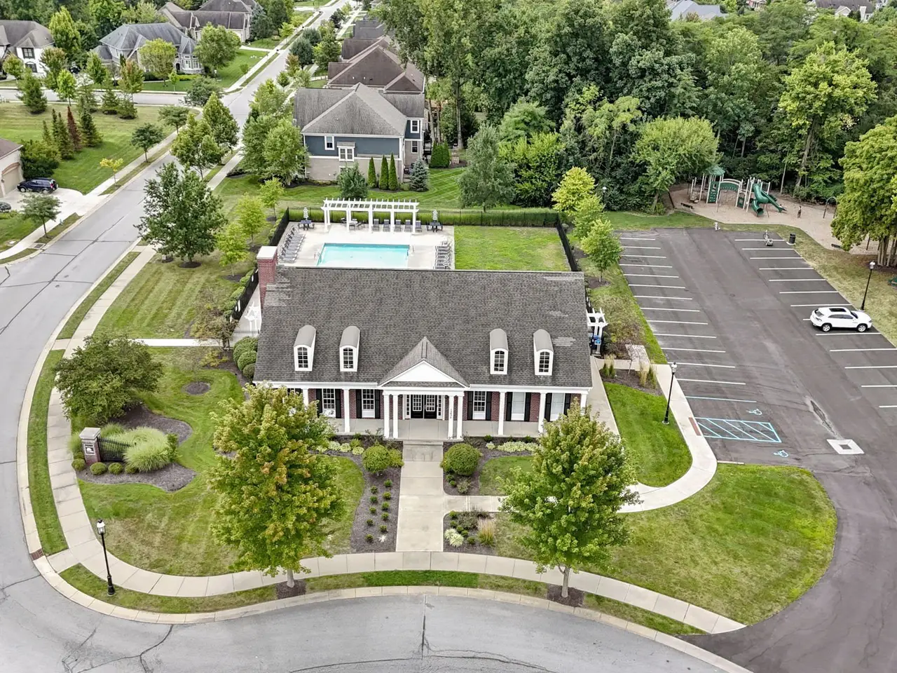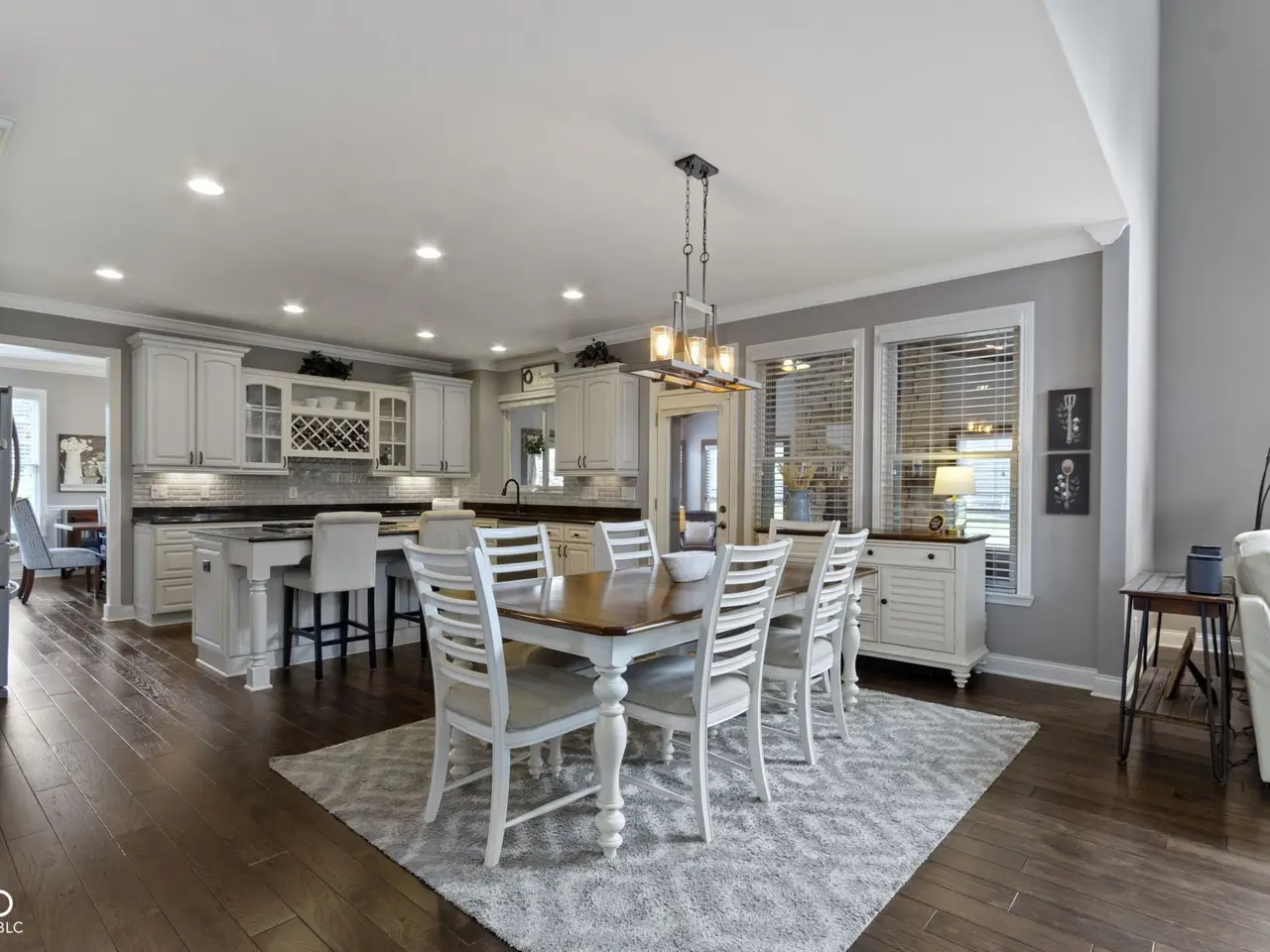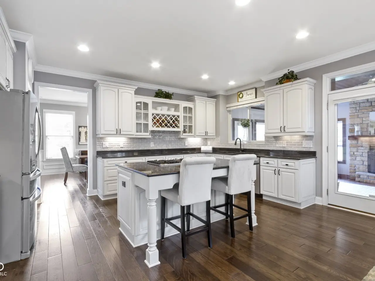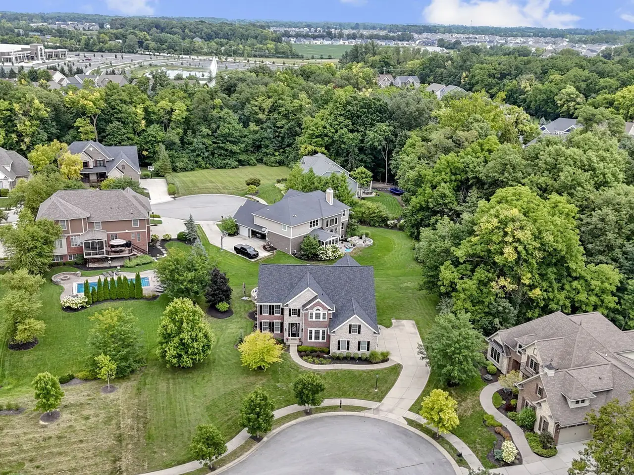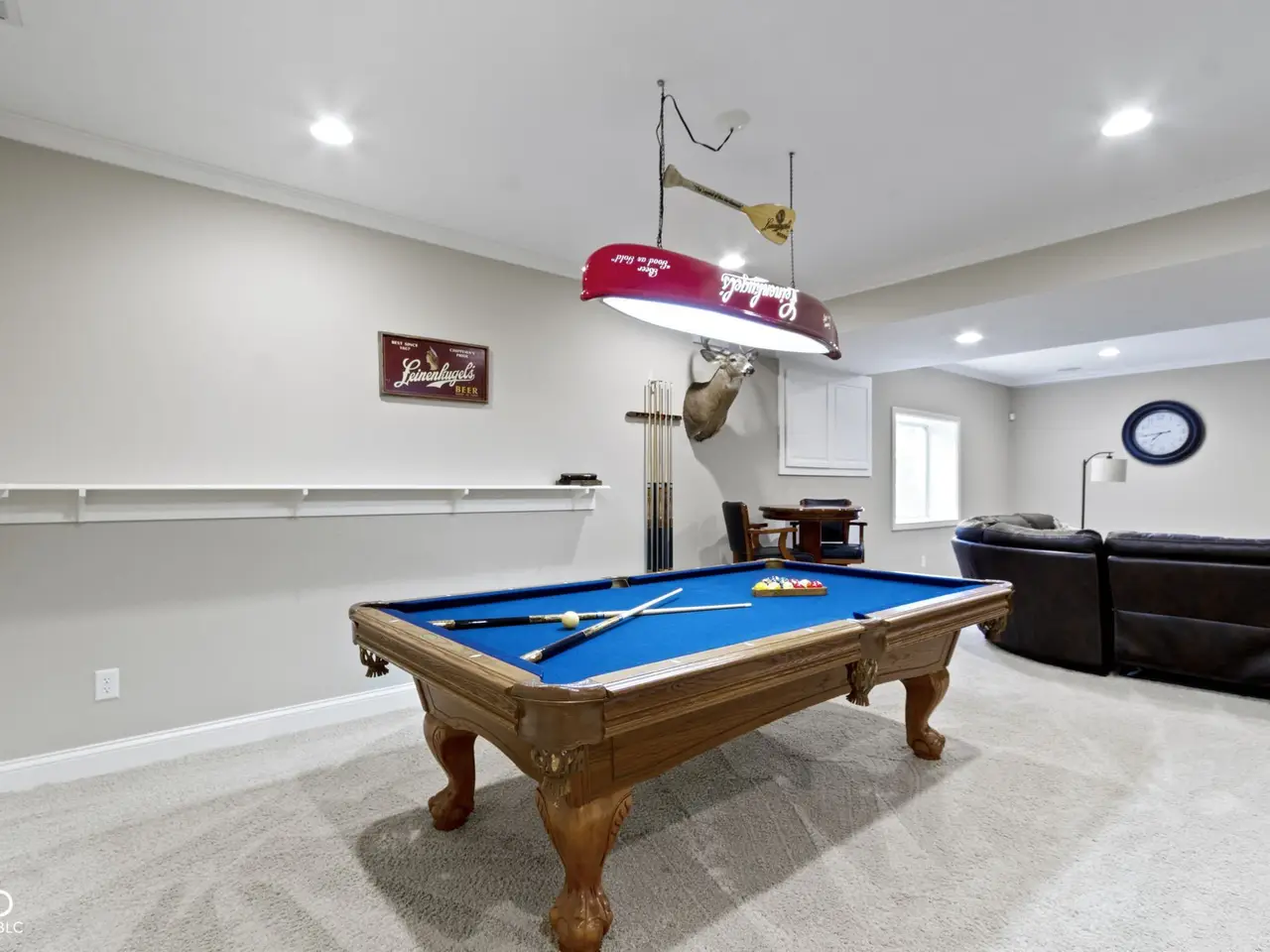 Nestled at the end of a culdesac on a premier lot, this timeless 5 bedroom/4.5 bath home awaits you in one of Fishers most desirable neighborhoods-the WOODS of THORPE CREEK! Upon arrival, you are greeted with gleaming hardwood floors and soaring 2 story foyer with detailed trim work. French double doors lead to your private office with beautiful wainscotting. A thoughtfully designed floor plan offers a separate living room and a formal dining room complete with new lighting. Large eat in kitchen is a chef's delight offering an abundance of updated white shaker cabinets, tile backsplash, granite, gas cooktop in the center island, and all stainless steel appliances ready to entertain! Speaking of entertaining, directly off the kitchen enjoy intimate gatherings in the ADDED three season room with cozy gas fireplace perfect for many months of the year! Two story great room is drenched in natural light by a wall of windows with coffered ceilings, stone gas fireplace and family friendly staircase. Upstairs find your owner's suite, three addt'l bedrooms with BRAND NEW carpet. Owner's suite includes a large sitting room, raised dual sinks, w/in shower, soaking tub, and WIC with adjustable wood shelving. Don't miss the Andersen wood core windows with detailed casings. Open walkway leads to 3 additional bedrooms that are generously sized and one with private bath. All bedrooms offer walk in closets! ESCAPE downstairs to your full finished basement with a wet bar, beverage fridge, billiard area, family/rec room and an additional bedroom with full bath. A true extension of the home with storage and closets. OUTSIDE is your amazing backyard with paver patio and firepit not to mention a large wooded side lot for added privacy, a space perfect for playset or a future pool! Home is situated on .47 acre and includes 3 car side load garage. Separate family entrance into laundry and mudroom! NEW Roof 2025 and HVAC 2023. Perfect location, don't miss this one!