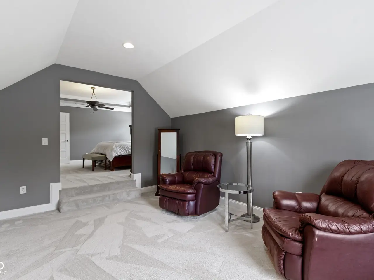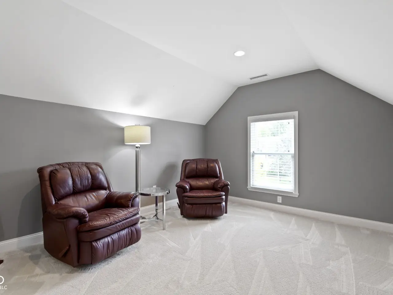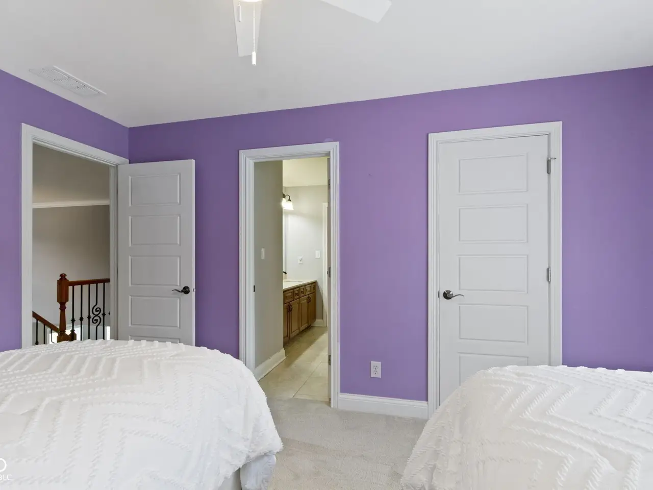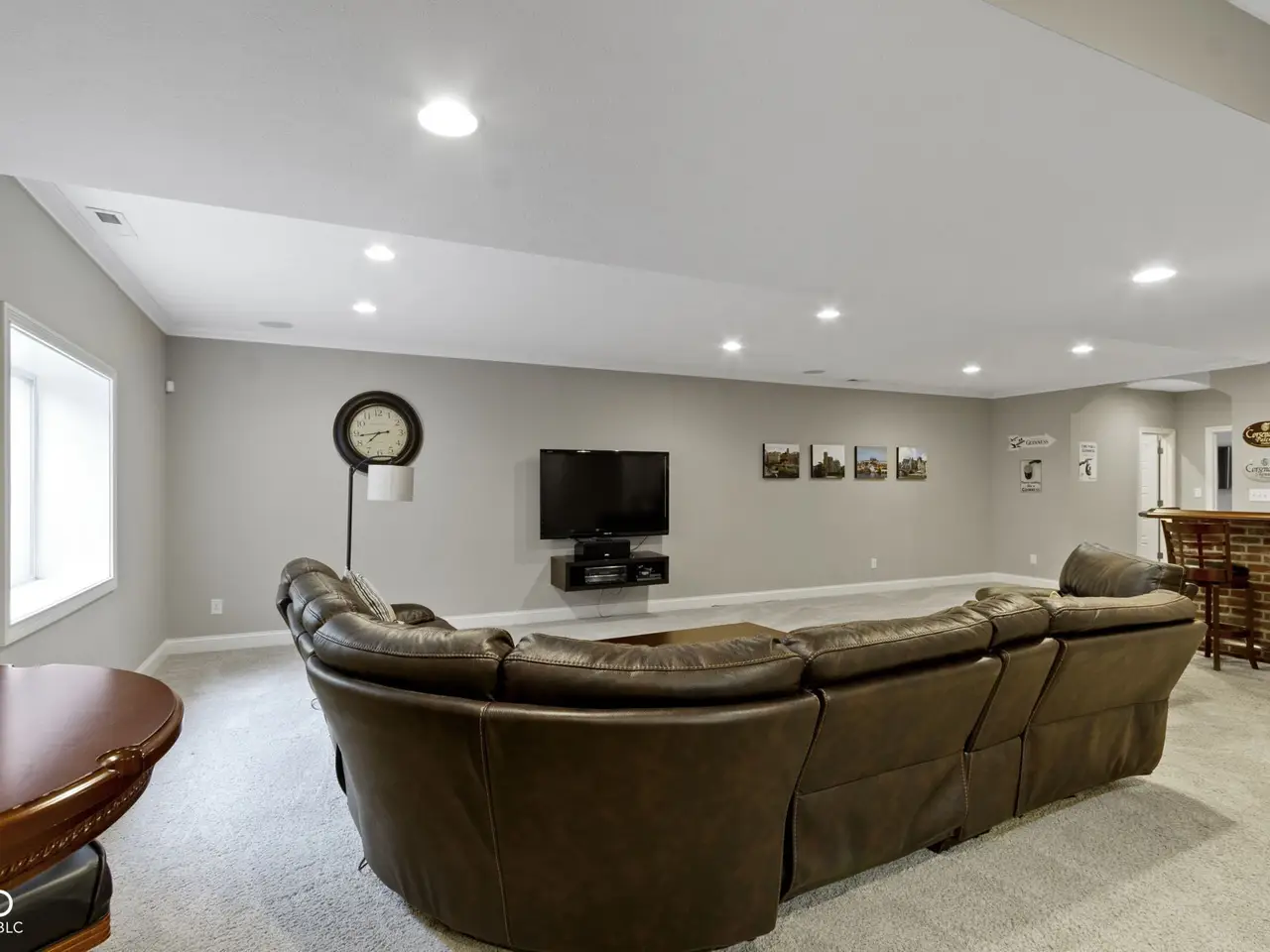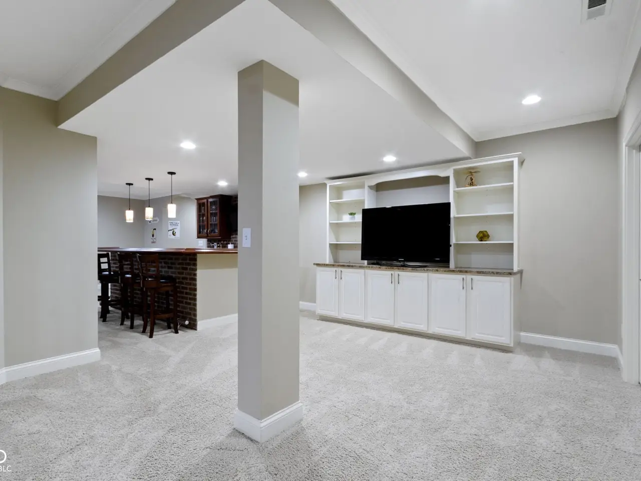 Nestled at the end of a culdesac on a premier lot, this timeless 5 bedroom/4.5 bath home awaits you in one of Fishers most desirable neighborhoods-the WOODS of THORPE CREEK! Upon arrival, you are greeted with gleaming hardwood floors and soaring 2 story foyer with detailed trim work. French double doors lead to your private office with beautiful wainscotting. A thoughtfully designed floor plan offers a separate living room and a formal dining room complete with new lighting. Large eat in kitchen is a chef's delight offering an abundance of updated white shaker cabinets, tile backsplash, granite, gas cooktop in the center island, and all stainless steel appliances ready to entertain! Speaking of entertaining, directly off the kitchen enjoy intimate gatherings in the ADDED three season room with cozy gas fireplace perfect for many months of the year! Two story great room is drenched in natural light by a wall of windows with coffered ceilings, stone gas fireplace and family friendly staircase. Upstairs find your owner's suite, three addt'l bedrooms with BRAND NEW carpet. Owner's suite includes a large sitting room, raised dual sinks, w/in shower, soaking tub, and WIC with adjustable wood shelving. Don't miss the Andersen wood core windows with detailed casings. Open walkway leads to 3 additional bedrooms that are generously sized and one with private bath. All bedrooms offer walk in closets! ESCAPE downstairs to your full finished basement with a wet bar, beverage fridge, billiard area, family/rec room and an additional bedroom with full bath. A true extension of the home with storage and closets. OUTSIDE is your amazing backyard with paver patio and firepit not to mention a large wooded side lot for added privacy, a space perfect for playset or a future pool! Home is situated on .47 acre and includes 3 car side load garage. Separate family entrance into laundry and mudroom! NEW Roof 2025 and HVAC 2023. Perfect location, don't miss this one!