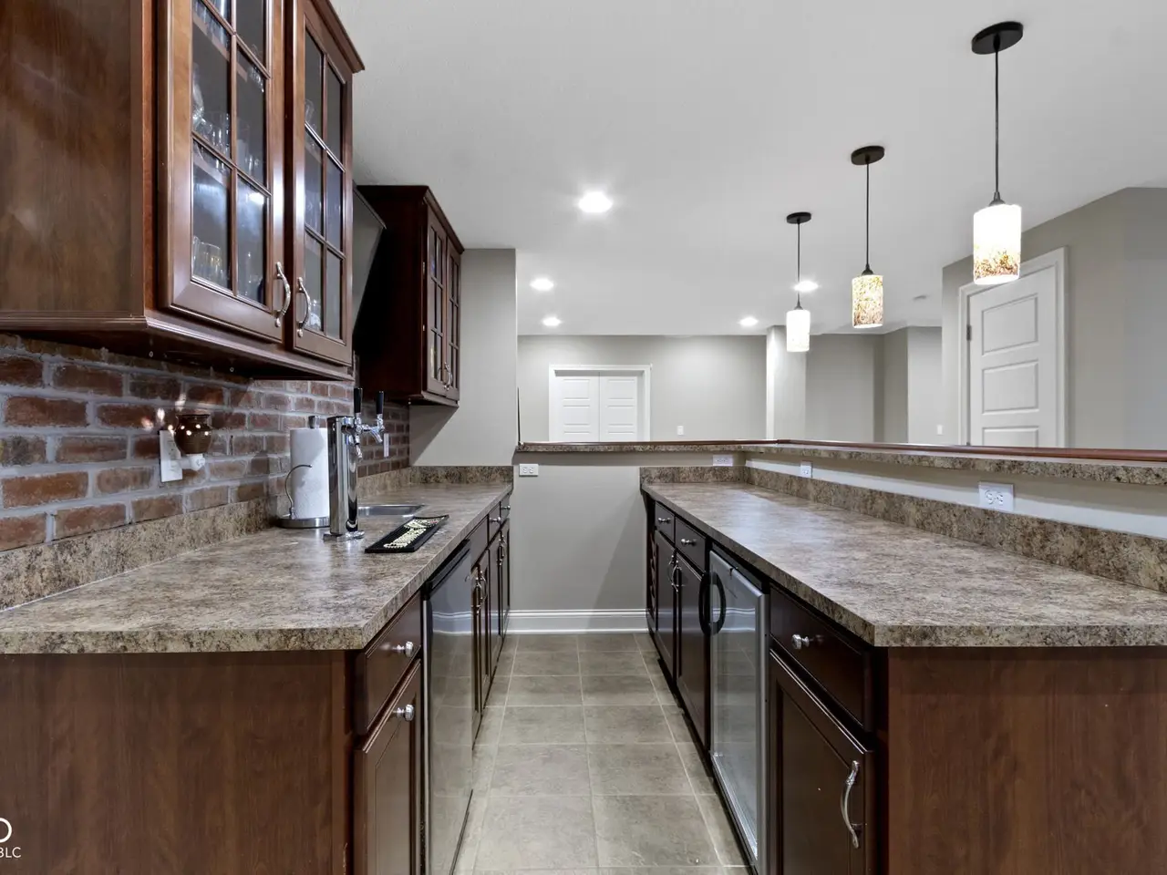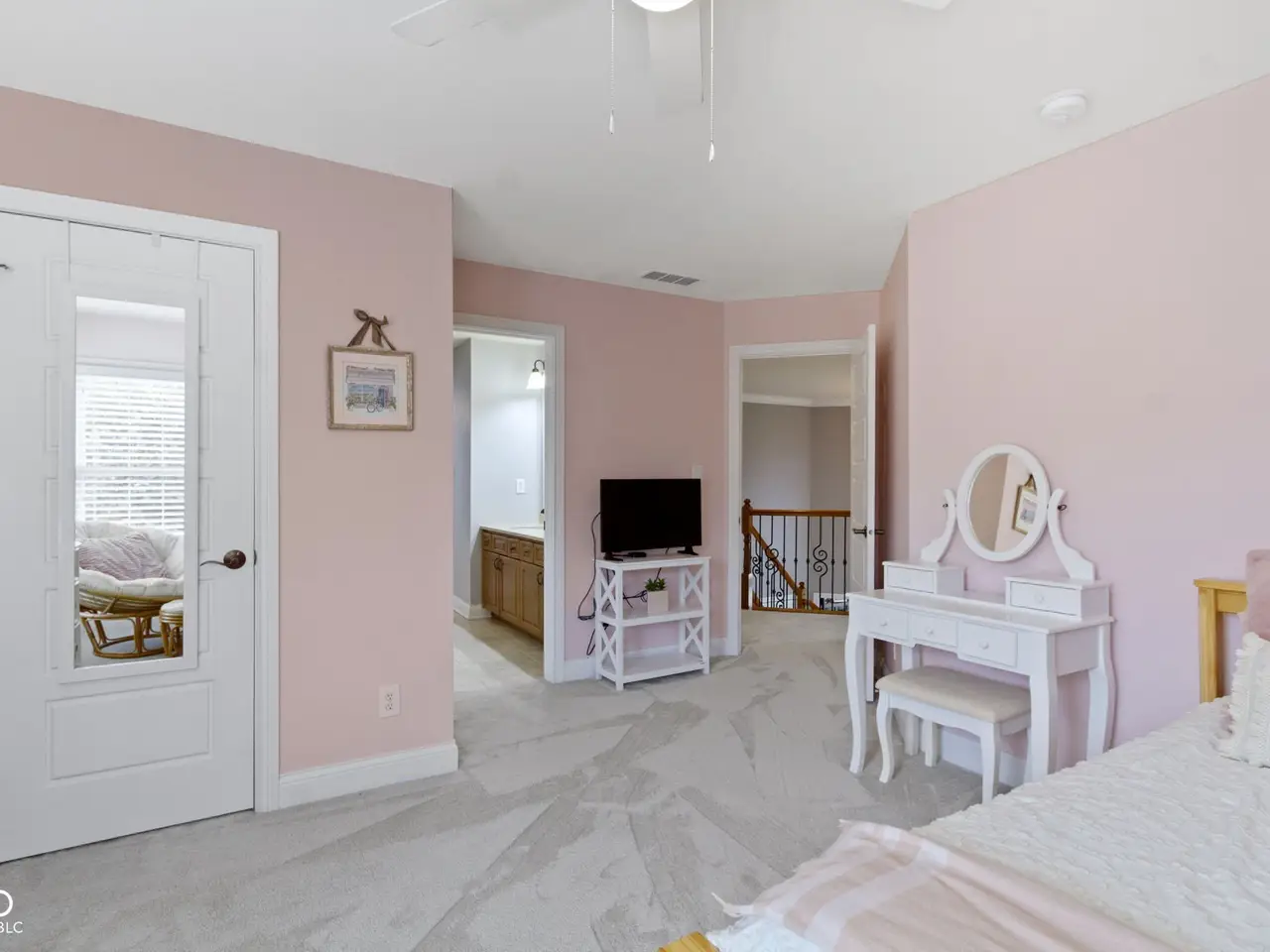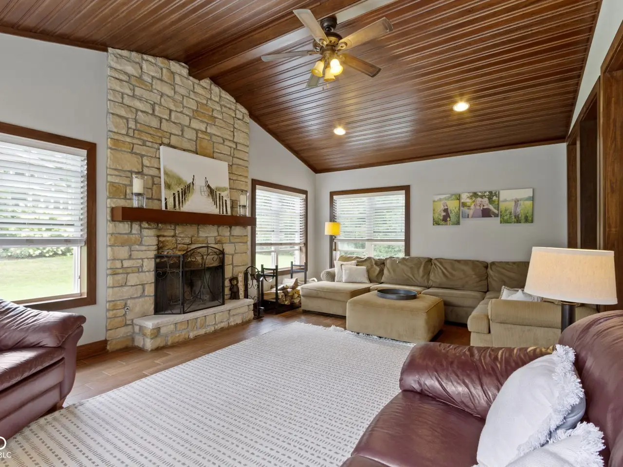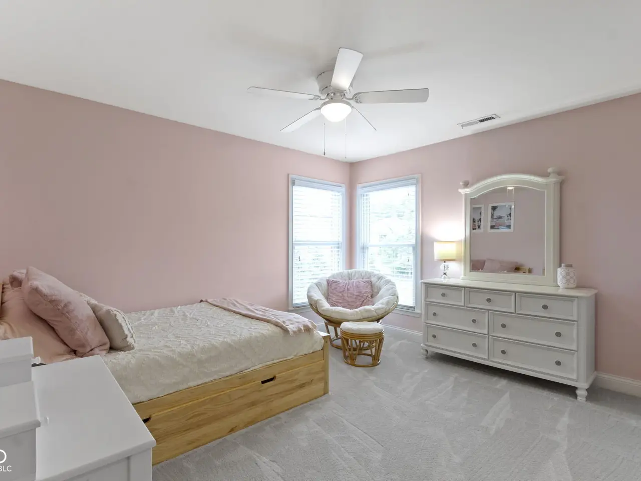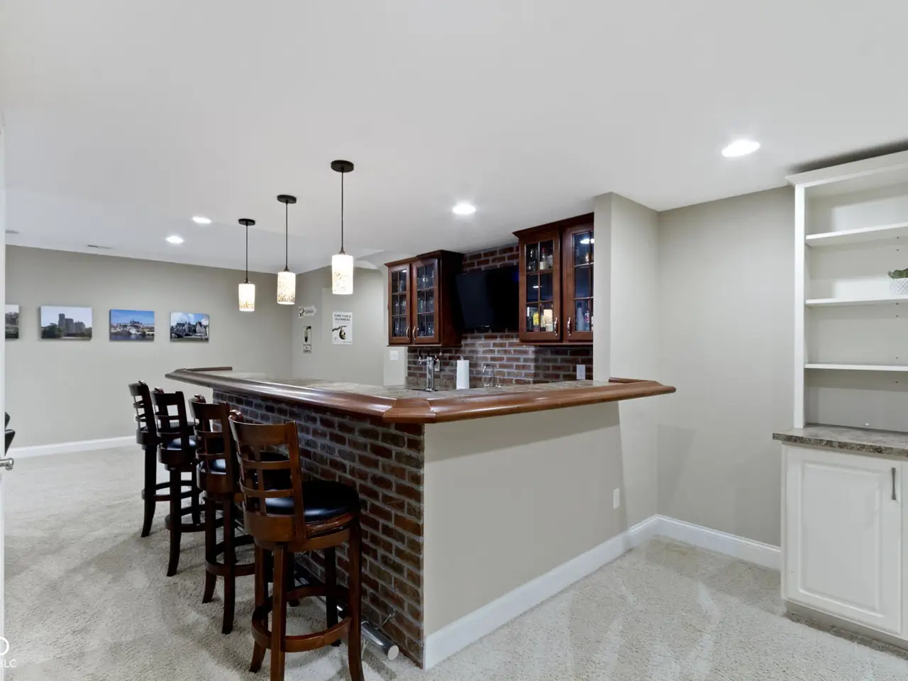 Nestled at the end of a culdesac on a premier lot, this timeless 5 bedroom/4.5 bath home awaits you in one of Fishers most desirable neighborhoods-the WOODS of THORPE CREEK! Upon arrival, you are greeted with gleaming hardwood floors and soaring 2 story foyer with detailed trim work. French double doors lead to your private office with beautiful wainscotting. A thoughtfully designed floor plan offers a separate living room and a formal dining room complete with new lighting. Large eat in kitchen is a chef's delight offering an abundance of updated white shaker cabinets, tile backsplash, granite, gas cooktop in the center island, and all stainless steel appliances ready to entertain! Speaking of entertaining, directly off the kitchen enjoy intimate gatherings in the ADDED three season room with cozy gas fireplace perfect for many months of the year! Two story great room is drenched in natural light by a wall of windows with coffered ceilings, stone gas fireplace and family friendly staircase. Upstairs find your owner's suite, three addt'l bedrooms with BRAND NEW carpet. Owner's suite includes a large sitting room, raised dual sinks, w/in shower, soaking tub, and WIC with adjustable wood shelving. Don't miss the Andersen wood core windows with detailed casings. Open walkway leads to 3 additional bedrooms that are generously sized and one with private bath. All bedrooms offer walk in closets! ESCAPE downstairs to your full finished basement with a wet bar, beverage fridge, billiard area, family/rec room and an additional bedroom with full bath. A true extension of the home with storage and closets. OUTSIDE is your amazing backyard with paver patio and firepit not to mention a large wooded side lot for added privacy, a space perfect for playset or a future pool! Home is situated on .47 acre and includes 3 car side load garage. Separate family entrance into laundry and mudroom! NEW Roof 2025 and HVAC 2023. Perfect location, don't miss this one!