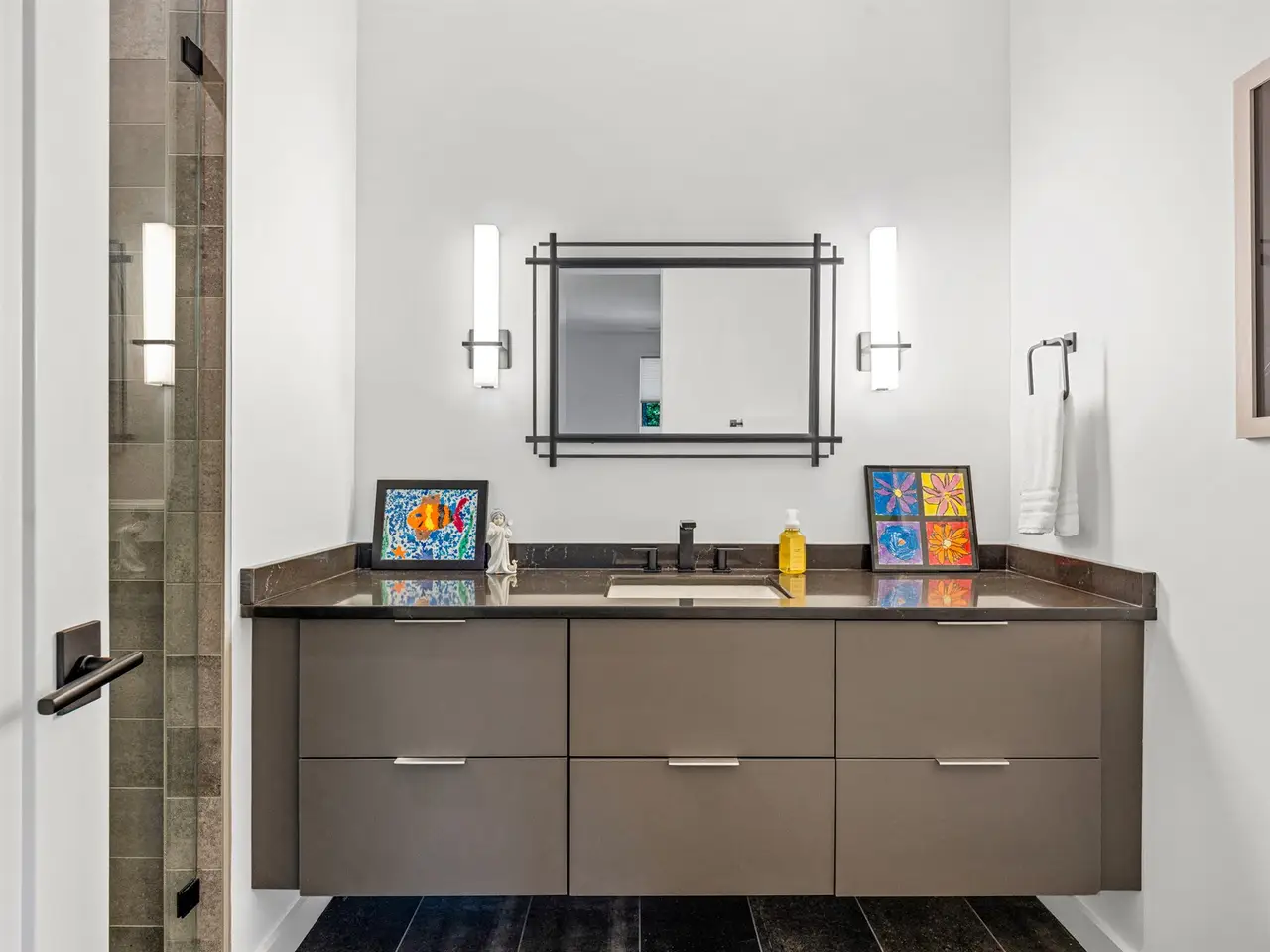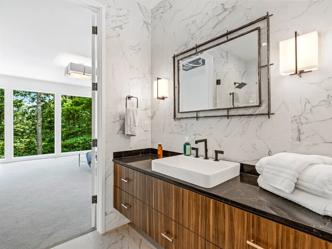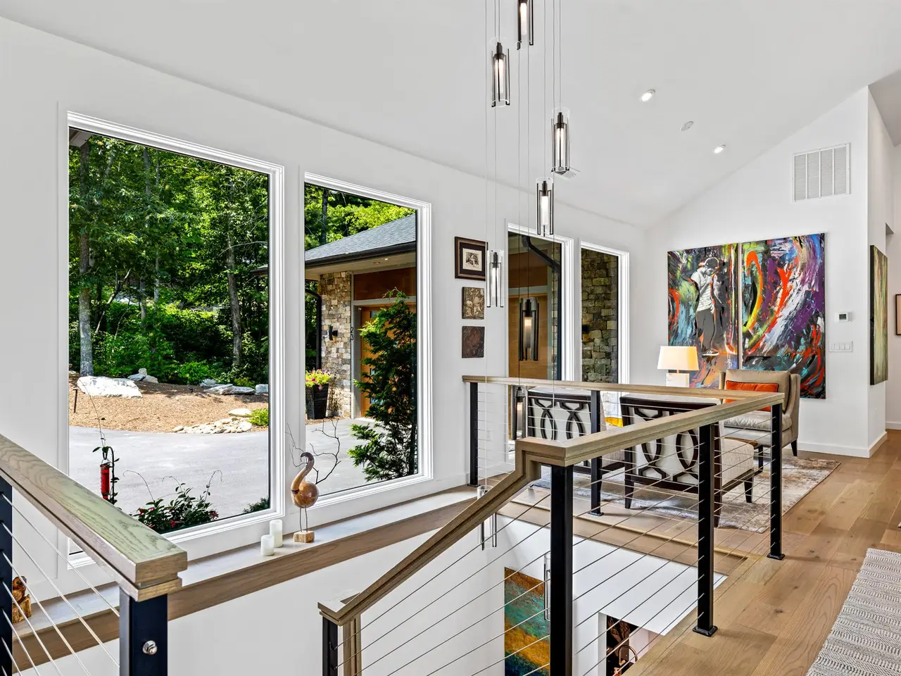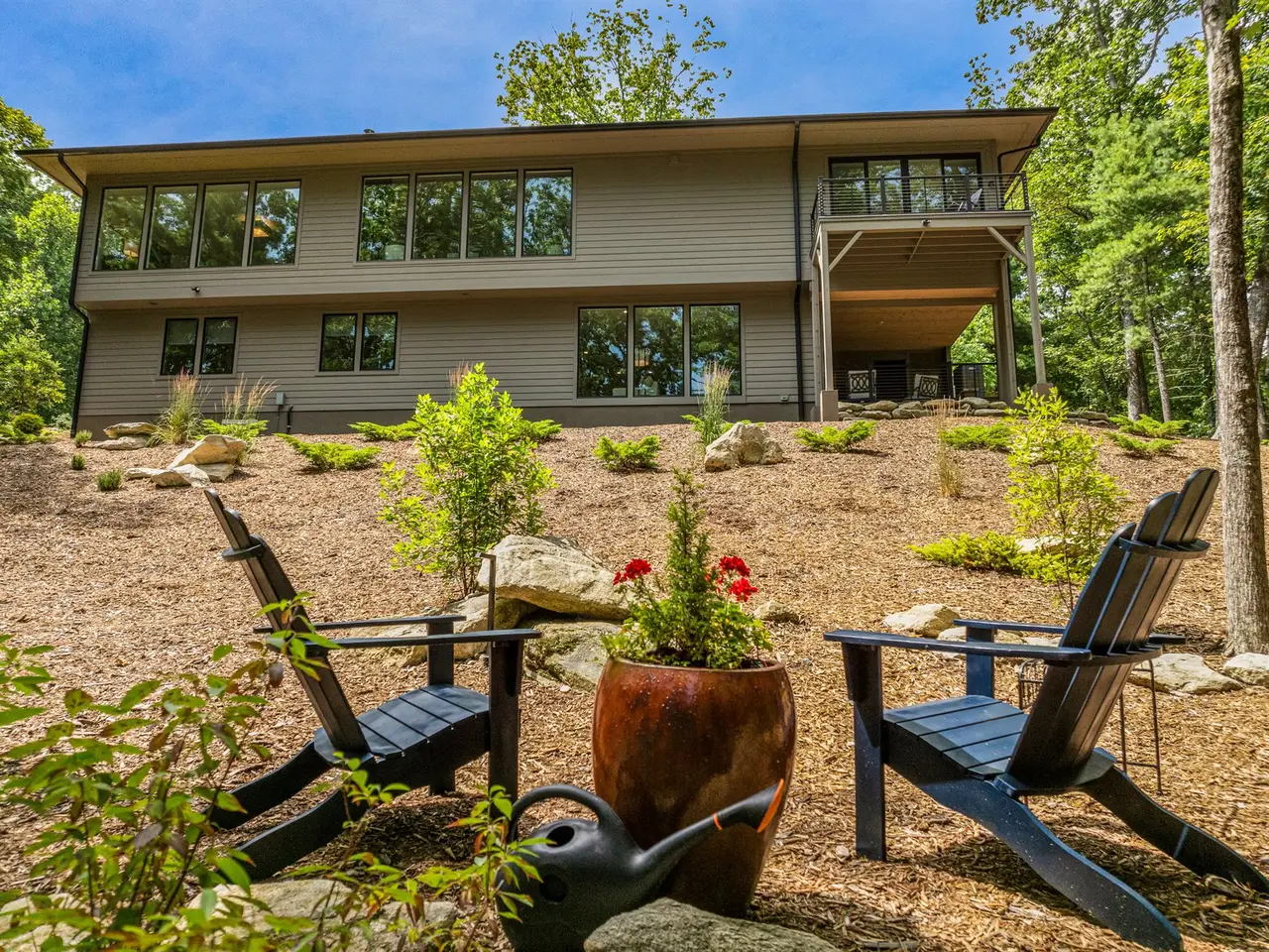Step into this stunning modern home a true life-size treehouse with unparalleled privacy. The open-concept great room features soaring 18' ceilings and a striking fireplace wall that anchors the space. Walls of floor-to-ceiling picture windows flood the home with natural light while immersing you in nature's serene surroundings. At the heart of the home is a chef's kitchen designed for entertaining, showcasing custom Cabico cabinetry, quartz countertops and dramatic island, and premium SubZero, Wolf, and Cove appliances. Retreat to the home office a serene space for creating or peaceful reflection. The terrace level offers well appointed guest spaces with premium tile and designer finishes. Enjoy comfort year-round with three zoned HVAC one per level and one dedicated to the primary suite and a whole-house Generac generator. Designer lighting enhances each space, adding warmth and ambiance throughout. Blending sleek design with warmth and comfort, this home inspires at every turn.