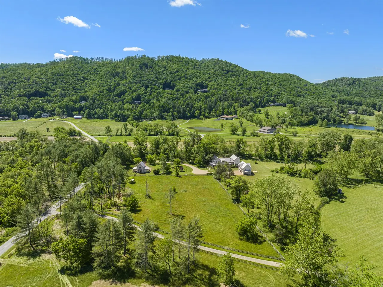 Nestled in the serene mountains of Western North Carolina, this modern farmhouse sits on over 10 private acres along a stocked trout stream. The estate features a spacious 4-bedroom main house, each bedroom with its own en suite bath, complemented by a cozy 2-bedroom guest house. You'll also find a barn with a stable, a charming chicken coop, and pens for other farm animals, all surrounded by ample pasture space perfect for livestock or gardening. A detached garage houses a home gym and sauna, supporting a healthy, whole-body lifestyle. This inviting retreat offers the perfect blend of privacy and simplicity, ideal for those seeking a peaceful mountain lifestyle with plenty of room for animals and outdoor living?all just 6 miles from Whole Foods, 7.5 miles to Fresh Market, 7.5 miles to the entrance to the Blue Ridge Parkway, 13.7 miles to Beautiful Biltmore Estate, and all the fabulous shopping and dining in between!