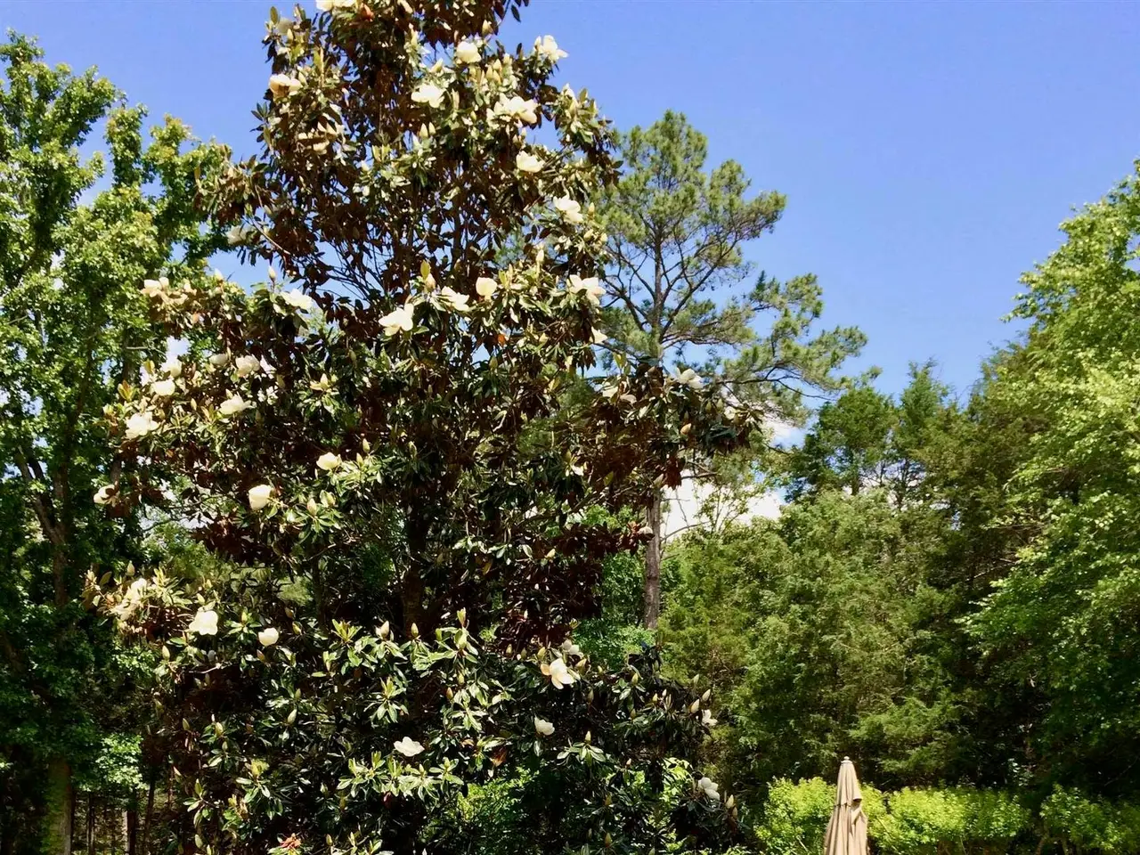 Picture windows with backyard views