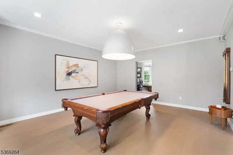 The ultimate in luxury and performance, this custom home in one of Florham Park's most desirable neighborhoods is loaded w/high-end upgrades and distinctive benefits rarely found at any price point. Approx. 7000 + sq. ft including the LL and featuring 4+ spacious bedrooms and 6 baths, it also offers a separate lower-level guest suite w/full bath and direct garage access, ideal for guest or remote work space. A first-floor office, finished basement w/gym and wet bar, and a heated 3-car gar complete the flexible layout. What sets this home apart is its blend of luxury, efficiency, and wellness. Geothermal heating/cooling, fully owned solar panels, and participation in NJ's SREC program resulted in a net energy profit in 2024. Solid wood flooring and molding (no MDF), mineral wool insulation, and low-VOC finishes meet EPA Indoor airPLUS standards for healthier living. Air is continuously refreshed by a HEPA-ready ERV system, and a whole-house water filtration system removes PFAS, heavy metals, and more. Smart home wiring (Cat5e), wine refrigerators in the dining room and basement, and an instant hot/filtered water tap elevate convenience and entertaining. The kitchen features a Wolf dual-fuel range, Miele combi-steam oven, Bosch dishwasher, and KitchenAid built-in fridge. Additional highlights include radiant heat in kitchen and baths, steam shower, whole-house generator, EV plugs, motorized shades, fenced yard with fire pit, and solar-equipped shed.