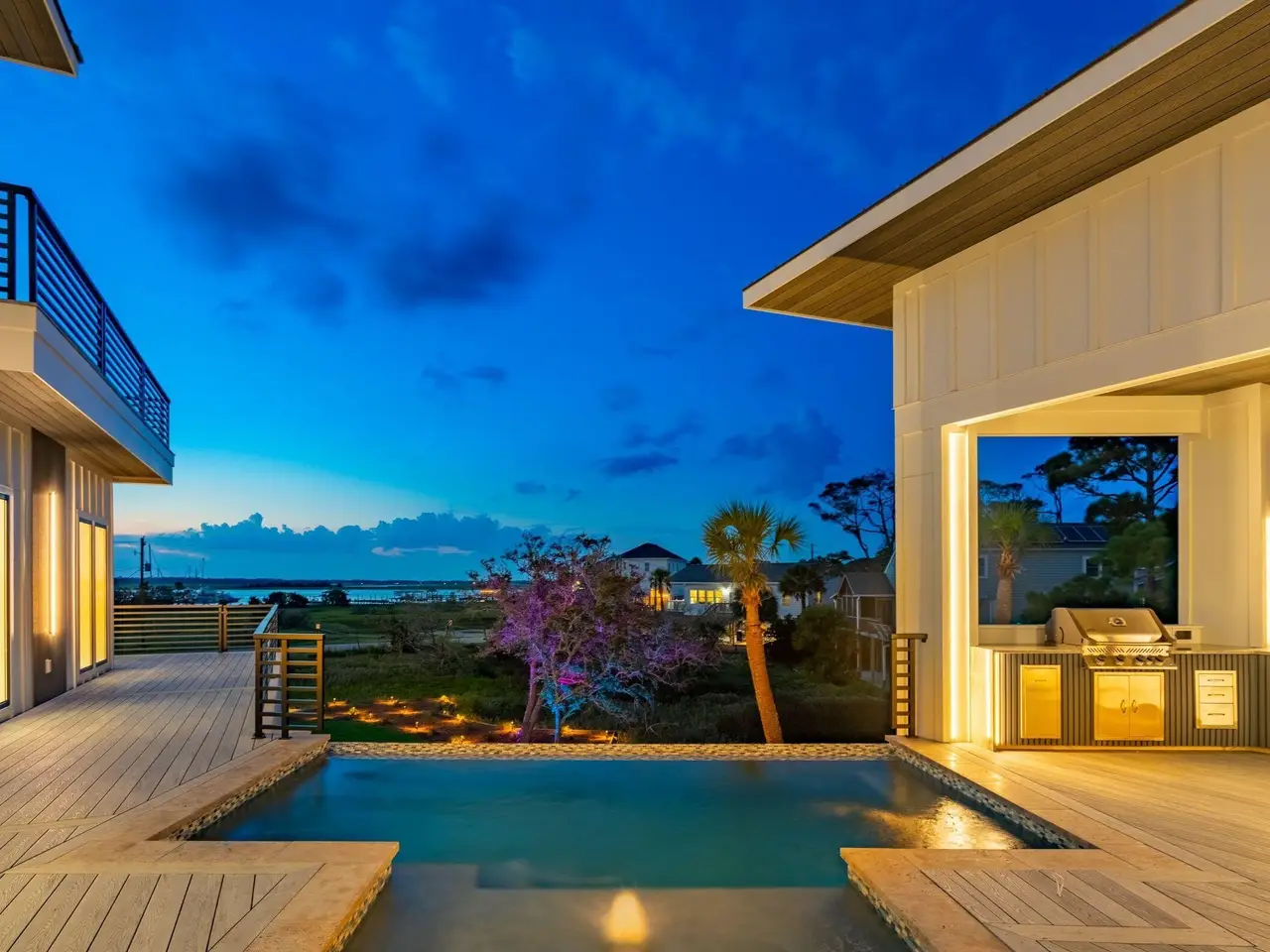 Welcome to 35 West 9th Street - Your dream coastal retreat at iconic Folly Beach is awaiting! This one of a kind property is nestled on the quiet west end of Folly and on a pristine .56 acre lot overlooking the serene views of the Folly River while also boasting spectacular ocean views as well. The home is stunning and offers a rare blend of sophistication and tranquility. Custom built and meticulously crafted, this home offers an array of upscale amenities including an outdoor kitchen, an amazing elevated pool heated by natural gas and a rooftop deck perfect for entertaining or simply unwinding from the end of the day.The home spans 3822 square feet and offers the perfect blend of luxury, comfort, and breathtaking views. There are 3 spacious bedrooms, 4 full bathrooms, a flex room that can serve as an additional guest room or a perfect home office and a bonus poolside room in the design. You will be greeted by an open-concept main floor with sprawling 11-foot ceilings where a spacious family room, dining area, and the chef's kitchen seamlessly flows together. Floor-to-ceiling windows bathe the space in natural light while offering uninterrupted views of the river, the sprawling marshes, the elevated pool and the outdoor kitchen. No detail has been overlooked in this home's design. The Chef's Kitchen features gorgeous stone countertops, custom cabinets and a high end stainless steel appliance package, including a 6-Burner gas stove top range & oven. The perfectly designed bar seating at the kitchen island allows plenty of room for family and friends to relax, spread out and enjoy this magical kitchen space & its wonderful views. The expansive 1st floor primary bedroom suite boasts custom built-ins, vaulted ceilings, a walk-in closet, and a luxurious steam shower with a soaking tub. This bedroom suite also has its own climate controlled cooling & heating system allowing for whatever specifically maintained temperature you prefer. Additionally, a vanity studio adds a touch of indulgence to your daily routine. The main floor also features a versatile flex room with its own full bathroom, perfect for creating a home office or accommodating guests. An elevator ensures accessibility throughout all levels of this gorgeous home and the large butler's pantry with its 2nd full refrigerator and laundry room provide convenience and ample additional storage. A mudroom provides a practical entry point, keeping the rest of the home pristine. Upstairs, a loft-style family room offers wonderful views and access to a large rooftop deck where you can entertain guests or just unwind while taking in the panoramic water vistas and gorgeous ocean views. The second bedroom functions as a 2nd primary suite, complete with its own en-suite bathroom and incredible river views. The third bedroom, which has sweeping ocean views, provides additional comfort and privacy for family, friends and guests. Outside, the stunning raised pool, complete with bench seating areas are perfectly complemented by the aforementioned outdoor kitchen, and are ideal for hosting events of any size. There is even a pool house entertainment room to watch your favorite sports team while enjoying the pool and jaw dropping river views. The grand garage below the home has four over sized bay doors and will accommodate multiple cars. This massive garage space adds 2200 additional square feet of dry storage below the home ideal for your at-home gym, boat storage and general storage. All of your beach and boat toys, your golf cart, surf boards and bikes store easily. From the pre-wired gas Generac whole house generator to the 2 Tesla superchargers and the pre-installed Starlink home internet system, this home's dynamic and unique high end finishes are unmatched. The home is just steps from the Sunset Cay Marina and a very short walk to the 9th street beach access. Folly Beach is a laid back Bohemian style beach town with miles of beautiful beaches, a teeming commercial district with restaurants, bars and cute shops. A short 20 minute drive will get you to downtown historic Charleston where you can enjoy all that the Holy City has to offer. This stunning custom built home and its private location makes it an ideal coastal sanctuary. Don't let this one of a kind opportunity pass you by!