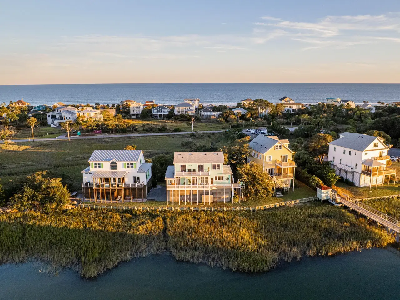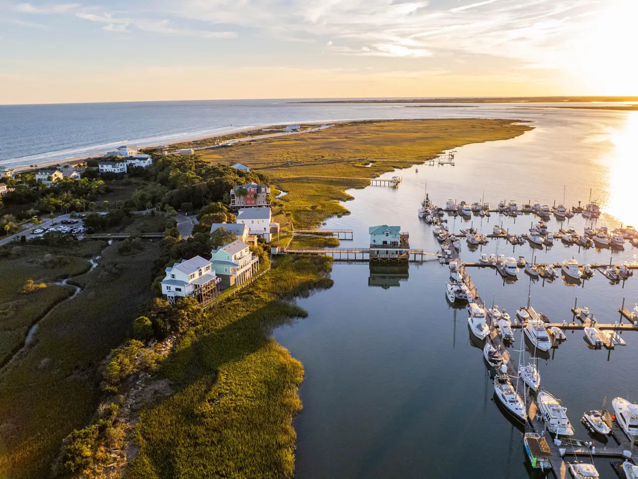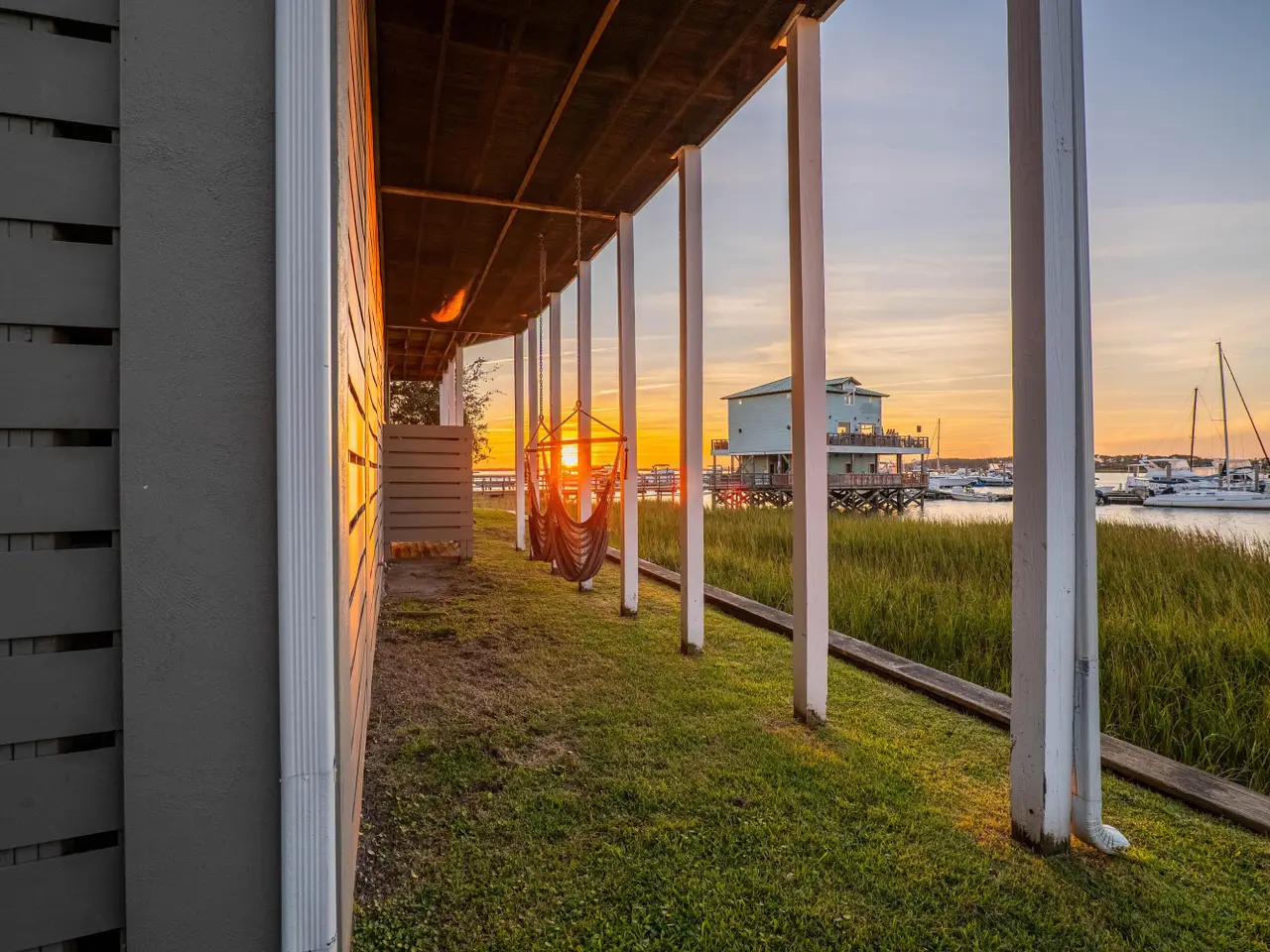 Welcome to your dream retreat at 68 West 9th St, located amidst the beauty of Folly Beach, SC! This 3 bedroom, 3.5 bath exquisite riverfront home is a rare gem, offering stunning views of the Folly River and the perfect blend of comfort and style.Nestled in a quiet cul-de-sac, this home truly embodies the Folly Beach lifestyle--the beach is only a quick walk or golf cart ride away, breathtaking waterfront views that capture stunning sunsets from most rooms of the home, and a dock right at your doorstep. Overlooking Sunset Cay Marina, Slip E-22 is available for purchase separately. A 20'x40' boat slip is just a quick walk out your backdoor. (MLS#25029016). The home features a welcoming open floor plan and a spacious back porch that runs the entire length of the house.The family room boasts a wall of windows that floods the space with natural light. Beautiful hardwood floors stretch throughout, except in the tiled bathrooms. Just imagine hosting gatherings here, where your guests can spill out onto the covered porch and the open-air deck, soaking in the beauty of dolphins swimming by. The kitchen is a chef's delight, featuring generous counter space, plenty of cabinetry, and an island with seating. Adjacent to the kitchen is a large formal dining room. The downstairs primary suite is a sanctuary with French doors leading to the riverfront deck. The en suite features a luxurious walk-in shower, a large soaking tub, and a spacious walk-in closet. A sizable laundry room is located off of the kitchen and and a powder room at the entrance of the home complete the first level. Venture upstairs, where you'll find a wonderful loft area perfect for a home office, a cozy reading nook, or a playroom for the kids. Here, sliding glass doors open onto a spectacular second-floor sun deck, providing a unique vantage point for watching unforgettable sunsets over the river with views stretching from Kiawah to Mt. Pleasant. The second primary bedroom suite has direct access to the sun deck as well and features its own en-suite full bath for privacy and comfort. Completing the upstairs layout is a generously sized third bedroom along with a large guest bathroom, making it ideal for visitors or family. An added bonus is the raised home features a spacious 2-car garage, a large storage room/workshop, and plenty of room for all your beach toys, bikes, surfboards, and even that trusty golf cart! Talk about convenience! Not to mention an outdoor shower to make the days after the beach an easy rinse off. This residence is not just a home; it's a lifestylea unique opportunity to experience the charm of Folly Beach and all it has to offer. A super quick ride to Center St means you can indulge in all the delicious dining and unique shopping options that the local scene has to offer. And if you want to soak in the rich history of Charleston, it's just a breezy 20-minute drive to downtown ready to explore the wonders of the Holy City!