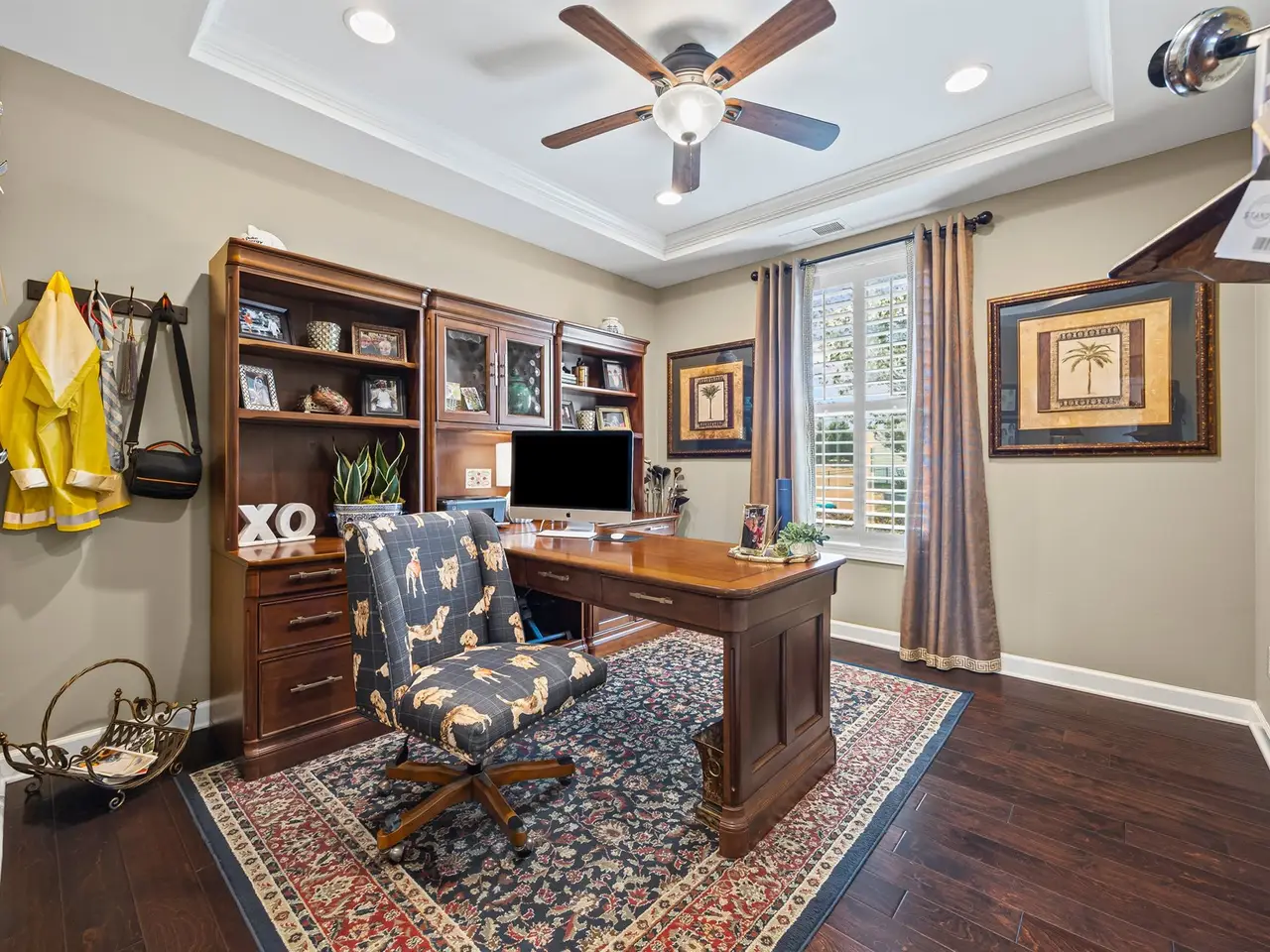 Welcome home to this spacious and meticulously maintained 4-bedroom, 3.5-bathroom gem in one of Fort Mill's most desirable communities! Step inside to an open layout that impresses with a soaring two-story great room drenched in natural light. The chef's kitchen takes center stage with its oversized island perfect for entertaining or casual family meals. The main-level primary suite is a true retreat with a luxurious ensuite, while a versatile office space adds convenience. Upstairs, you'll find three generously sized bedrooms, two full baths, plus a large sitting room with additional office space for flexible living. Outside, the fenced backyard features a beautifully designed patio with an awning for shade, ideal for relaxing or hosting guests. Set along the scenic banks of the Catawba River, this premier community offers excellent amenities and is just minutes from shopping, dining, and entertainment.