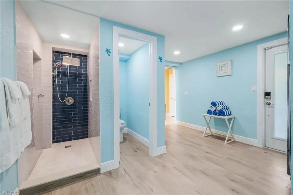 Sweeping Estero Bay views set the stage for this exceptional 4-bedroom, 3.5-bath BAYFRONT retreat offering the ultimate Florida lifestyle with every amenity imaginable. The top-level main living space is built for entertaining, with fully pocketing sliders that bring the bay into full view. An open layout flows seamlessly from the gourmet kitchen, featuring two islands, premium appliances, and a handy dumbwaiter, to the living room with wet bar, wood-burning fireplace, and retractable screened balcony perched high above the bay. The ownerÆs suite offers a private sanctuary with a wall of glass showcasing the waterfront view, a spa-like bath, and a massive walk-in closet with a California Closet system. Two additional bedrooms, a bath, and laundry are also located on the middle level, with a fourth bedroom and full bath tucked upstairs for added privacy. Outdoor living shines here: on the first level, a screened-in pool with a swim-up bar, hot tub, separate bath, and shower, along with expansive patio areas, creates a true resort vibe. You'll also find an oversized 2-car garage with epoxy floors and built-ins, and a recreation room. For boating enthusiasts, a composite dock with two lifts and a personal watercraft lift offers quick, direct Gulf access. Cruise to waterfront restaurants at Fort Myers Beach or escape south to LoverÆs Key. Additional features include an elevator with a view window, rooftop access with 360¦ panoramic vistas, two A/C units, and incredible storage throughout.