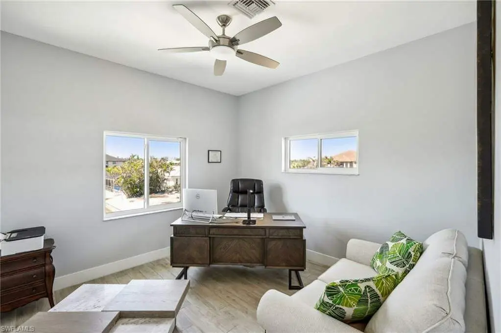 Welcome home to this gorgeous, elevated TURNKEY FURNISHED 3/2/2 direct gulf access pool home only steps to the white sands of the Gulf via your deeded Beach access. As you enter through the front doors you will be immediately wowed by the two-story entry way. The interior of this home features porcelain wood plank tile, soaring ceilings and an open floor plan. The beautiful white shaker kitchen with stainless appliances and stunning granite counter tops overlooks the main living area, great for entertaining. The ample sized master bedroom with walk in closet space also boasts an en-suite bath with dual sinks and a custom tiled walk-in shower. The second story enclosed balcony directly off the main living area is perfect for enjoying the serene canal views. In addition to the large 2 car garage on the main level there is an additional huge bonus area with so many possibilities. Step outside to your Florida oasis and enjoy relaxing by the pool, amazing fishing, or jump on your boat with your own private boat dock with a 14K lift to explore all SW Florida has to offer. Don't wait for new construction, you can move right into this 6-year young home! Huge price reduction!