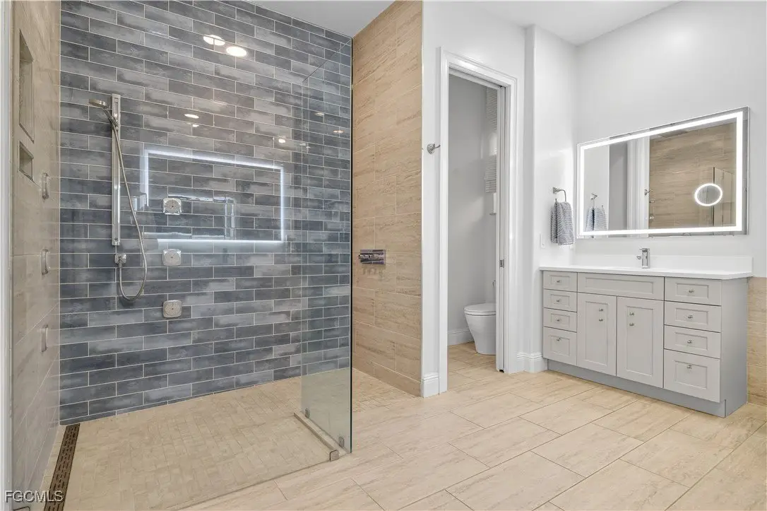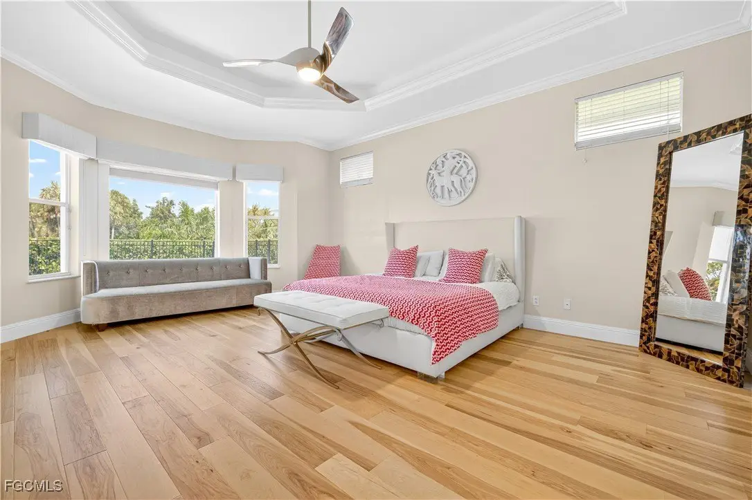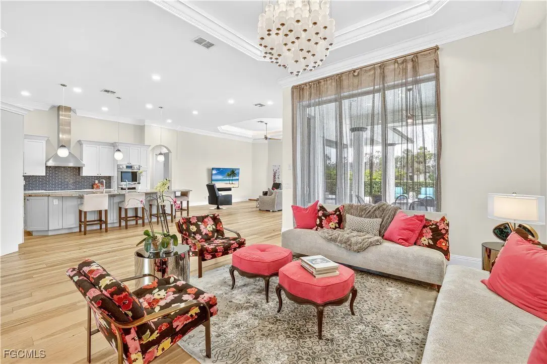Discover luxury living in one of Fort Myers' most sought-after gated communities, Devonwood Estates. Situated on a meticulously landscaped 1.15 corner acre high and dry lot surrounded by 32 royal palms, this 4-bedroom, 4-bath estate has been thoughtfully renovated with high-end finishes and features throughout. A full interior remodel was completed in 2021, including the kitchen, all living areas, and bedrooms. The gourmet kitchen showcases custom cabinetry, a large Macaubas Fantasy Granite island, and top-tier Viking and Signature appliances. Additional updates include two new AC units and ductwork (2021), new roof (2024), remodeled pool, deck, and fencing (2022), and new pool equipment with a Jandy WiFi remote. Enjoy the elegance of ornate vintage chandeliers sourced from Palm Beach and Port Royal estates, soaring ceilings, rich wood flooring, and a seamless indoor-outdoor flow. The oversized lot offers privacy with preserve views, perfect for entertaining or relaxing in the custom pool and spa. Devonwood offers residents tennis, a community boat ramp with Gulf access, and serene privacy all while being just minutes from beaches, shopping, dining, and RSW Airport. This is one of the best kept secrets in all of SWFL.