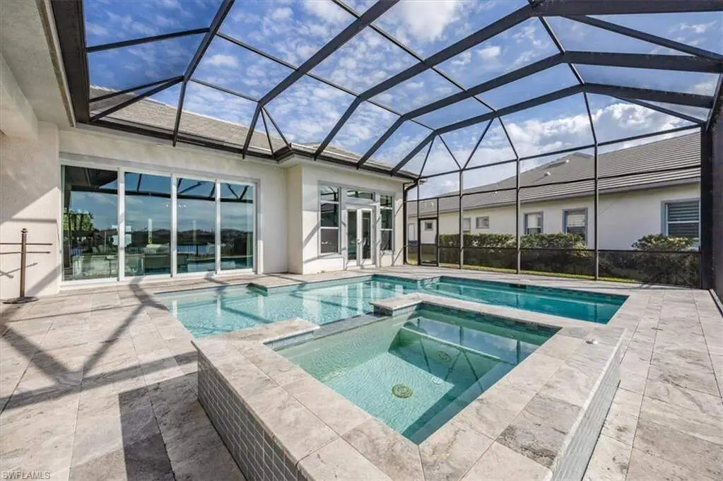 Exquisite Stock built Custom Home offers luxury and a delightful boaters paradise! With over 3650 square feet under air in this 4 bedroom plus den/flex, including a recent expansion of the owner's closet and bathroom adding over 500 square feet. Private boat dock included with direct access to the Gulf of Mexico in this unique SWFL community of only 76 homes. Graciously appointed, this remarkable home offers peace of mind with a whole home generator, hurricane impact windows and doors and a fenced backyard. Step through the double door entry to the welcoming and stunning foyer with beamed ceiling and wainscoting to set the ambiance of the home. With an amazing split floorplan, you and your guests/family will appreciate the privacy offered. The serene primary suite boasts 2 walk-in closets, and a beautifully coffered ceiling and leads into a tranquil primary bath complete with dual vanities, a make-up vanity, huge shower with multiple shower heads and a welcoming soaking tub. Create culinary masterpieces in this inspiring kitchen with natural gas and anchored by a huge island. The beverage center is super convenient, and the space opens to the generous Great Room with western exposure views over the lake. The outdoor living is spectacular, with plenty of ceilinged area for entertaining, a wet bar, outdoor kitchen and relaxing seating space overlooking the gorgeous custom pool with integrated spa. Hidden Harbor is one of the last new home communities South of Tampa Bay with Gulf access. There are not any boat size restrictions for vessels moored at Hidden Harbor's private boat slips and homeowners with boat docs have access to the Gulf of Mexico via the Ten Mile Canal and Estero Bay. The private harbor grants access to the Great Calusa Blueway Paddling Trail which meanders through the coastal waters for canoe and kayaking.