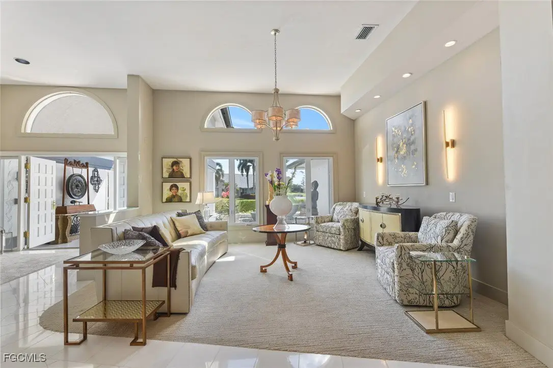 Stunning estate home with the WOW factor that sits on over a half-acre lot, offering plenty of privacy, lots of natural light and within easy walking distance to the clubhouse. Enjoy your morning coffee while watching the wildlife along your lovely lake view. Then have fun entertaining your friends and family pool side in the evening on the lovely lanai w/plenty of dining & lounge space with large outdoor kitchen featuring Paradise gas grill, stainless hood, granite tops, double sink, two mini-refrigerators. You will love the gourmet kitchen with popular open floor plan to the main living area. Kitchen features stainless steel appliances, 6-burner gas cook top with griddle and double oven, brand new microwave, granite tops, huge prep island w/ breakfast bar, Traulsen wine cooler with 120 bottle capacity, full wet bar with custom mirror and lighting. The luxury owners suite features spacious walk-in closet with built-ins and custom glass French doors, Sohji window blinds over the sliders, large walk-in shower, soaking tub, vanity, dual sinks, and new impact glass windows in master bath. All bedrooms are ensuites with walk-in closets. Other special features of this home include heated pool and spa, full pool bath, newer metal ROOF(2023), Kohler whole house GENERATOR, hurricane shutters, fireplace, tankless water heater, Ring system that stays w/the home, oversize 3-car garage (with option for AC), 500 gallon buried propane tank, lush landscaping and landscape lighting. The very low density club of Fiddlesticks features 36 holes of championship GOLF, practice range, short game practice area, 2 practice putting greens, eight lighted Har-Tru tennis courts, six pickleball courts, bocce ball, dog park, staffed fitness center, resort-style pool with lap lanes, cabana & clubhouse, full social calendar. Equity fee due at closing. Some furnishings are negotiable outside of closing. Long list of all updates in attachments. NO WAIT LIST FOR GOLF HERE!!