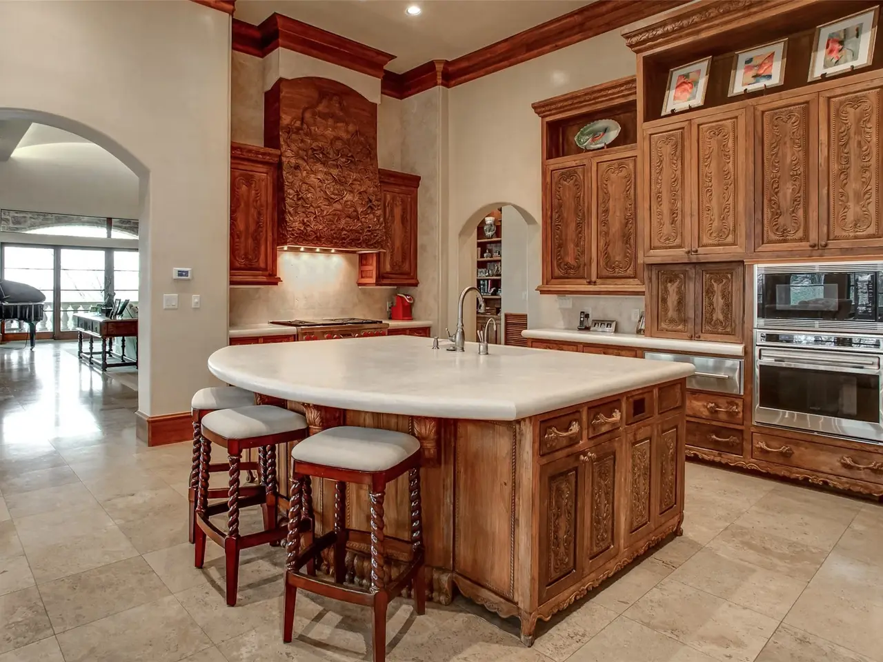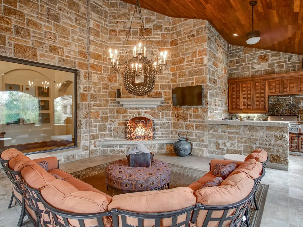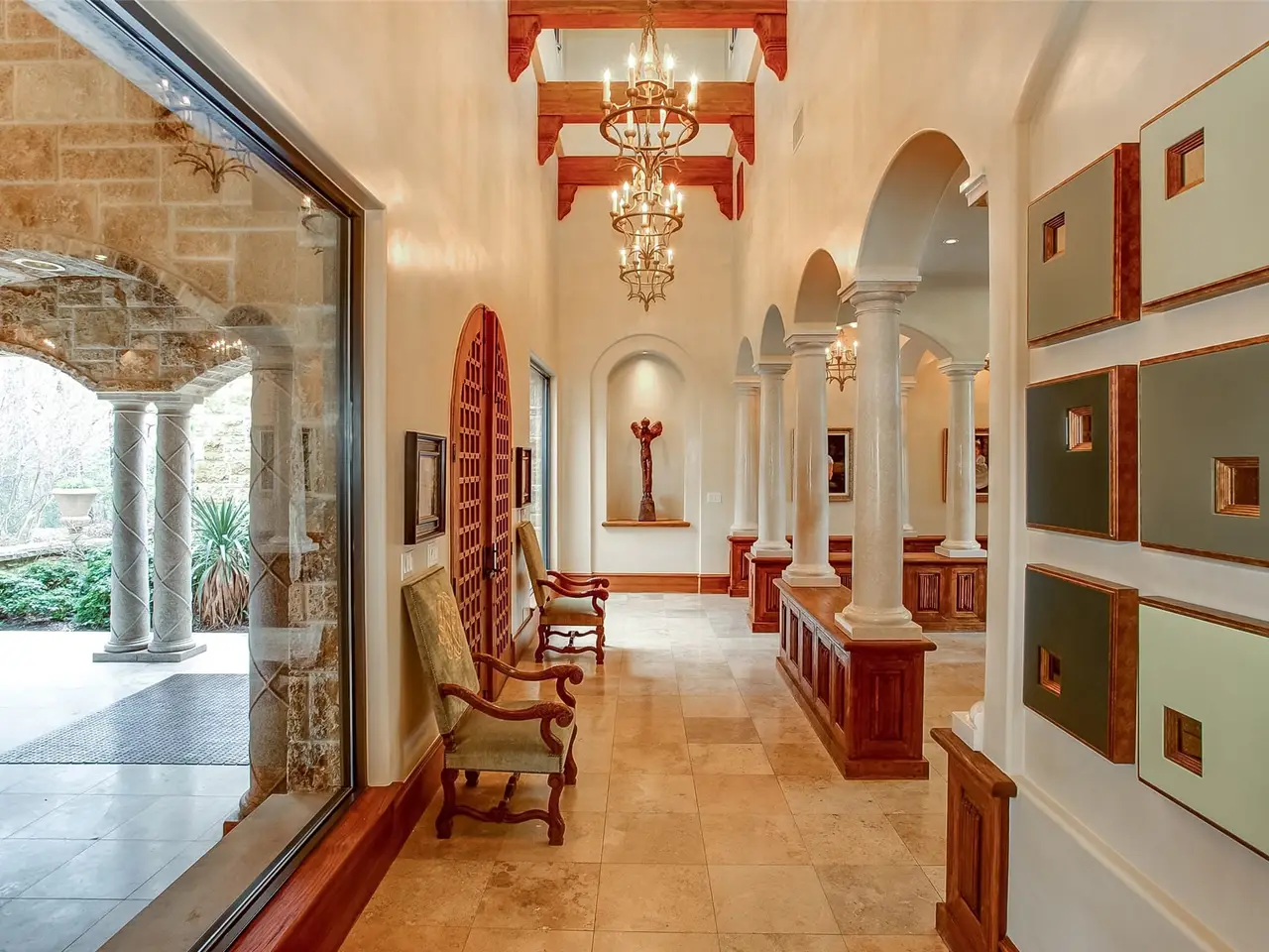 Privacy and exceptional craftsmanship define this custom-designed, custom-built 3-bedroom, 4.5-bath home. Built in 2010 by the current owners and nestled into a hillside, this home offers panoramic views from every room. The downstairs features a spacious flex room with a full bath, which could easily be converted into a 4th bedroom, game room, media room, or a combination. The attention to detail is unparalleled, with stunning woodwork throughout, including massive wood doors and cabinet handles crafted by the Jason Scott Collection using Teakwood from Indonesia. Highlights of the home include soaring 14-ft ceilings, Venetian plaster finishes, marble columns, and clerestory windows. Additional features include elegant stone floors, a fully stone-clad exterior, a wine cellar, a 3-car garage, two gates, an office off the kitchen, multiple balconies, and beautifully landscaped grounds. This home truly blends privacy, luxury, and thoughtful design at every turn.