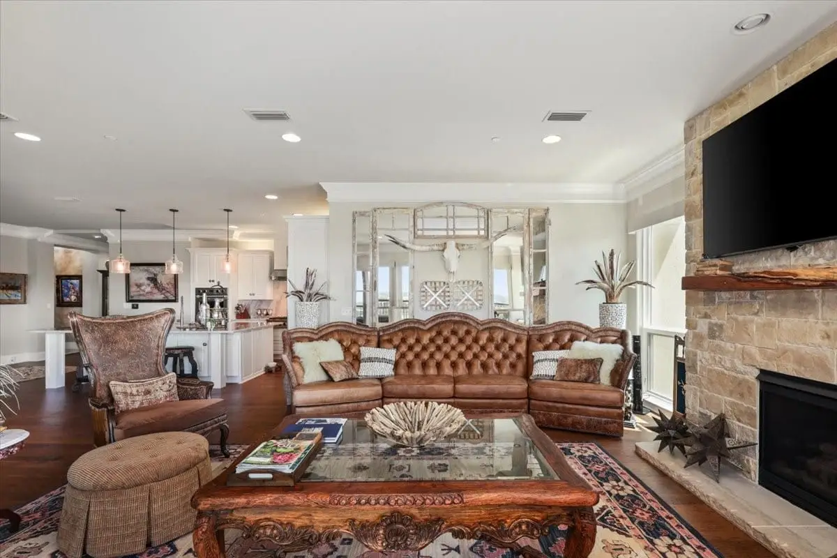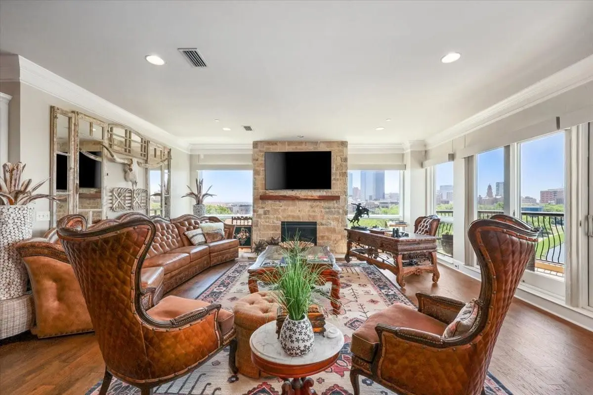 Rare 4-Bedroom Luxury Home in Villa de Leon, Fort Worth’s Riverfront Gem! Welcome to one of Fort Worth’s most exclusive residences - a rare 4-bedroom, 4.5-bath luxury condo in the iconic Villa de Leon, a premier boutique community with only 23 residences nestled along the scenic Trinity River. With just a handful of four-bedroom homes in the building, this is a truly an exceptional community. Step into a spacious, light-filled interior where floor-to-ceiling windows frame panoramic views of the river and downtown skyline. The open-concept living space features an elegant gas fireplace and opens to a private balcony - perfect for morning coffee or enjoying Fort Worth's fireworks and holiday lights. At the heart of the home is a chef's dream kitchen, showcasing an oversized island, custom-painted cabinetry, farmhouse sink, wine bar, and premium stainless-steel appliances - designed for entertaining in style. Each of the four bedrooms includes its own ensuite bath, ensuring ultimate privacy and comfort. The primary suite serves as a peaceful retreat, adorned with luxury finishes and spa-like amenities and beautiful views of downtown Fort Worth. Community Amenities Include: Resort-style pool and spa, Outdoor grilling & dining area, State-of-the-art fitness center, Elegant social lounge for private events, Secure underground parking & gated access, Located just minutes from Downtown Fort Worth's best dining, shopping, and cultural attractions, this home offers the perfect blend of urban sophistication and riverside serenity. Schedule your private showing today.