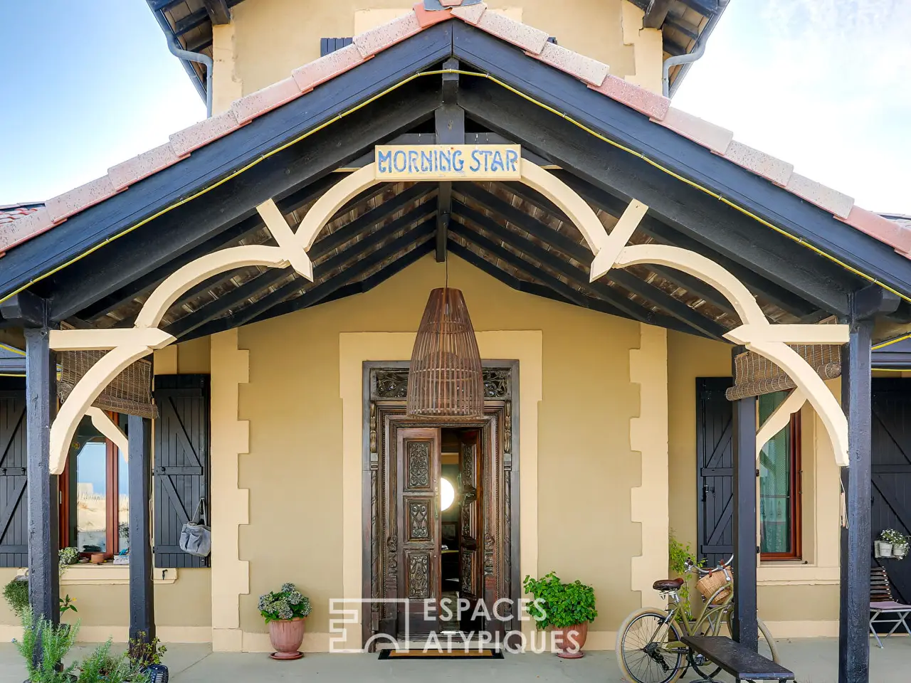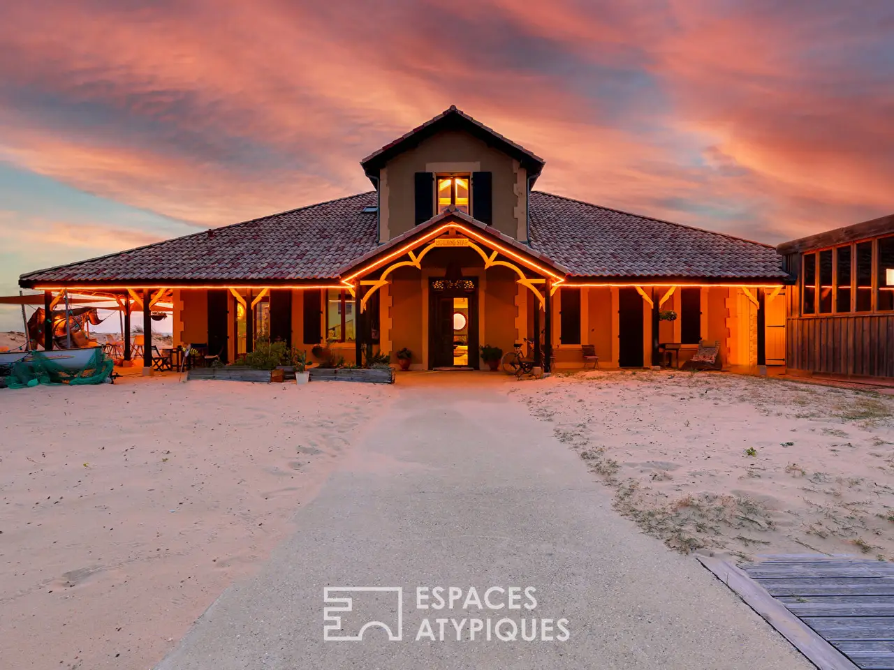On the front line of the dune, facing the Atlantic Ocean, this iconic property in Vieux Boucau consists of two houses, completely renovated with care and authenticity. This rare property privatizes more than 3600 sqm of dune. It offers an exceptional living environment with direct access to the beach where the rhythm of the waves accompanies each day. A unique address on the Landes coast made for lovers of poetic and inspiring living spaces.The property, with its characterful architecture and eclectic decor, combines charm and authenticity.The main house, built at the end of the 19th century, offers 265 sqm of generous volumes. The living rooms open onto the sea horizon, combining original parquet floors, noble materials and vintage touches. A vast living room with fireplace is dominated by a porthole offering a breathtaking view of the ocean. The discovery continues towards a retro kitchen equipped with solid wood. The four bedrooms, all unique, display a singular charm and amenities designed for comfort.The second house, measuring over 100 sqm, is more intimate and can accommodate friends or family in complete autonomy: a vast living room opening onto the kitchen extends onto a welcoming terrace. The sleeping area upstairs is arranged around a straw hut revealing five sleeping areas.Each house displays its own identity while maintaining overall harmony.Outside, the chic cabin spirit is expressed through furnished terraces, lounge areas, and panoramic balconies. With its feet in the sand, the garden naturally continues the beach, offering a setting for absolute relaxation. In the evening, subtle lighting enhances the facades and creates a peaceful, bohemian atmosphere.With its exceptional location, its characterful renovation, and its unique atmosphere, this property combines discreet luxury, authenticity, and the art of living by the sea. An atypical property that could become a primary residence, vacation home, or high-end rental project.REF. 12325EALDAdditional information* 16 rooms* 5 bedrooms* 2 bathrooms* 4 shower rooms* Outdoor space : 3381 SQM* Property tax : 1 985 €Energy Performance CertificatePrimary energy consumptiond : 205 kWh/m2.yearHigh performance housing*A*B*C*205kWh/m2.year6*kg CO2/m2.yearD*E*F*GExtremely poor housing performance* Of which greenhouse gas emissionsb : 6 kg CO2/m2.yearLow CO2 emissions*A*6kg CO2/m2.yearB*C*D*E*F*GVery high CO2 emissionsEstimated average annual energy costs for standard use, indexed to specific years 2021, 2022, 2023 : between 3610 € and 4950 € Subscription IncludedAgency feesThe fees include VAT and are payable by the vendorMediatorMediation Franchise-Consommateurswww.mediation-franchise.com29 Boulevard de Courcelles 75008 ParisInformation on the risks to which this property is exposed is available on the Geohazards website : www.georisques.gouv.fr