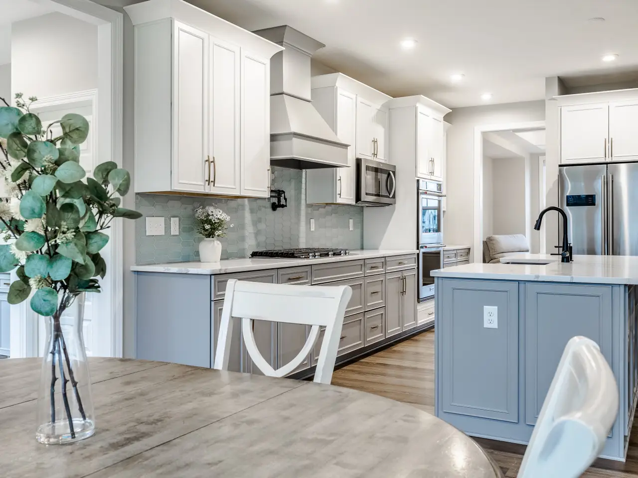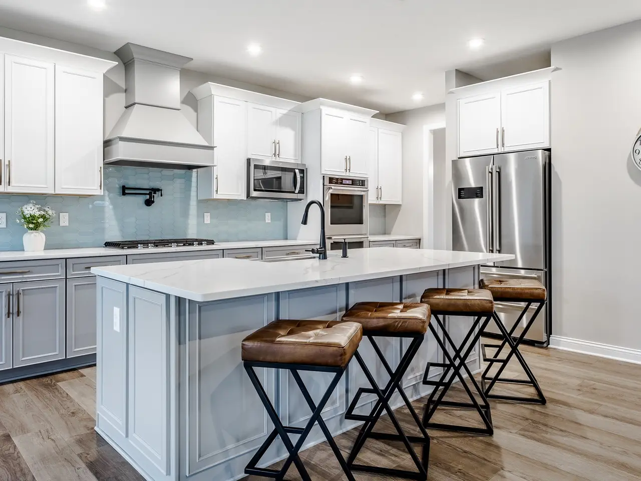 Oversized kitchen with large island and walk-in pantry