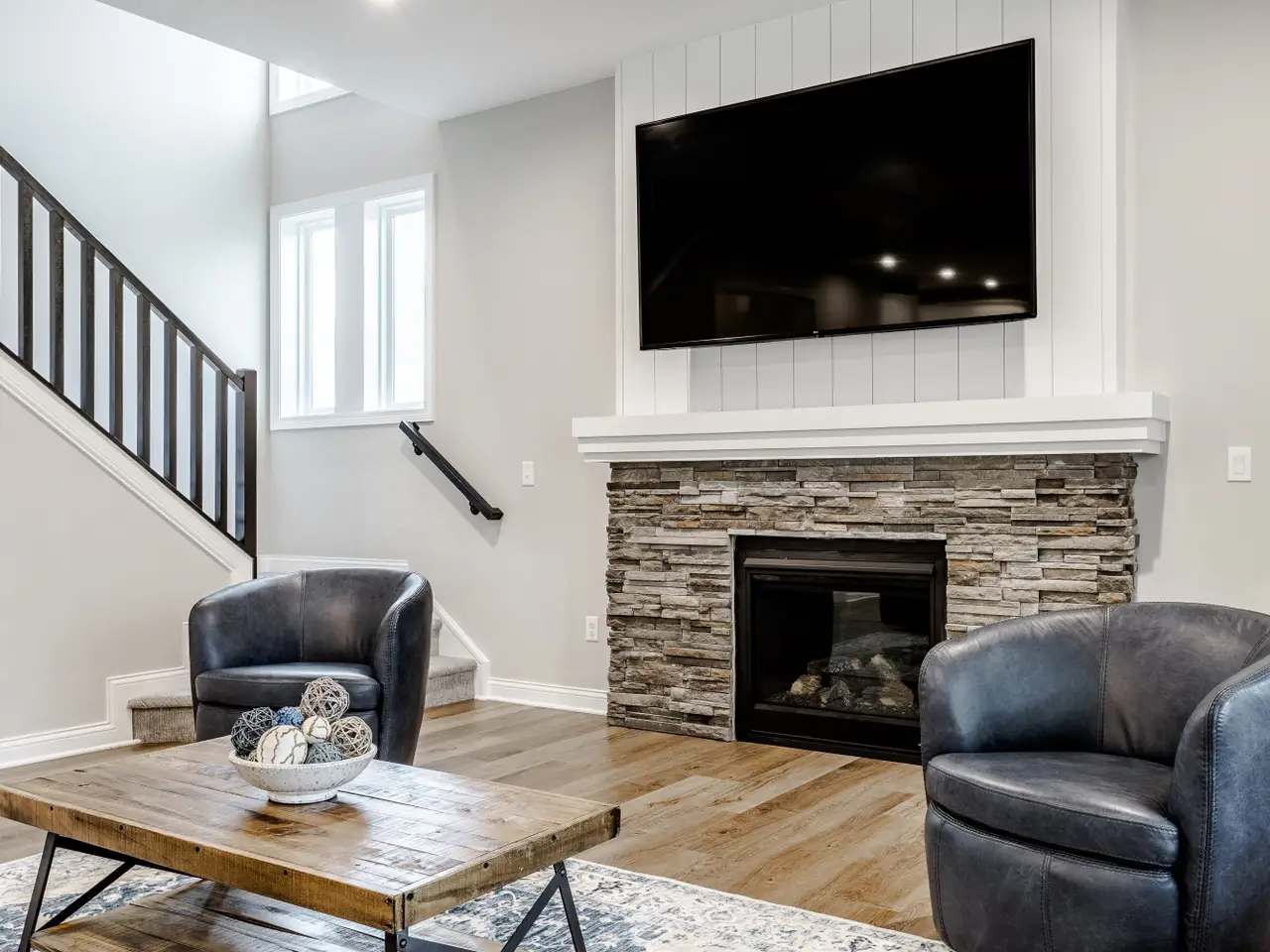 Fireplace with custom stone surround