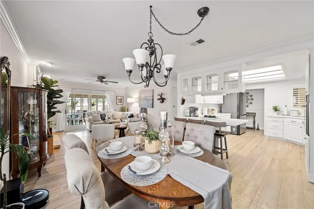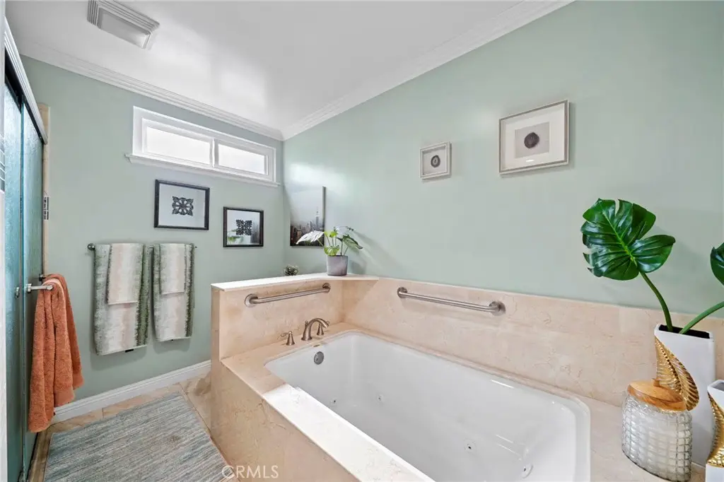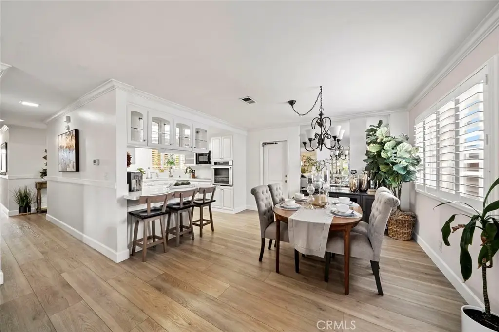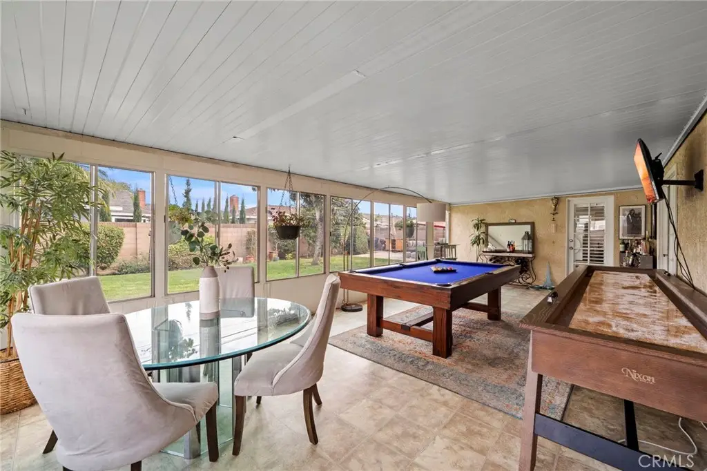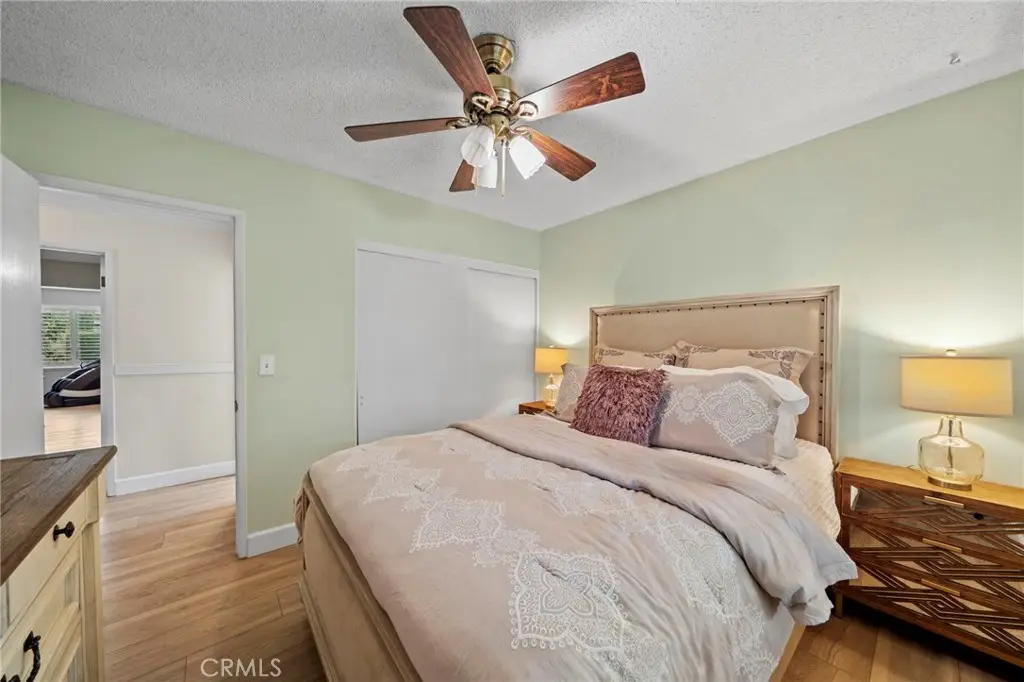 Absolutely Stunning Single-Level Home -- Expanded, Exquisite, and Impeccably Maintained. This extraordinary ranch-style Stratford home is a true masterpiece of comfort, elegance, and craftsmanship. Boasting nearly 1,700 sqft of beautifully upgraded living space plus a 450-sqft enclosed patio, it offers an entertainer's dream for dining, parties, or relaxing with family and friends. From its picture-perfect curb appeal--featuring pristine tropical landscaping, lush lawn, brick siding and walkway, and a charming front porch--to its sun-drenched open-concept interior, every inch radiates pride of ownership and timeless sophistication. Step through the inviting foyer into your dream kitchen with quartz countertops, white shaker cabinetry with pullouts and glass display panels, and a wrap-around breakfast bar open to the formal dining and living rooms. The spacious living area is accented by a travertine-style fireplace with custom mantel and elegant French doors opening to the enclosed patio--an impressive bonus space ideal for game nights, dining al fresco, or lounging year-round. The primary suite, expanded by 266 sqft, is a true retreat with a sitting area, walk-in closet, and spa-inspired bath featuring jetted soaking tub, separate walk-in shower w/bench, and travertine-style tile w/glass mosaic inlay. Three additional bedrooms are equally lovely, one currently an office/den with French doors to the patio. The hall bath offers an antique vanity and tiled tub/shower combo. Additional upgrades include wide-plank luxury waterproof vinyl flooring, tile floors in baths, dual-pane windows w/custom casings, real wood French doors, plantation shutters, recessed lighting, ceiling fans, chair railing, crown molding, tall baseboards, surround sound, and central A/C. The backyard is a tranquil paradise with an expansive lawn, interlocking paver patio, manicured landscaping, and fruit trees (lemon, pomegranate, avocado, peach) surrounded by block wall fencing for exceptional privacy. The extra-deep finished garage features a laundry area w/utility sink, cabinetry, walk-in pantry, workbenches, reinforced beams, and attic storage. Located in one of Fountain Valley's most sought-after neighborhoods near award-winning schools, McDowell Park, and just minutes from Mile Square Park, shopping, dining, and the beach--this exquisite single-story home offers the lifestyle and location buyers dream of but rarely find.
