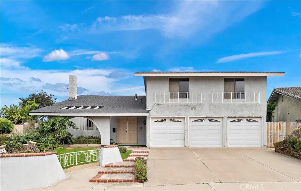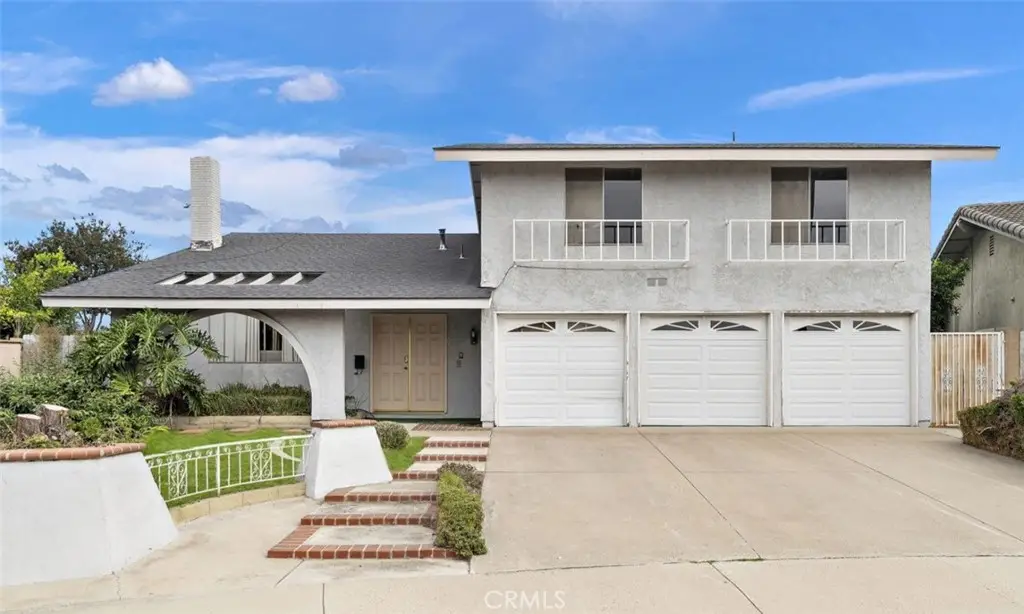 This 5 Bedroom, 3 Bath La Linda Pool Home presents a rare and exciting fixer opportunity, offering 2,303 square feet of living space, a desirable downstairs primary suite, a 3-car garage, and an expansive 10,578 square foot lot with endless potential for an ADU, expansion, or resort-style backyard. Ideally located within walking distance to Mile Square Park and close to shopping, dining, golf, recreation, Little Saigon, and just a short drive to the beach, this property is all about possibilities. Step through the double entry doors to a tiled foyer that leads to a spacious step-up formal living room with fireplace and adjacent formal dining area. The sunlit kitchen features tile counters, a gas range, microwave, dishwasher, breakfast bar, and wraparound windows overlooking the pool, and it opens to a cozy family room with sliding doors to the enormous backyard with pool, concrete deck, rose garden, fruit tree, and large lawn area perfect for gatherings and entertaining. The extra-large downstairs primary suite boasts vaulted ceiling, retreat area, and walk-in closet, while upstairs offers 4 additional bedrooms, including two that are oversized, plus a full guest bath with tub/shower combo. Direct access leads to the 3-car garage, currently partially enclosed for laundry/hobby use but easily restored to full capacity. Original 1971 condition, this home needs paint, flooring, and cosmetic updates, but with great bones, an unbeatable floorplan, and a lot size rarely available in this neighborhood, it's a diamond waiting to be polished.