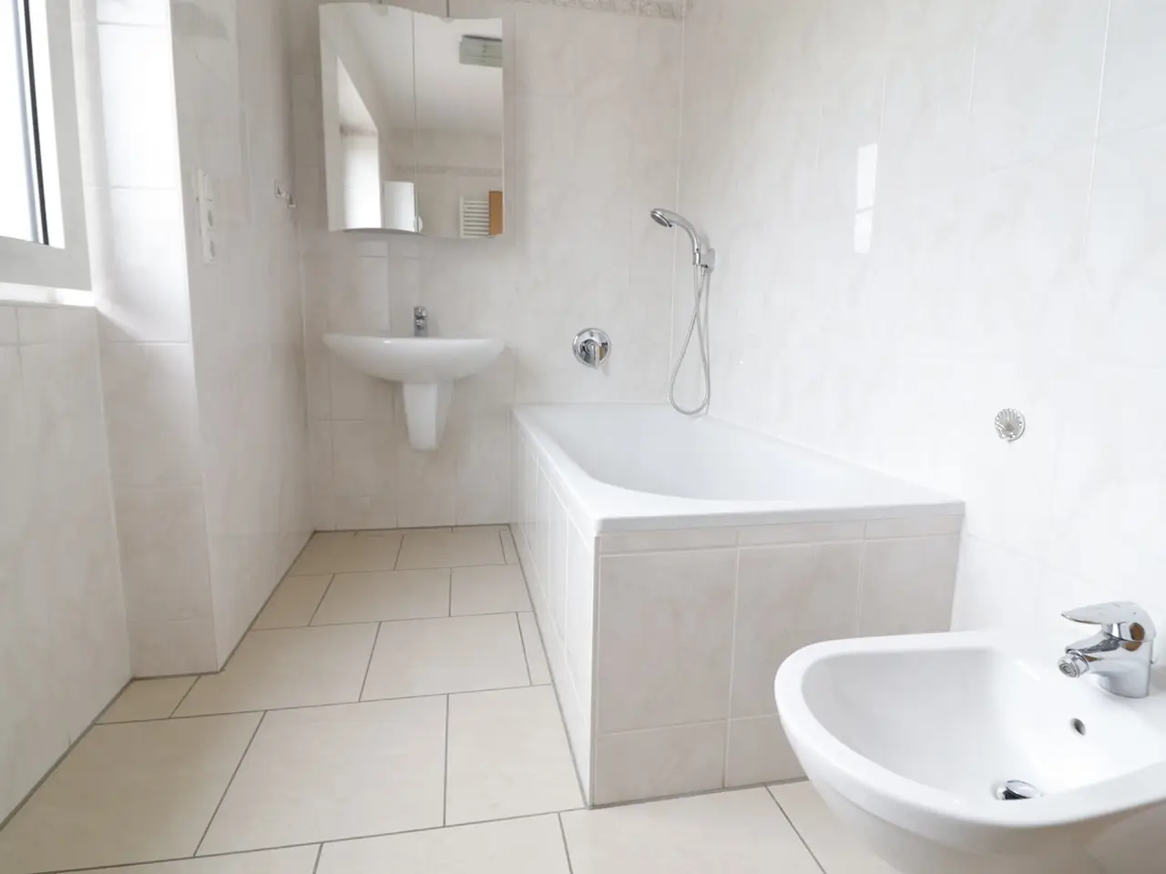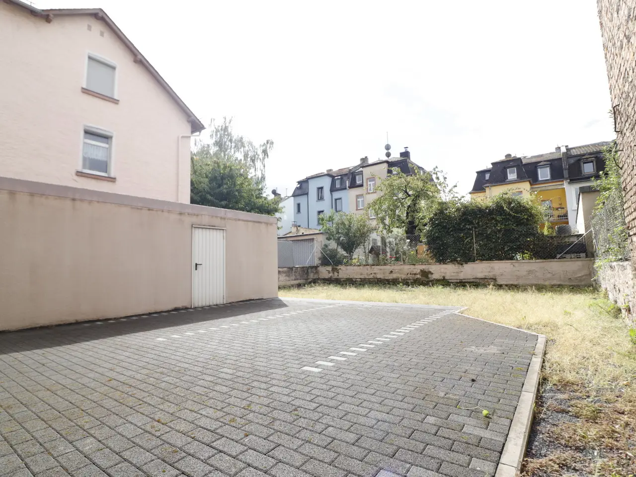 The house, originally built around 1905, was completely renovated around 1970. An extension was added in 2001/2002 and the old building was again partially renovated. There are three self-contained apartments available with one or two bedrooms, a large living/dining room, two daylight bathrooms and a kitchen. The balconies on the first and second floors are spacious and face south-west. The apartment on the second floor also has a magnificent roof terrace of more than 70 m² (25% included in the living space). The living space of the individual apartments is approximately 133 m² on the first floor (including a room in the basement), approximately 107 m² on the second floor and approximately 123 m² on the top floor. The total enclosed space is approximately 1500 m². The rear of the building faces south-west and has a garden of around 70 m², a paved courtyard with space for two parking spaces and an extra-long single garage. There is a power connection and a workshop pit in the garage.