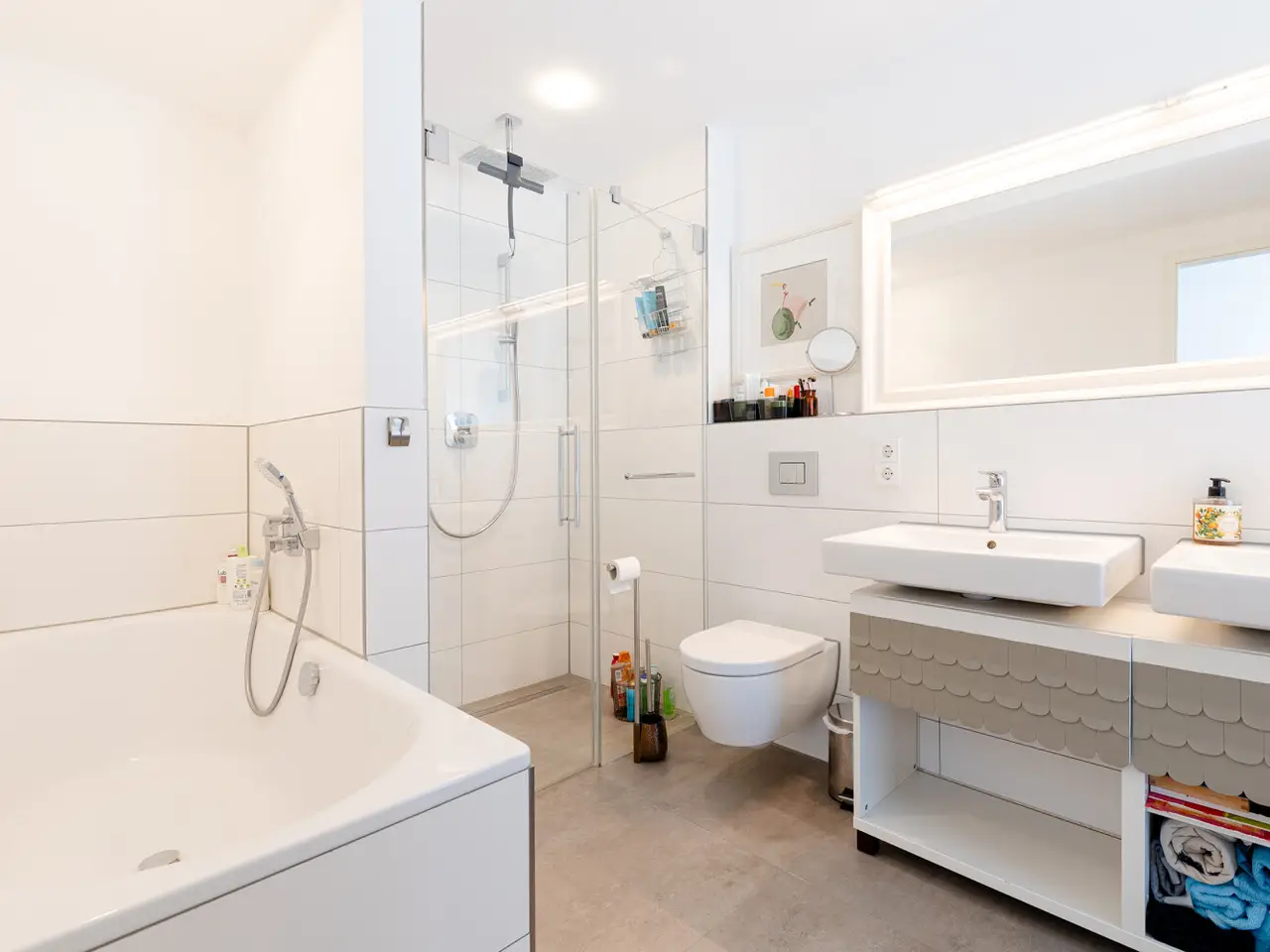 Living in the award-winning "Axis" designer apartment building - this exclusive high-end four-room apartment leaves nothing to be desired. The "Axis" is the first residential tower in Frankfurt to be built to the KfW 55 standard. It was awarded the German FIABCI Prix d'Excellence internationally in 2017 and described by the Wall Street Journal as the "Oscar of the property world". The friendly concierge awaits you in the very prestigious lobby with its luxurious interior. The approximately 137 m² apartment is easily accessible via an elevator. You enter the apartment on the fourth floor via a spacious hallway, which offers enough space for a checkroom. The hallway leads directly into the spacious living/dining area, which is equipped with a modern and tasteful fitted kitchen. From here you have direct access to the loggia and an additional balcony. The apartment has three bedrooms. The master bedroom offers a large daylight bathroom en suite with walk-in shower and bathtub. There is also a shower room with a walk-in shower and washing machine connection. All rooms are equipped with underfloor heating and underfloor cooling, which can be individually regulated in each room, guaranteeing maximum living comfort. A ventilation system is also integrated into the floor. The friendly and competent concierge service takes care of reservations, registers guests, accepts parcels and offers other services. An additional cellar room is also available. An underground parking space is already included in the purchase price. The apartment is currently rented, but can be taken over by arrangement. Skyline Plaza is located in the immediate vicinity and offers numerous shopping opportunities, a wide range of restaurants and a modern wellness and fitness area. There are also many other restaurants in the immediate vicinity. The Frankfurt exhibition grounds are also just a few minutes away by car and provide first-class connections to international events.