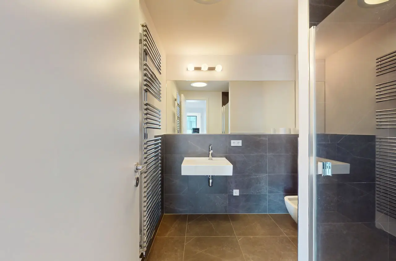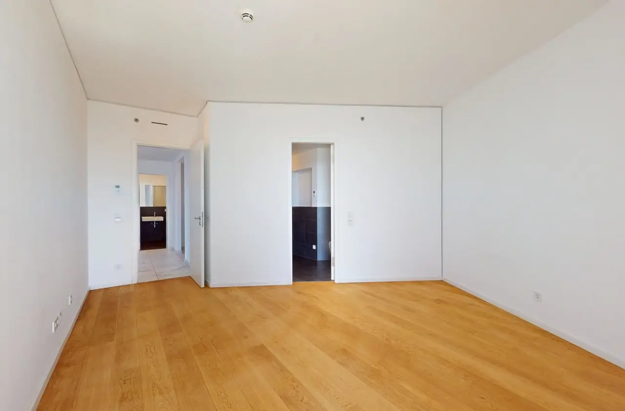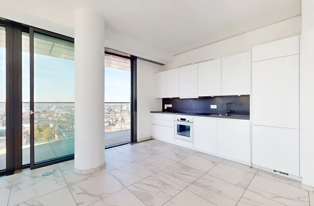 Welcome to the exclusive Grand Tower in Frankfurt - Germany's tallest residential high-rise, which stands for stylish, urban living with the highest standards. This extraordinary apartment on the 27th floor offers you a unique living experience on around 112 m² above the rooftops of the city. Thanks to the floor-to-ceiling windows, the entire apartment is flooded with light and opens up breathtaking views of the Frankfurt skyline and beyond. The spacious living area with open-plan fitted kitchen forms the heart of the apartment. The modern kitchen is seamlessly integrated into the room and impresses with high-quality appliances and plenty of storage space. From here, you have direct access to a large balcony that invites you to spend relaxing moments with a view over the city. A large, bright bedroom with direct access to the balcony offers you maximum living comfort. Adjacent is a high-quality en-suite bathroom, equipped with a bathtub and separate shower - ideal for relaxing morning routines or a peaceful end to the day. Another, smaller room with fine parquet flooring is perfect as a study or guest room and has access to a second, separate mini-balcony - a quiet retreat at a lofty height. There is also a third, smaller room, also with parquet flooring, which can be used in a variety of ways, for example as a home office or walk-in closet. The space is rounded off by a second, interior bathroom with a modern shower - stylishly designed and practical for guests or daily use. As a resident of the Grand Tower, you will enjoy numerous exclusive benefits that go far beyond ordinary living. A concierge service is available to you daily and ensures the highest level of comfort - just like in a luxury hotel. The Skydeck at a height of 172 meters is a real highlight: enjoy spectacular 360-degree views over the city and experience Frankfurt from a completely new perspective. The spacious Grand Garden offers a green oasis in the middle of the city - perfect for relaxing or meeting other residents. Stylish lounge areas and an underground parking space with quick and easy access round off the exclusive offer. The central location of the Grand Tower speaks for itself: the trade fair, the banking district, numerous shopping facilities, restaurants, cafés and cultural institutions are all in the immediate vicinity - everything that makes urban life worth living. In the neighboring Skyline Plaza shopping center, the exclusive Meridian Spa offers fitness, wellness and body care in an upscale ambience. This apartment is more than just a home - it is a lifestyle. Ideal for people who are looking for something special and value quality, design and service. Arrange your viewing appointment now and be inspired by the Grand Tower.