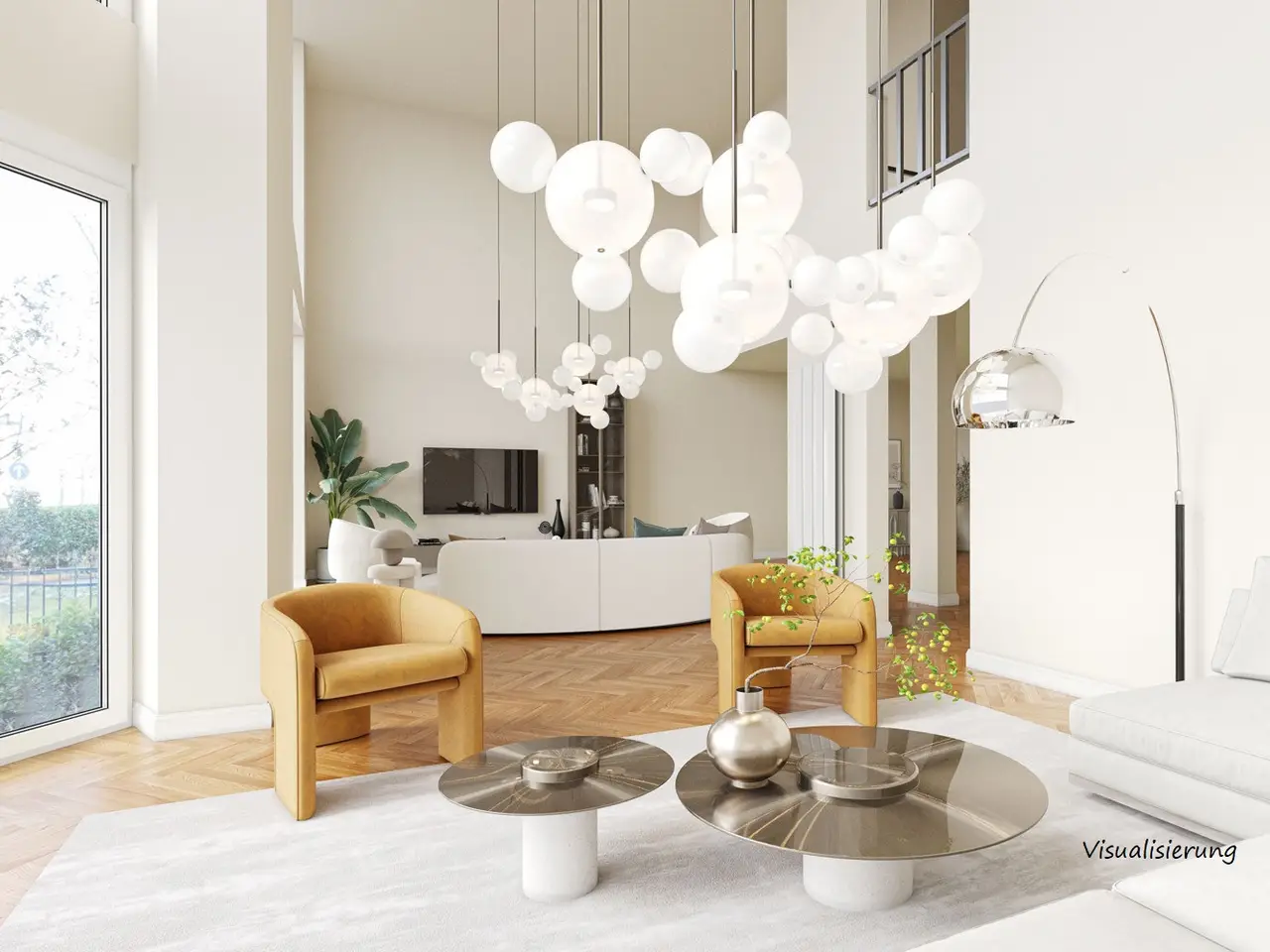 This renovated townhouse directly on the Main in Frankfurt's painters' quarter is a rarity on the real estate market. The extravagant domicile offers stylish designer comfort and exceptional architecture on a living space of around 370 square meters over three floors. The individual, large rooms can be divided with little effort. In addition to the spacious living and dining area, there are currently six further rooms. The room sizes offer the possibility of gaining four additional rooms. The room height of the impressive living area measures around eight meters and has huge windows across the entire front. The first floor or raised first floor is designed as an exceptionally spacious, open-plan living and dining area and has access to the loggia in the large, mature garden, which can also be accessed via other entrances. Also on the first floor or raised first floor is a very spacious designer guest WC with floor-to-ceiling windows. On the second floor, which is partially open to the mezzanine floor and thus benefits from the impressive ceiling height and majestic window fronts, is the master area with bedroom including a large balcony overlooking the garden, dressing room and designer bathroom, also with floor-to-ceiling windows. In addition to a daylight designer bathroom, the 2nd floor currently offers two very bright rooms connected by a sliding door. The floor plan and the size of the rooms make it easy to create a third room. The larger room has access to a balcony facing the garden. There is a small kitchen/pantry on this living level, which could be used as a dressing room or study instead if not required. It is also possible to set up another bathroom here. The lines of sight on all floors extend from the orientation towards the banks of the Main to the garden at the rear of the house. The rooms are flooded with light. A spacious studio room is located on the third floor / top floor. This is very bright and has high ceilings plus a gallery to the converted loft. The separate smaller room is suitable for the installation of a separate bathroom or kitchen. The attic studio could also be divided into two rooms. This extraordinary and stylish home offers families with several children, couples or singles a unique place to live. The location directly in Sachsenhausen-Nord, on the Museumsufer combined with the beautiful, large and quiet sun garden at the rear of the house is incomparable. The parking situation is also very convenient: the property has a garage and three parking spaces in front of it.