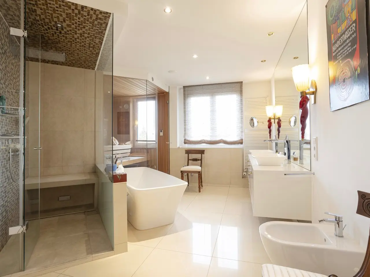 Experience timeless urban luxury at the highest level: this exceptional penthouse is located in an exclusive and quiet location surrounded by parkland with mature trees in the popular diplomatic quarter. Built in villa style, the building with a small community of owners offers the ideal retreat for prospective buyers who appreciate both the urban proximity to the city center and the tranquility of the surrounding parks. The penthouse extends over approximately 246 m² with two large terraces on one level. Large floor-to-ceiling windows with triple glazing, an open fireplace, double doors, high-quality fixtures, a modern fitted kitchen, a spacious daylight bathroom with sauna and steam bath, a sleeping area with dressing room, underfloor heating, a sophisticated lighting system, an elaborate security system, an alarm system with camera surveillance, a specially secured elevator that only leads to this level and much more reflect the high-quality character of this residential gem. A spacious entrance hall with checkroom and guest WC leads through the large double doors into the spacious living/dining area with open fireplace, library and access to the covered terrace with views of the countryside. Floor-to-ceiling windows and the ceiling height of around 2.92 meters underline the stately living atmosphere. A study with corresponding built-in units and the large, perfectly equipped kitchen complete the public part of the apartment. The private area of the floor is completely self-contained with two bedrooms, one of which has an en-suite dressing room, as well as two utility rooms, a storage room and the large daylight bathroom with a walk-in shower, bathtub, double washbasin, bidet, integrated sauna and steam bath. Two parking spaces in the underground garage with electrical connection for charging stations for electric vehicles are already included in the purchase price. A cellar room is included in the offer. A bicycle storage room is also available to residents. The ideal retreat for a couple or a small family who want to live in a prime location with green surroundings and perfect infrastructure, close to the city, quiet and relaxed with plenty of privacy.