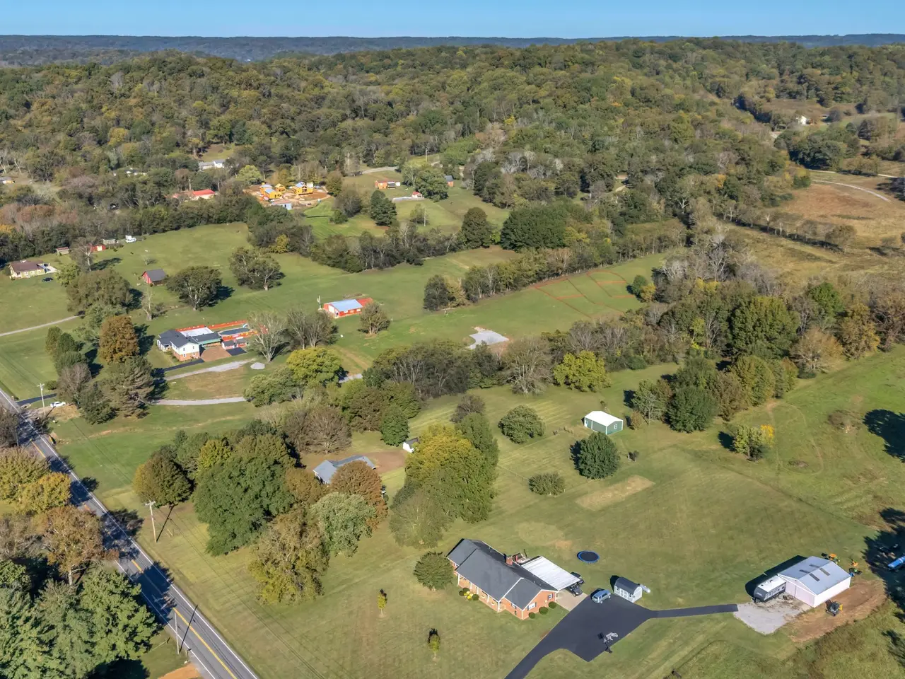 One level living on 5.9 beautiful acres of flat, Williamson County land. Priced at Appraised Value. Ten minutes from downtown Franklin and one mile to Southall Farm & Inn. The land tells a beautiful story of a local family riding their tractor from historic Leipers Fork to this family land in Franklin back in the day and planting acorns from their father's travels along the eastern property line. Irises that have continued to grow for 100 years. Wildlife to be seen and arrowheads to be found along the spring-fed creek. The home is warm and welcoming with plenty of space including a formal living, dining room and den. The eat-in kitchen holds a vintage Frigidaire refrigerator. The laundry room is spacious right off the kitchen with an additional utility room and access to the back patio and carport. The large, primary suite welcomes the morning light and has a private bathroom and walk-in closet. Two additional buildings are on the land including a large workshop/barn and a storage shed.