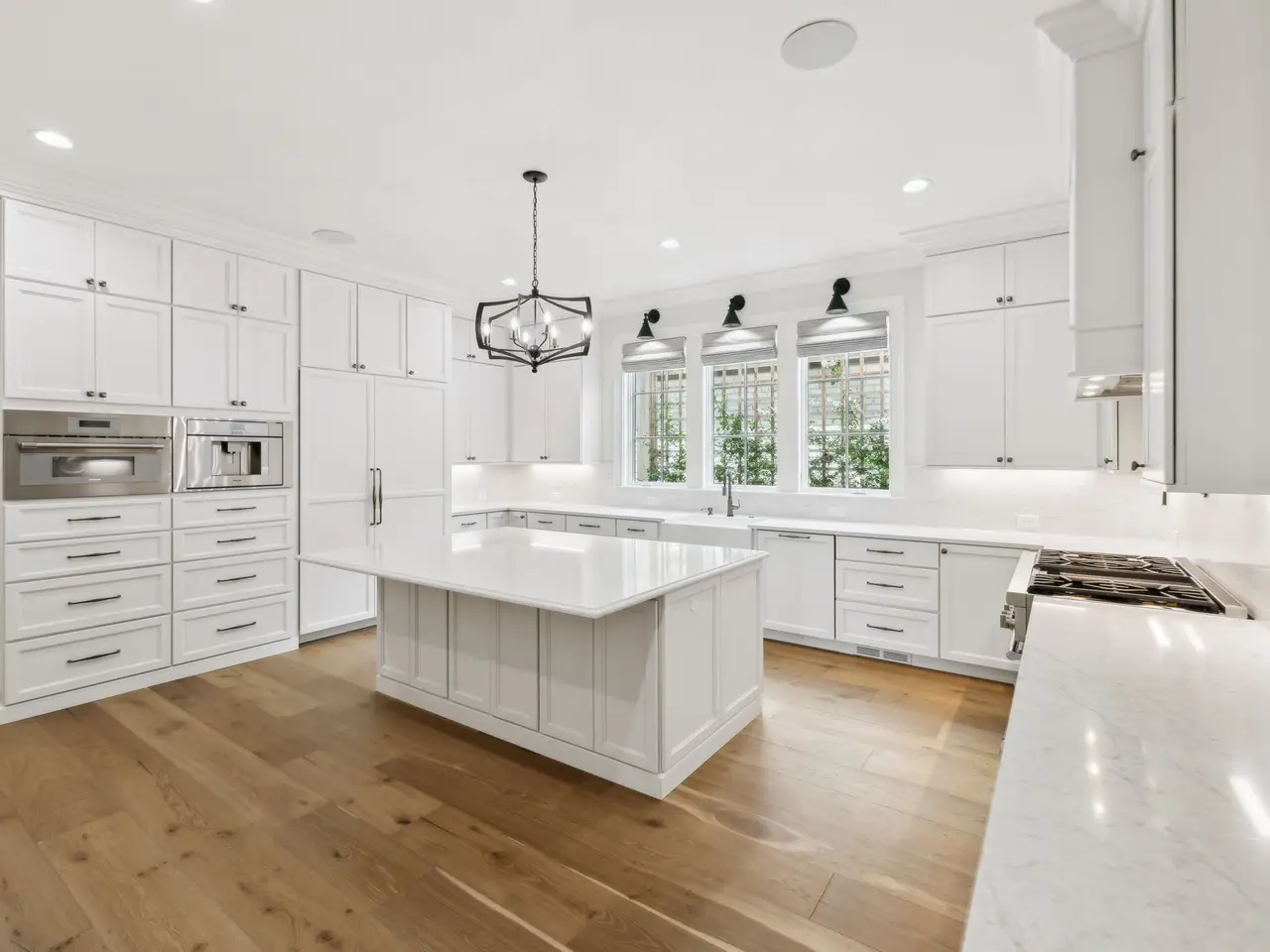 Gourmet kitchen with grand island, custom cabinetry, and professional-grade appliances