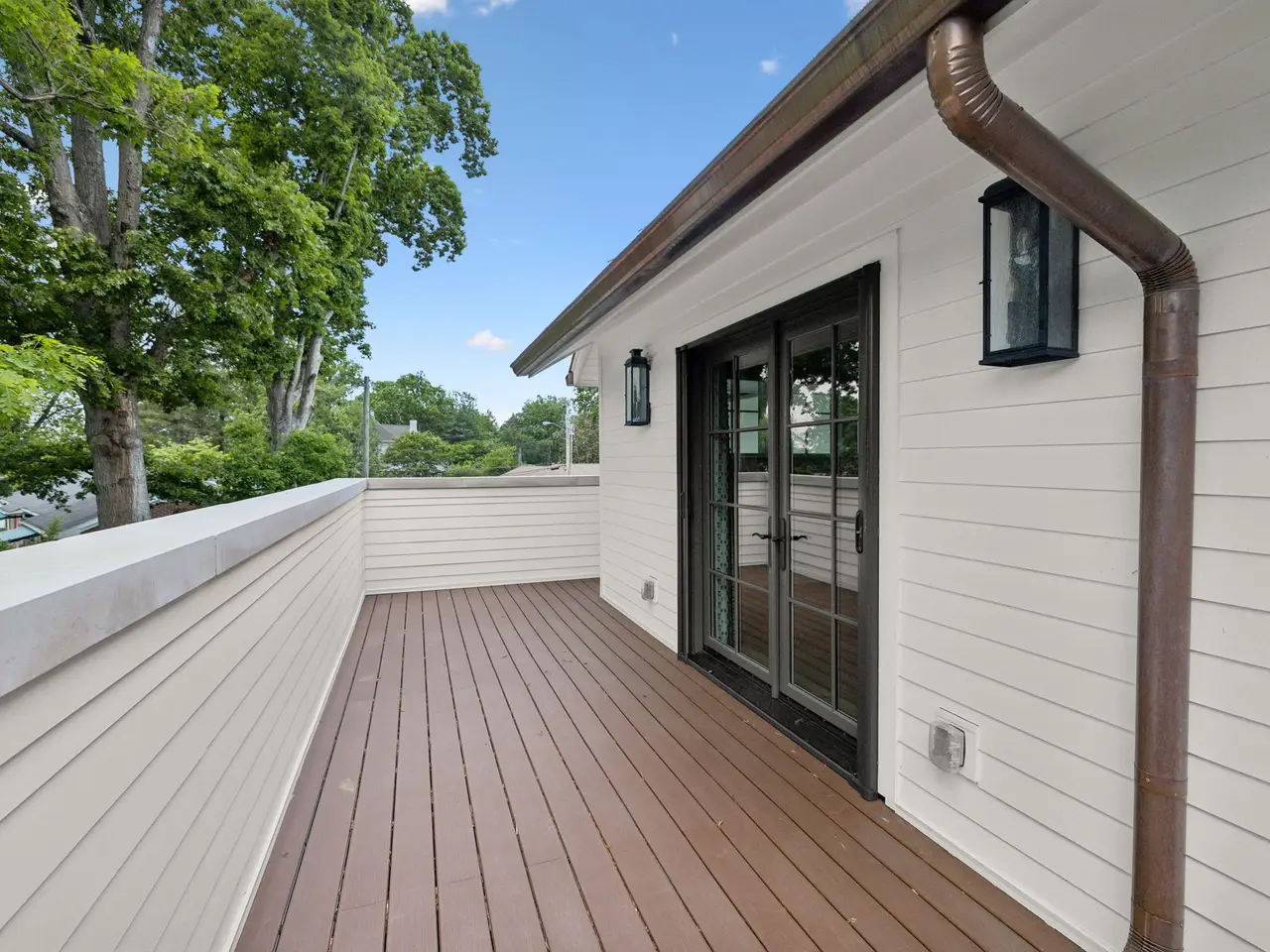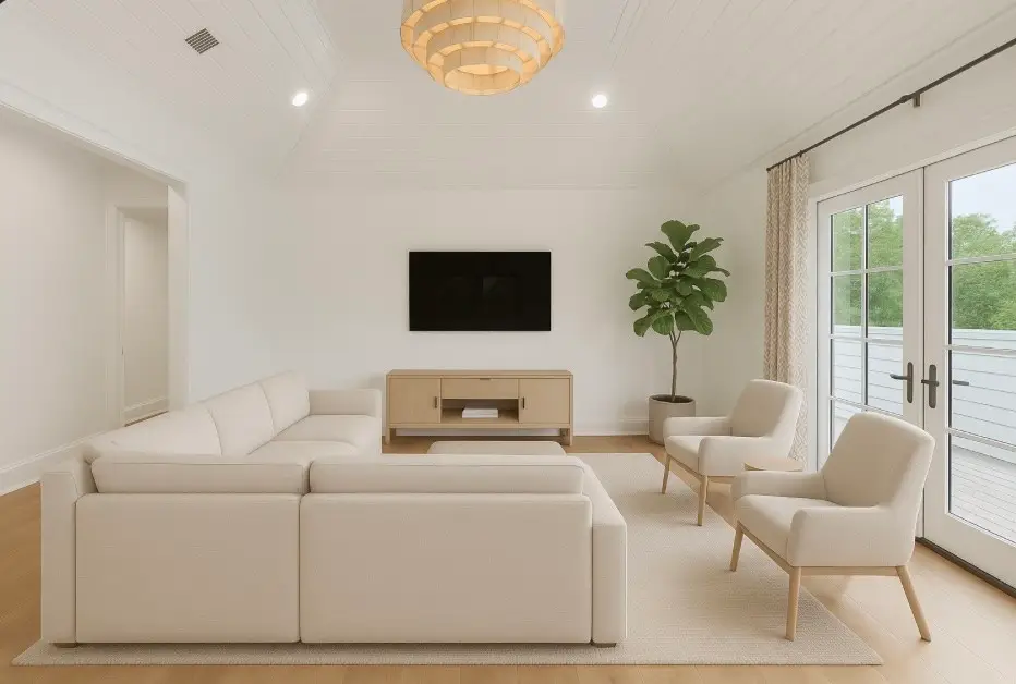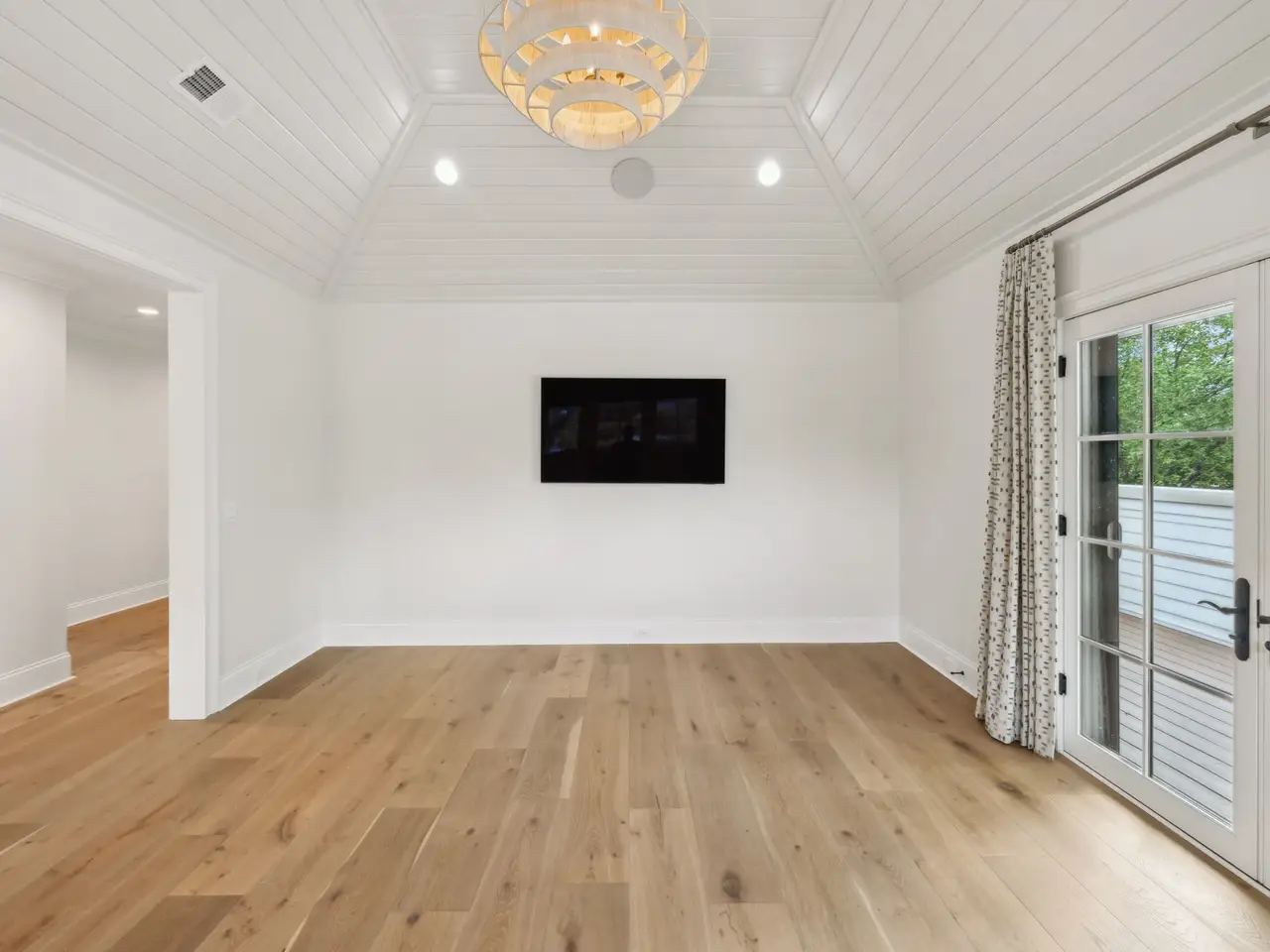 Bonus room with vaulted ceilings and french doors to outdoor living space