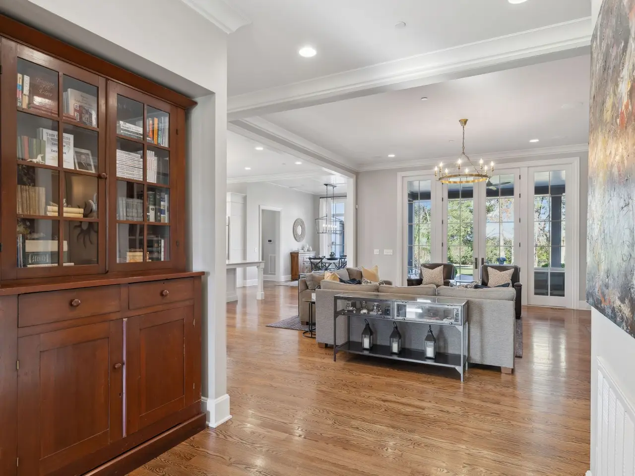 Price Improvement! Luxury and comfort meet in this beautifully crafted home built by Davis Properties, designed by Sailer Design. Greeted by a two-story foyer and welcomed into a warm living space with an open concept for gathering. The custom design of the living area has built-in bookcases, a full butler's pantry and open flow into the luxury chef's kitchen. The kitchen features light pouring in through abundant windows, an over-sized island and Monogram appliances. Open space from indoor to outdoor is perfect for entertaining from the living area, kitchen and outdoor covered patio with a gas grill hookup. Private outdoor living in a tree-lined, fenced backyard backing to private property. Sunset views and plenty of room for a pool on the large, flat lot. The primary bedroom and ensuite guest room are on the main level separate from the living area granting privacy and rest. Four additional ensuite bedrooms are on the second floor with one bedroom and bath studio recently added over the garage for privacy and a separate entrance. Additional features include a spa-like primary bath with marble floors, soaking tub, a walkthrough shower, and dual walk-in custom closets. The laundry room is so large it holds an office space and abundant cabinets for storage. The second floor, media room holds a dry bar and was built with sound proof flooring. Hardwood floors throughout the home and plenty of walk-in storage. Welcome to The Preserve at Echo Estates close to historic downtown Franklin with easy access to I-65. Kitchen refrigerator, washer and dryer remain.