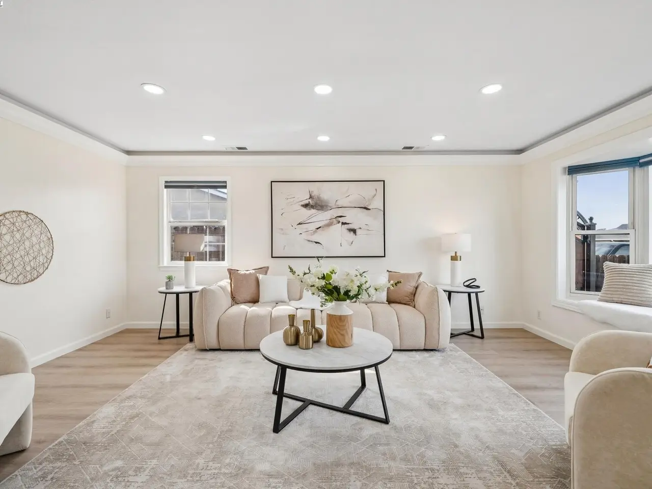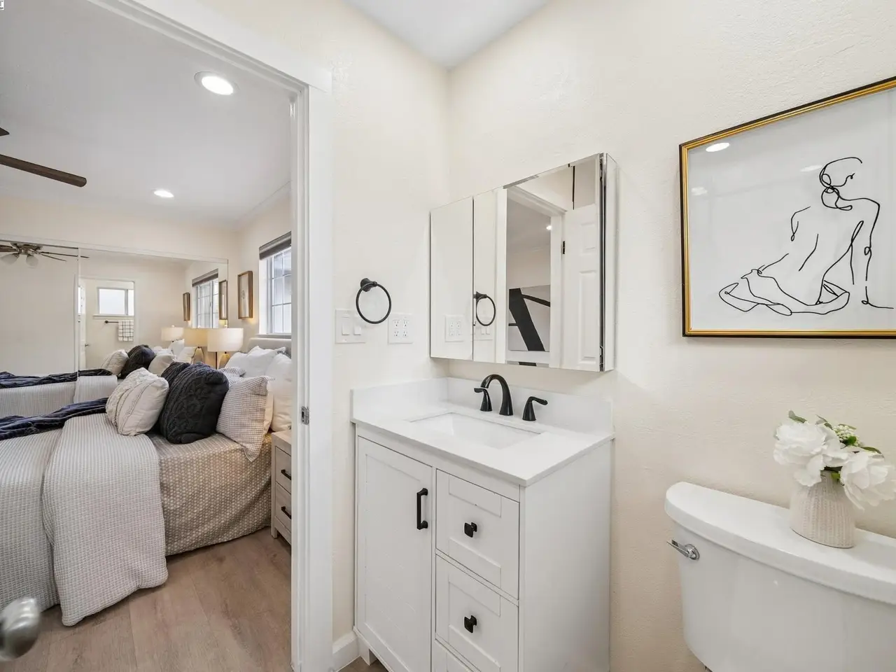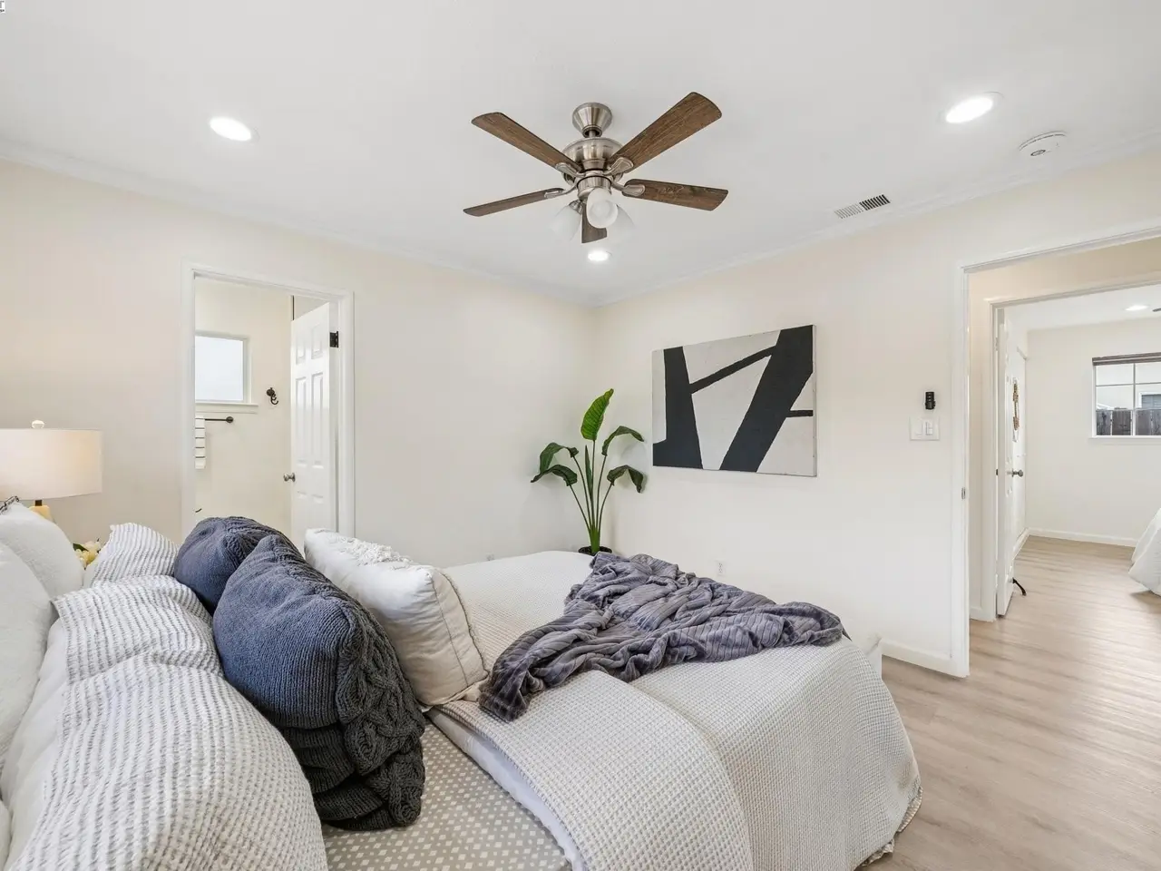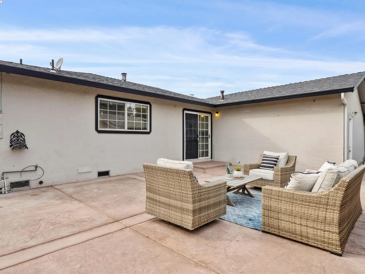 Pristine NORTHWEST facing home with beautiful upgrades! This light-filled residence boasts an open-concept design which blends style, function, and comfort in one. The heart of the home is the brand-new gourmet kitchen featuring sleek stainless-steel appliances, modern cabinetry, and elegant finishes that flow seamlessly into the spacious family room—perfect for both everyday living and entertaining. Both bathrooms have been tastefully upgraded, and every detail of this home has been thoughtfully curated, from new honeycomb blinds on all windows to smart switches and recessed lighting throughout. Enjoy year-round comfort with a complete HVAC upgrade—including a new furnace, new A/C, ductwork, and smart thermostat. Copper plumbing throughout. Step outside to a spacious, professionally landscaped backyard featuring stamped concrete and plenty of room to relax or entertain. The flex space in the yard is perfect for a home office or creative studio, complete with new flooring and paint. The epoxy-finished garage floor adds the final touch of polish and practicality. Easy access to 880, Dumbarton Bridge, 237, BART, and major tech hubs. You don't want to miss this!