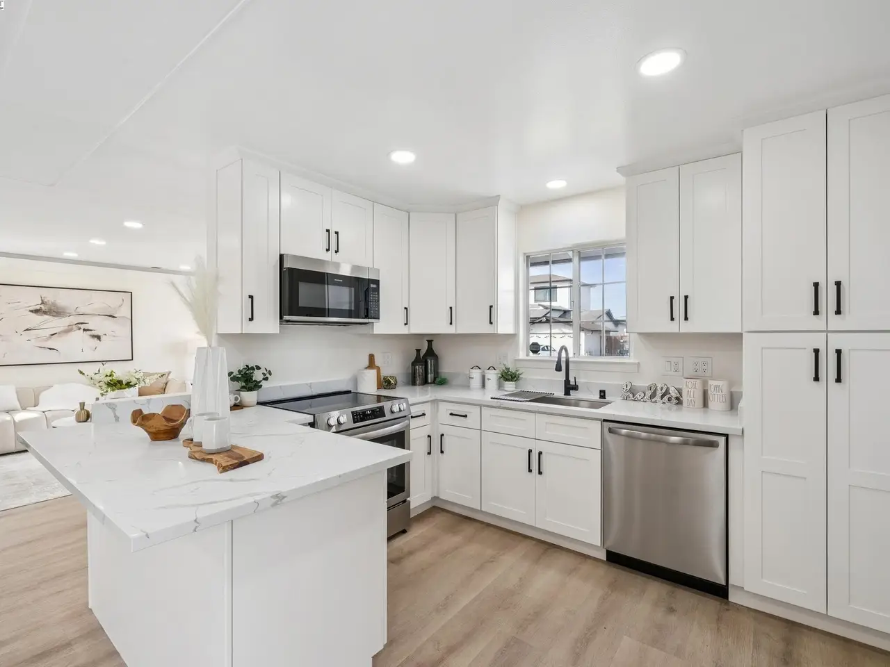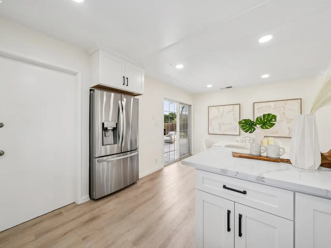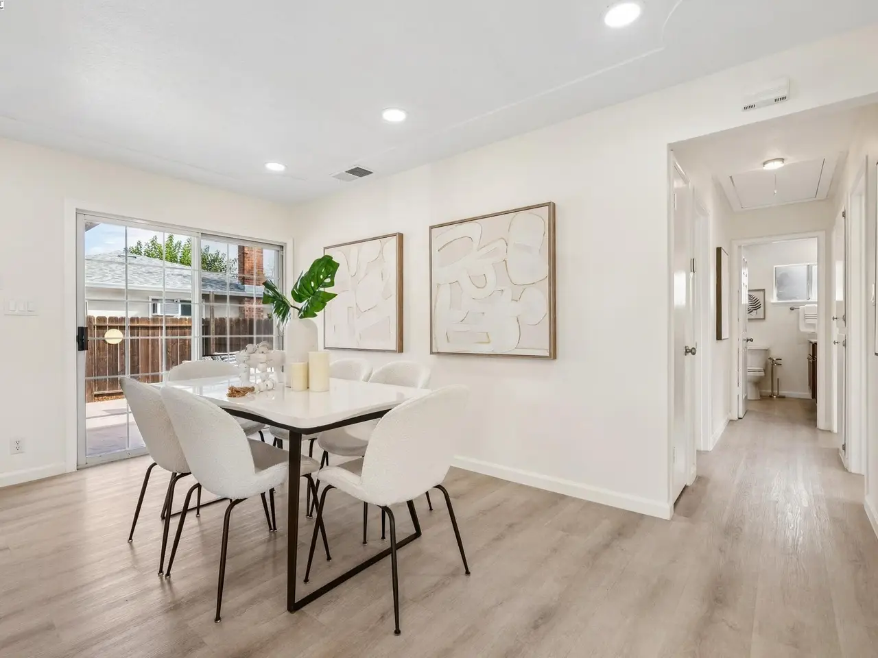 Pristine NORTHWEST facing home with beautiful upgrades! This light-filled residence boasts an open-concept design which blends style, function, and comfort in one. The heart of the home is the brand-new gourmet kitchen featuring sleek stainless-steel appliances, modern cabinetry, and elegant finishes that flow seamlessly into the spacious family room—perfect for both everyday living and entertaining. Both bathrooms have been tastefully upgraded, and every detail of this home has been thoughtfully curated, from new honeycomb blinds on all windows to smart switches and recessed lighting throughout. Enjoy year-round comfort with a complete HVAC upgrade—including a new furnace, new A/C, ductwork, and smart thermostat. Copper plumbing throughout. Step outside to a spacious, professionally landscaped backyard featuring stamped concrete and plenty of room to relax or entertain. The flex space in the yard is perfect for a home office or creative studio, complete with new flooring and paint. The epoxy-finished garage floor adds the final touch of polish and practicality. Easy access to 880, Dumbarton Bridge, 237, BART, and major tech hubs. You don't want to miss this!