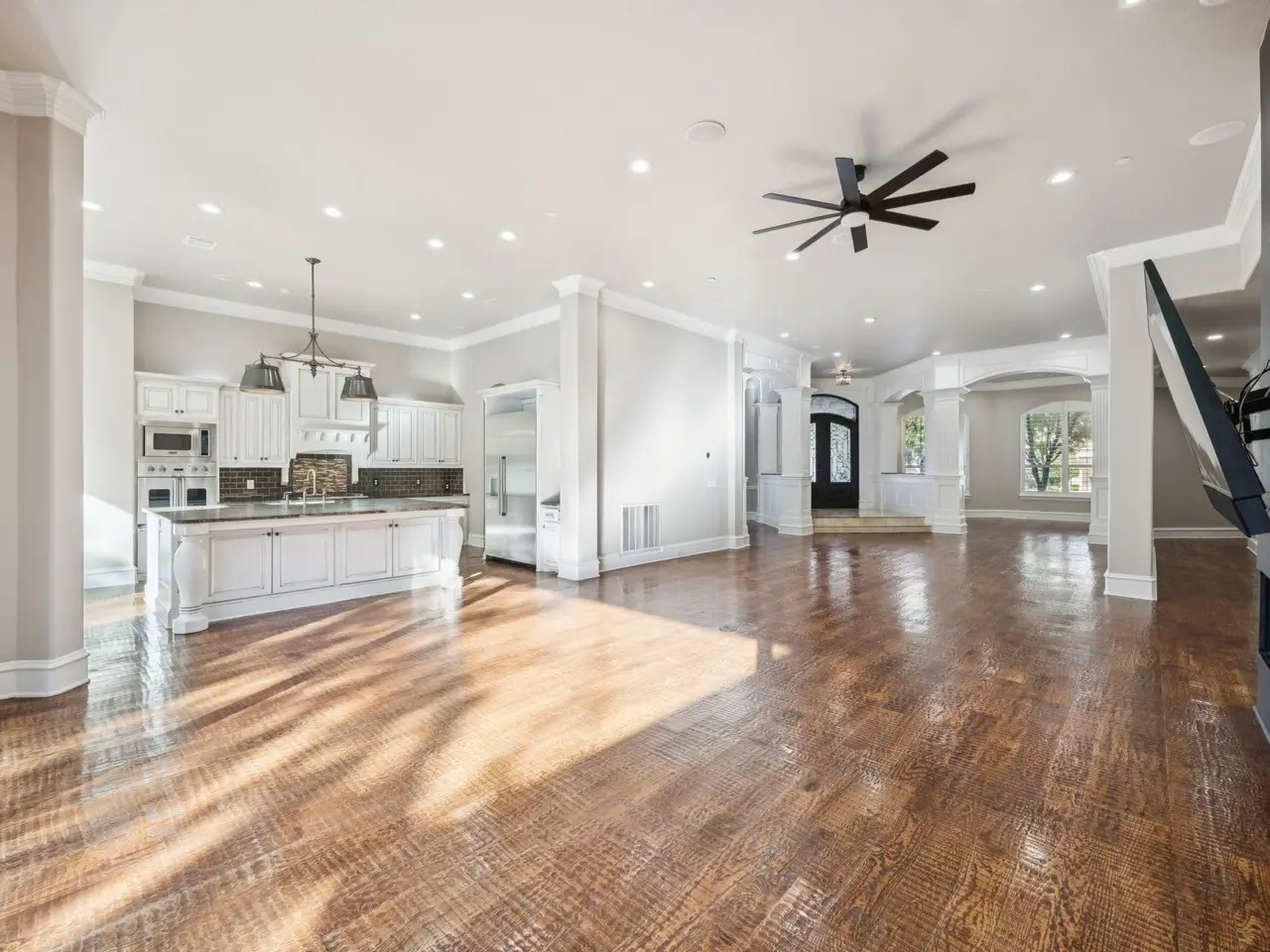 A rare opportunity in the prestigious gated Stonebriar Country Club Estates. Set on a .40-acre interior lot, this custom 6,792 sq ft luxury home blends timeless architecture, privacy, custom finishes & luxurious design. Enter through a private gated drive w-porte-cochere, circular driveway, & split 3-car garage. The secluded backyard is a resort-style retreat featuring lush landscaping & a pool & spa by Hauk Custom Pools. The flexible layout offers 5 bedrooms, 6.1 baths & 7 living areas designed for entertaining, everyday living, or multigenerational needs. The first floor includes a Media room w-bar, 3 Living Areas (including a Billiards Room), Dining, extended Entry (perfect for your prized piano), Executive Study w-fireplace, a tornado safe room & Primary & Guest Bedroom Suites. The Primary Suite functions as a private wing w-Living Room w-fireplace, fitness room w-sauna, dual oversized closets (there's even a shoe closet!), dual water closets & an updated spa-style Bath. A secondary Bedroom w-Ensuite bath on the main level is ideal for guests or multigenerational use. The Chefs Kitchen features premium Viking appliances, leathered granite, blt-in Thermador refrigerator, custom cabinetry & opens to a light-filled family room w-updated elongated fireplace and offers slider doors opening the living area to the pool, spa and gorgeous private landscaped backyard. Upstairs offers a loft Game Room, two Guest Bedrooms w-Ensuite Baths, and a fifth bedroom w-full bath & walk in closet (currently used as a second media room). Additional highlights: double wrought-iron front doors, tankless water heaters, central vac, plantation shutters, wide-plank hardwoods, epoxy-coated garages, mud room, one garage has AC, and concrete safe Tornado room. Prime location near world class golf at Stonebriar Country Club & featuring easy access to SH-121, Dallas North Tollway & DFW airport. Quick access to all shopping & dining at Legacy West, The Shops of Legacy, The Star, & Grandscape.