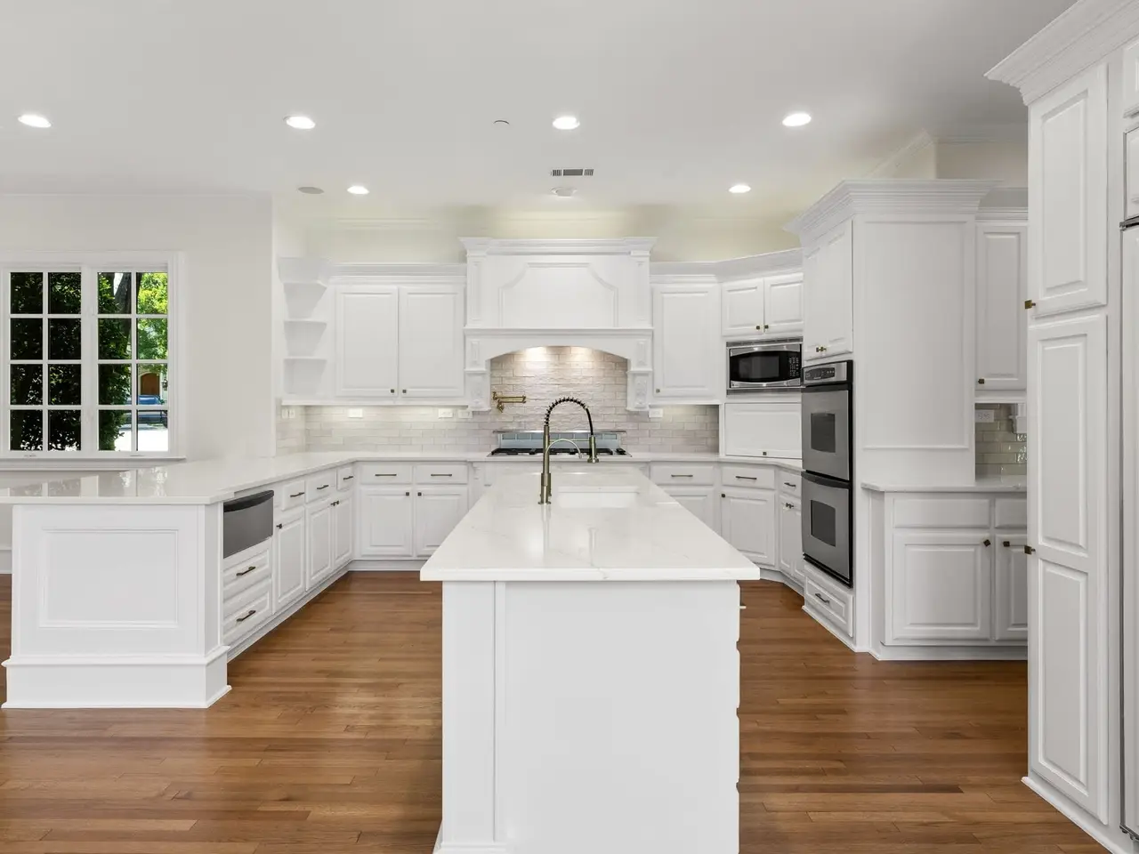 Expansive chef's kitchen with quartz countertops and Sub-Zero refrigerator